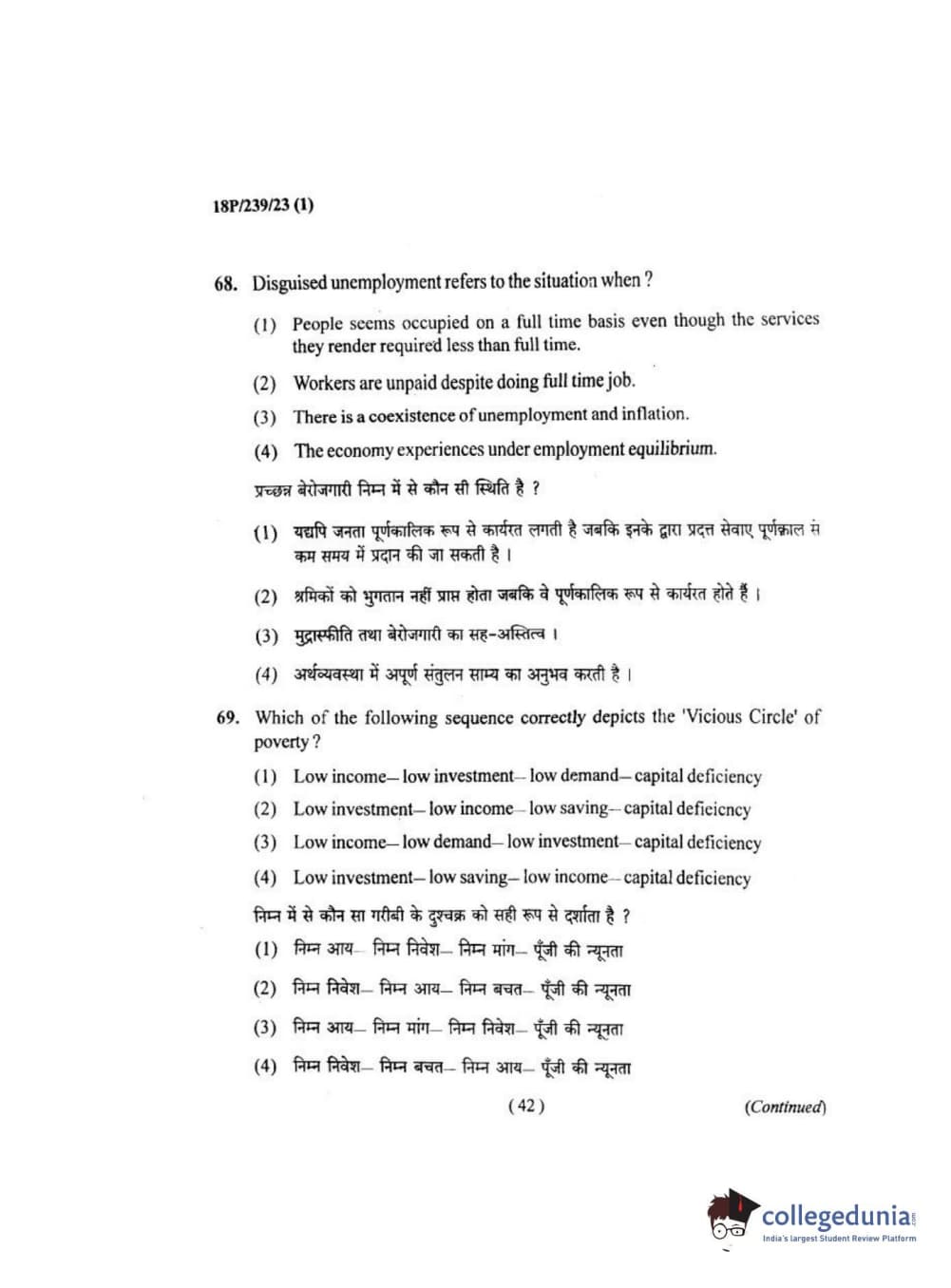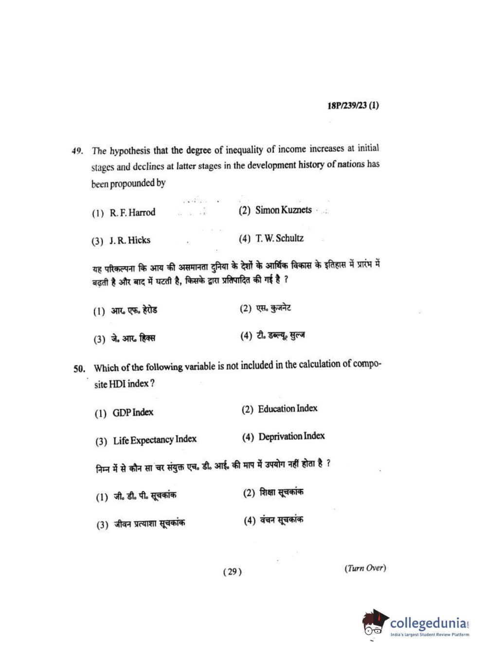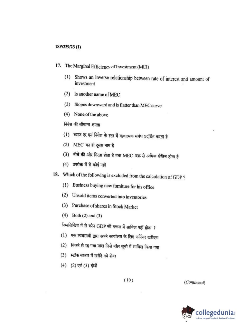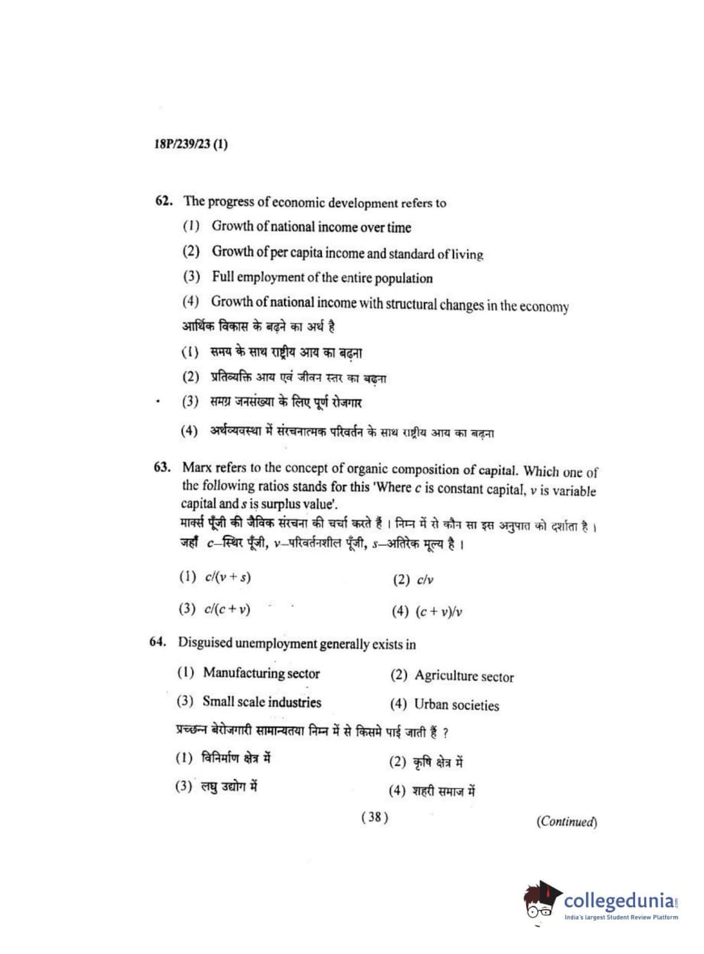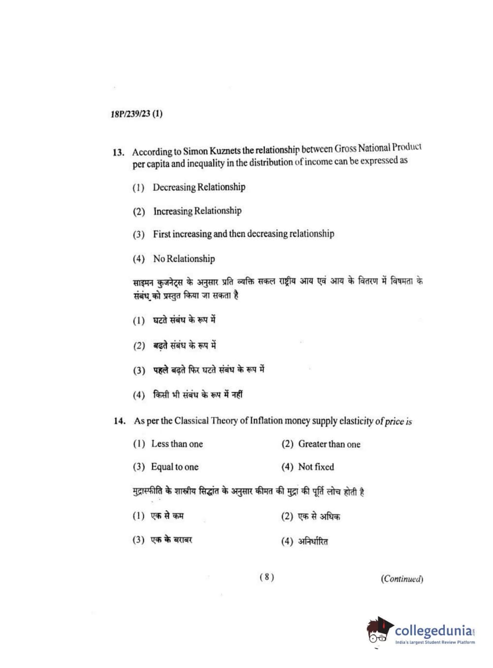 BHU PET 2018 MA ECONOMICS Question Paper with Answer Key PDF