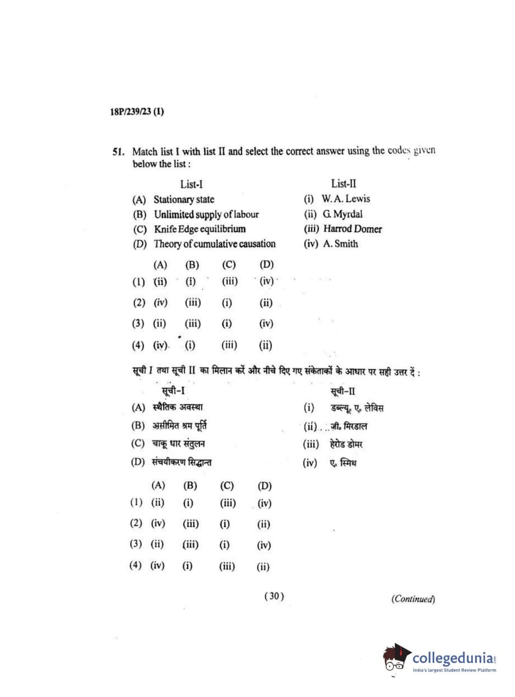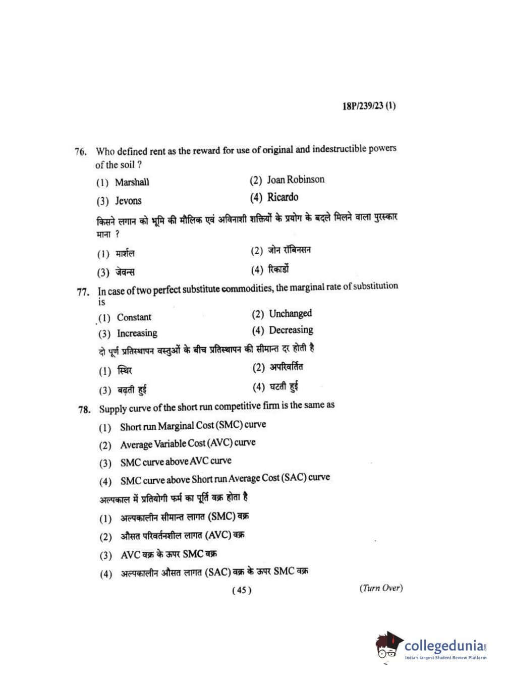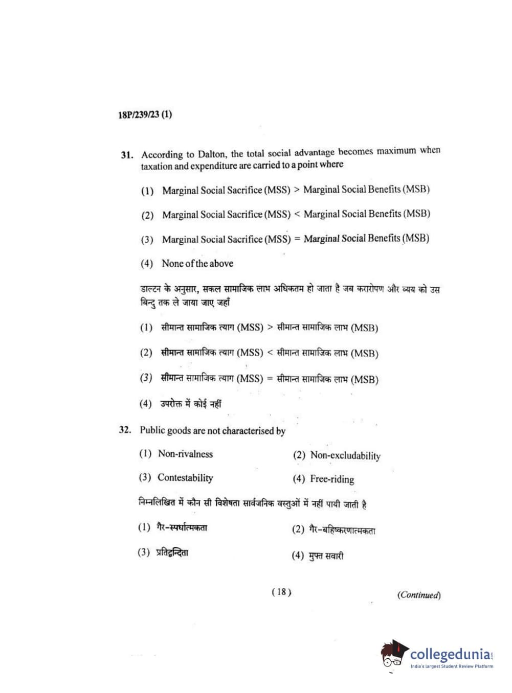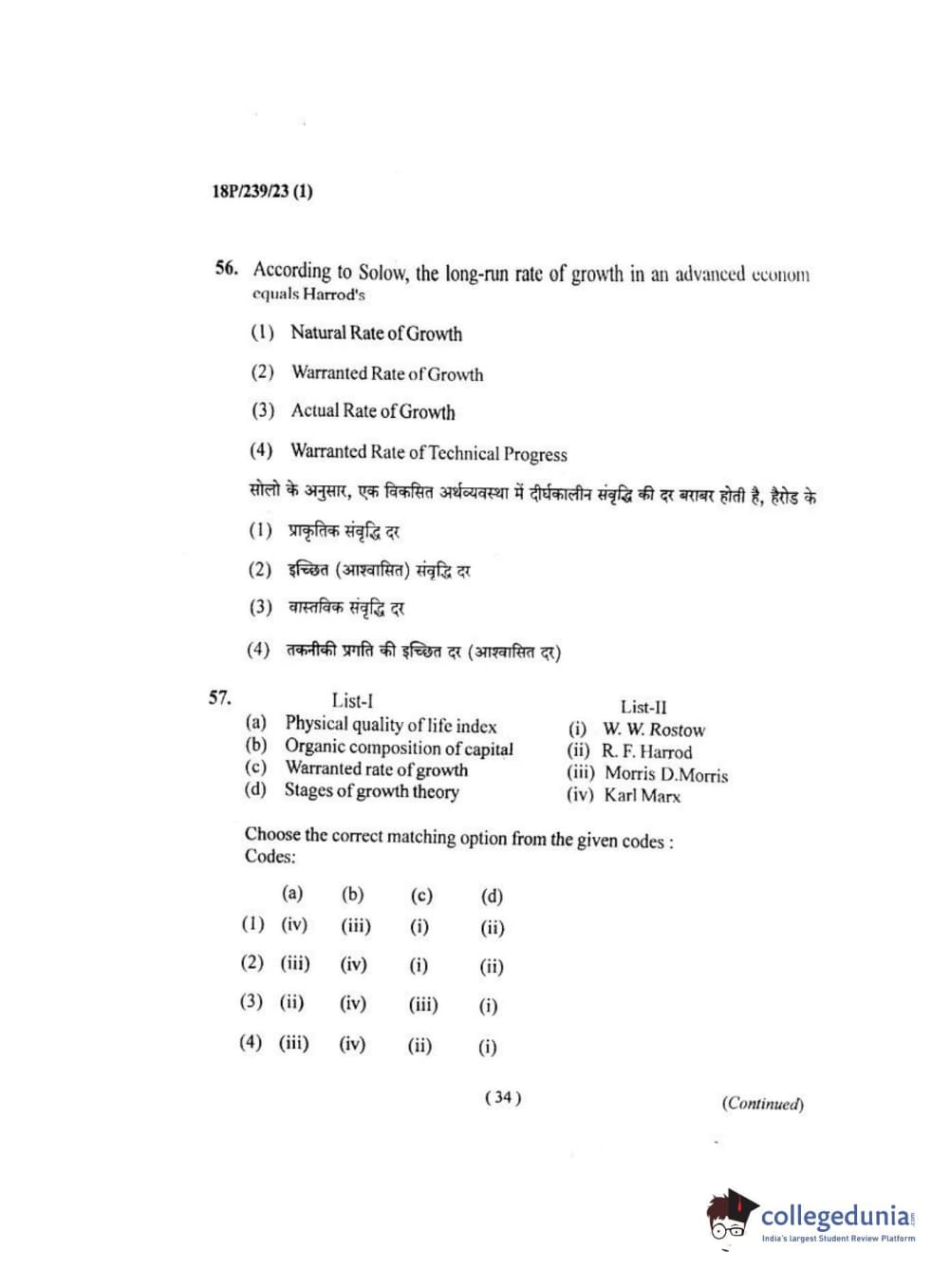 BHU PET 2018 MA ECONOMICS Question Paper with Answer Key PDF