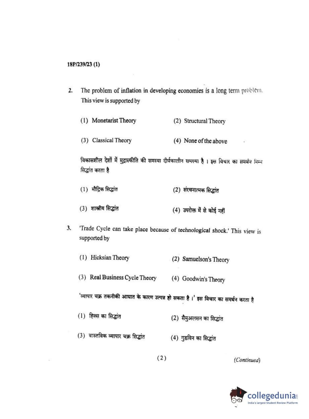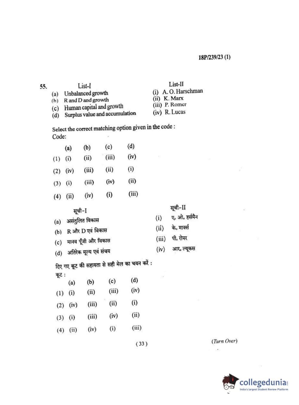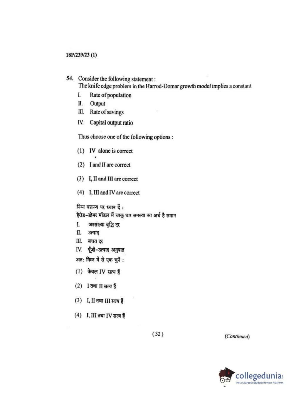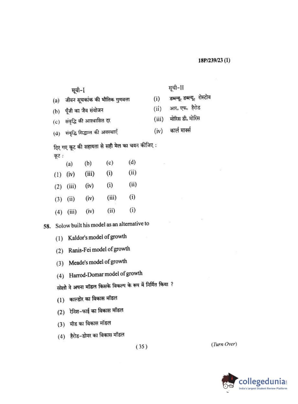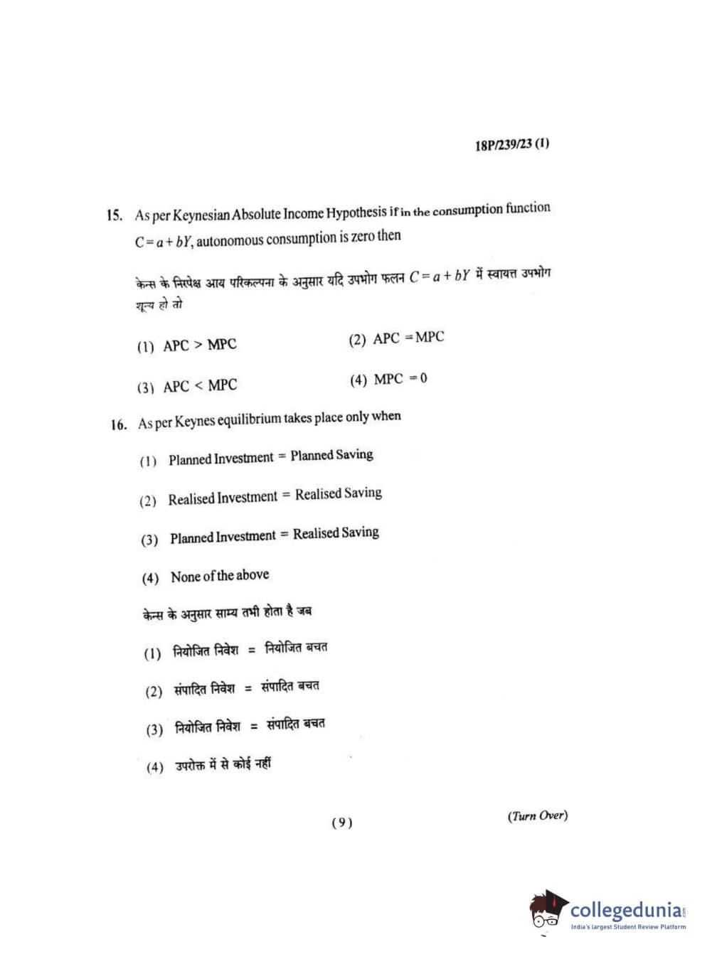 BHU PET 2018 MA ECONOMICS Question Paper with Answer Key PDF