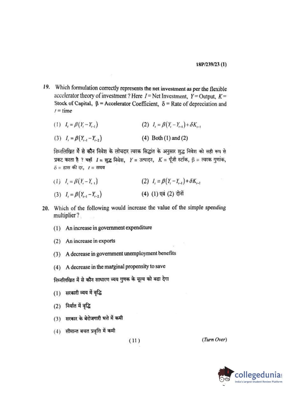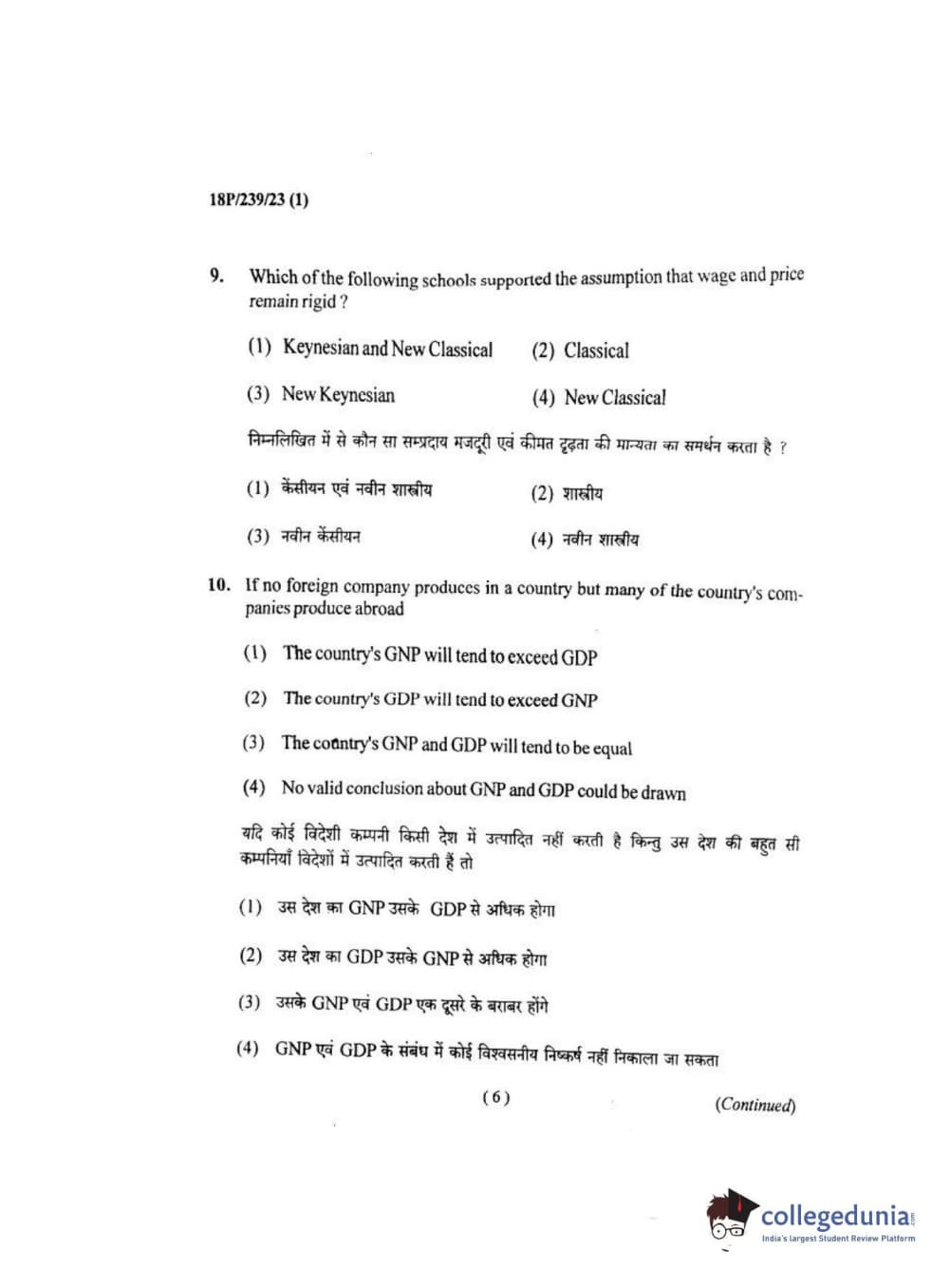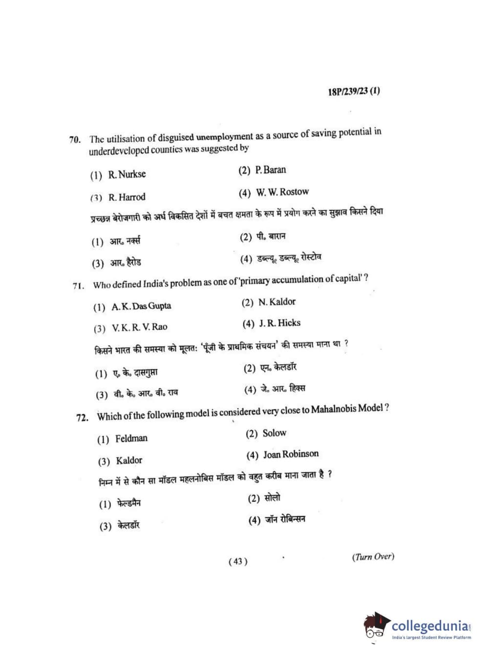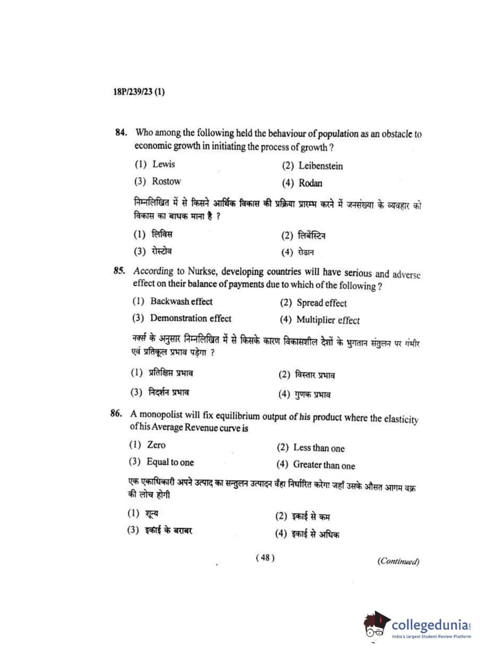 BHU PET 2018 MA ECONOMICS Question Paper with Answer Key PDF