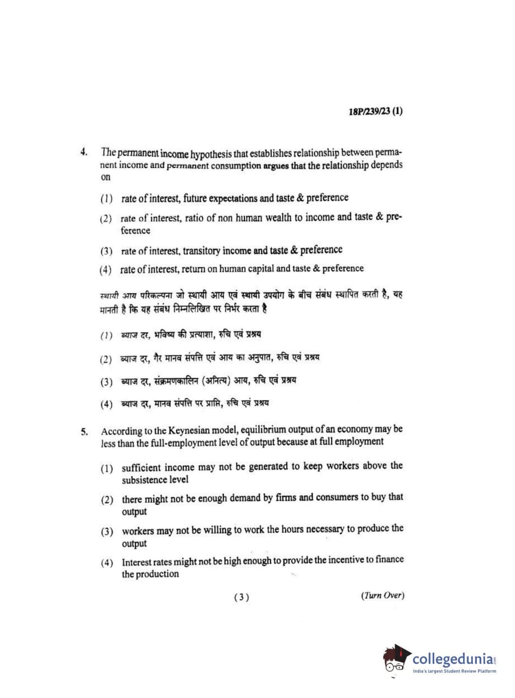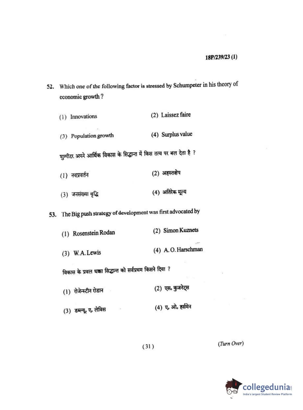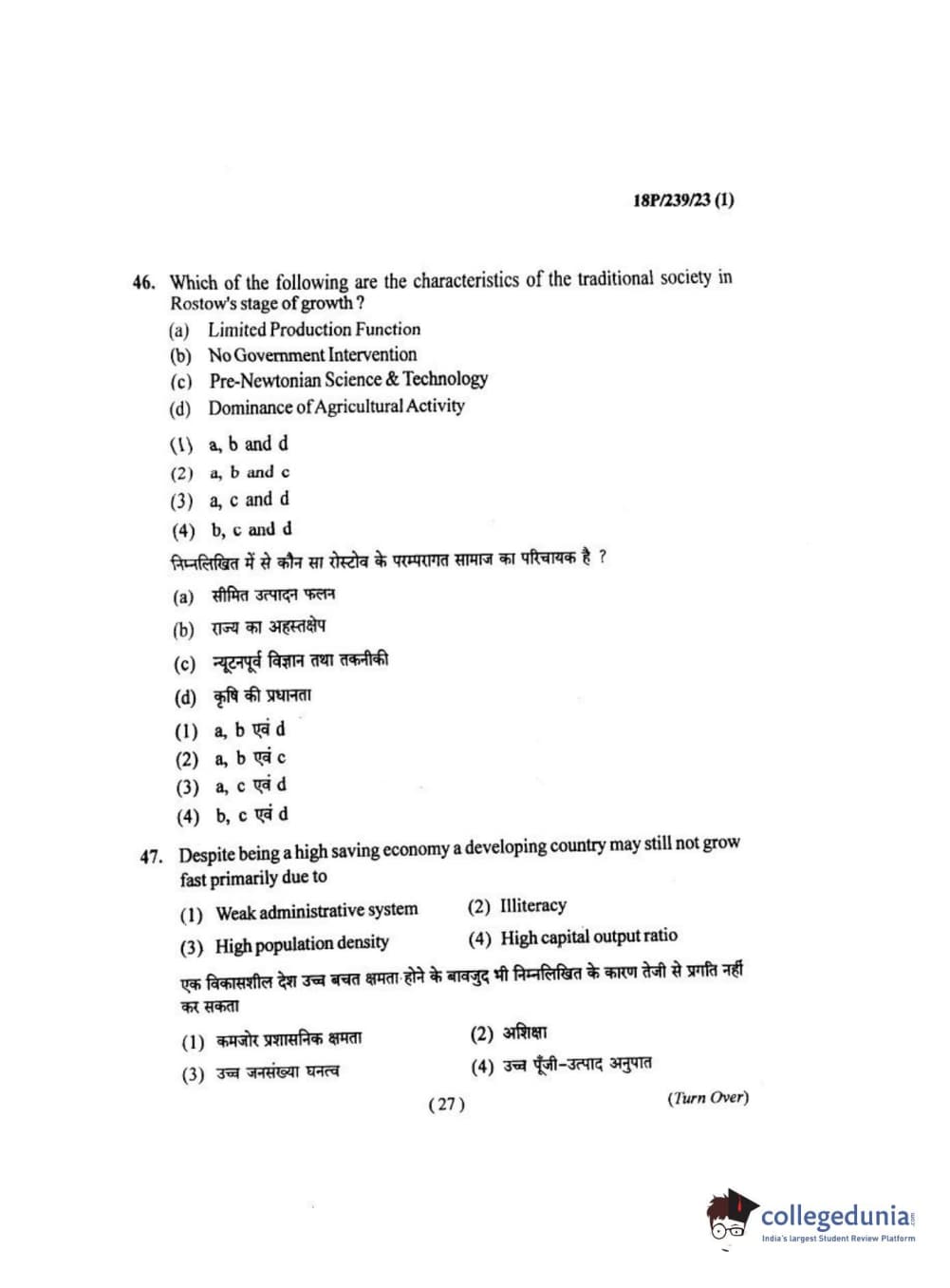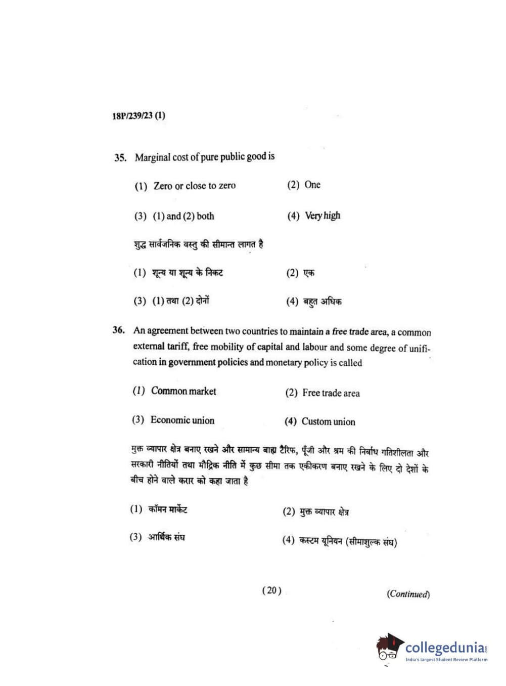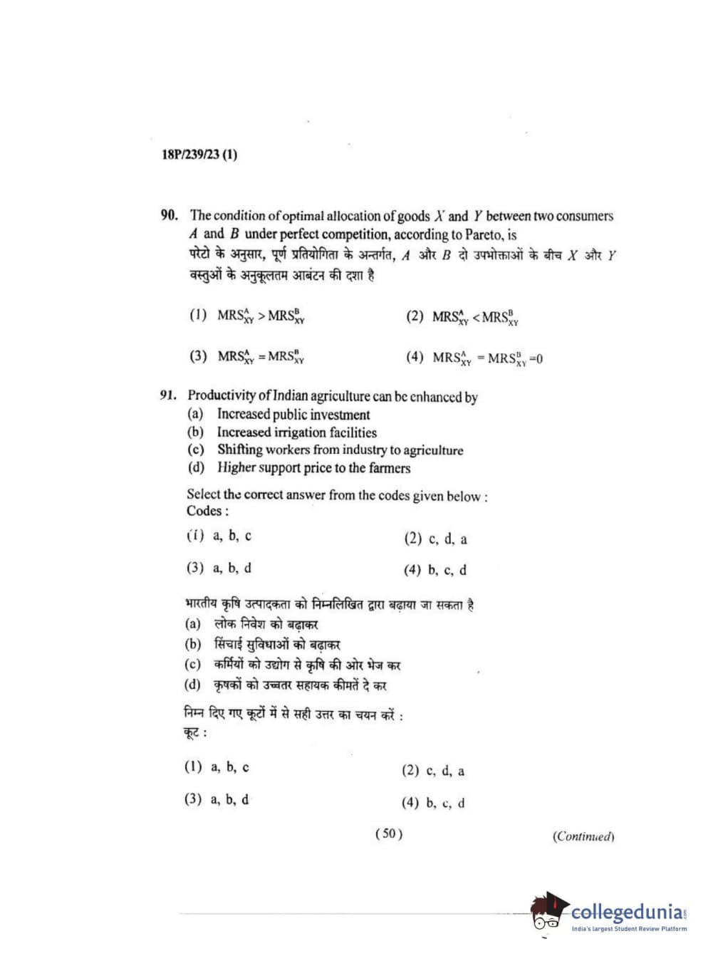 BHU PET 2018 MA ECONOMICS Question Paper with Answer Key PDF