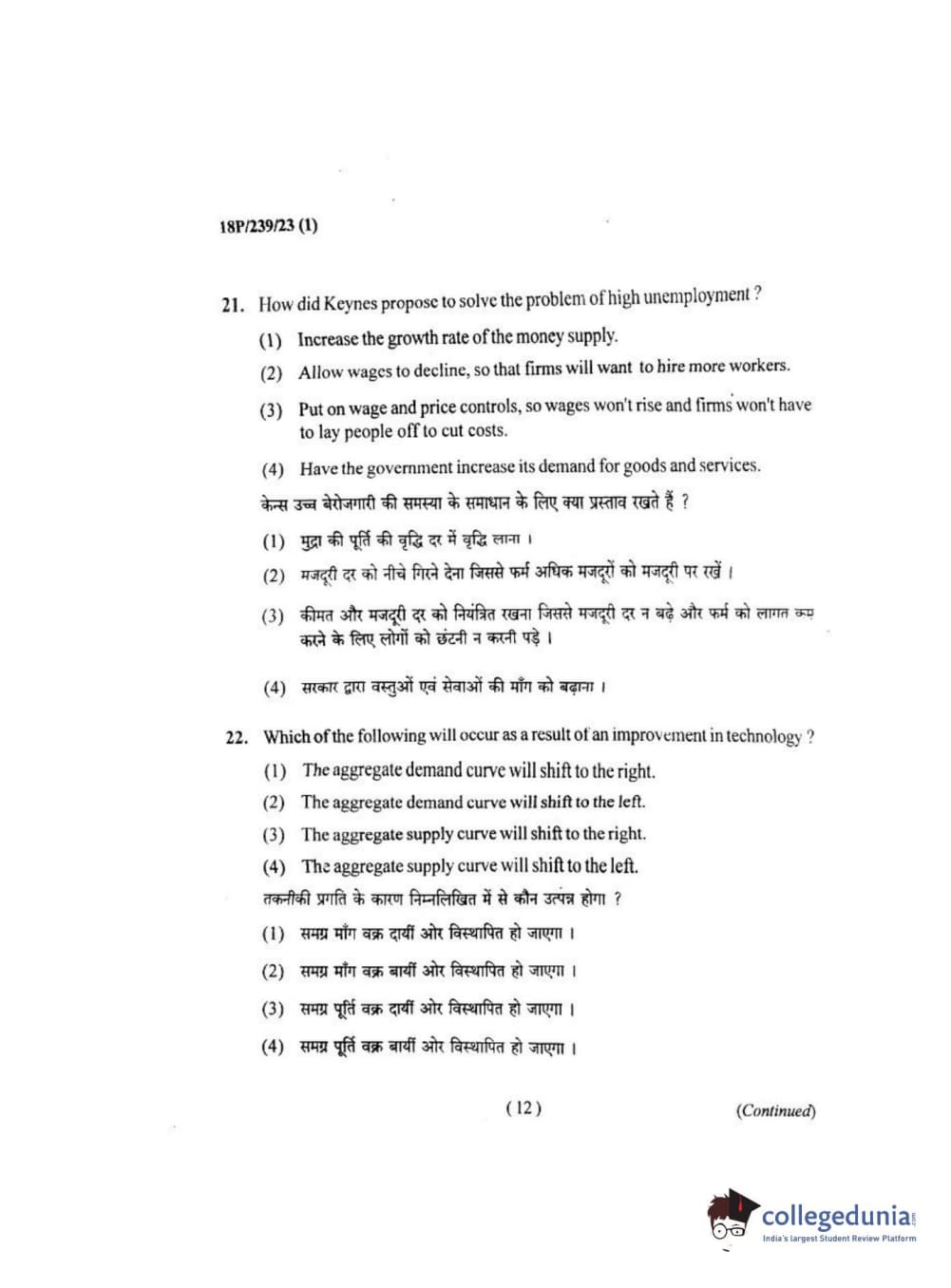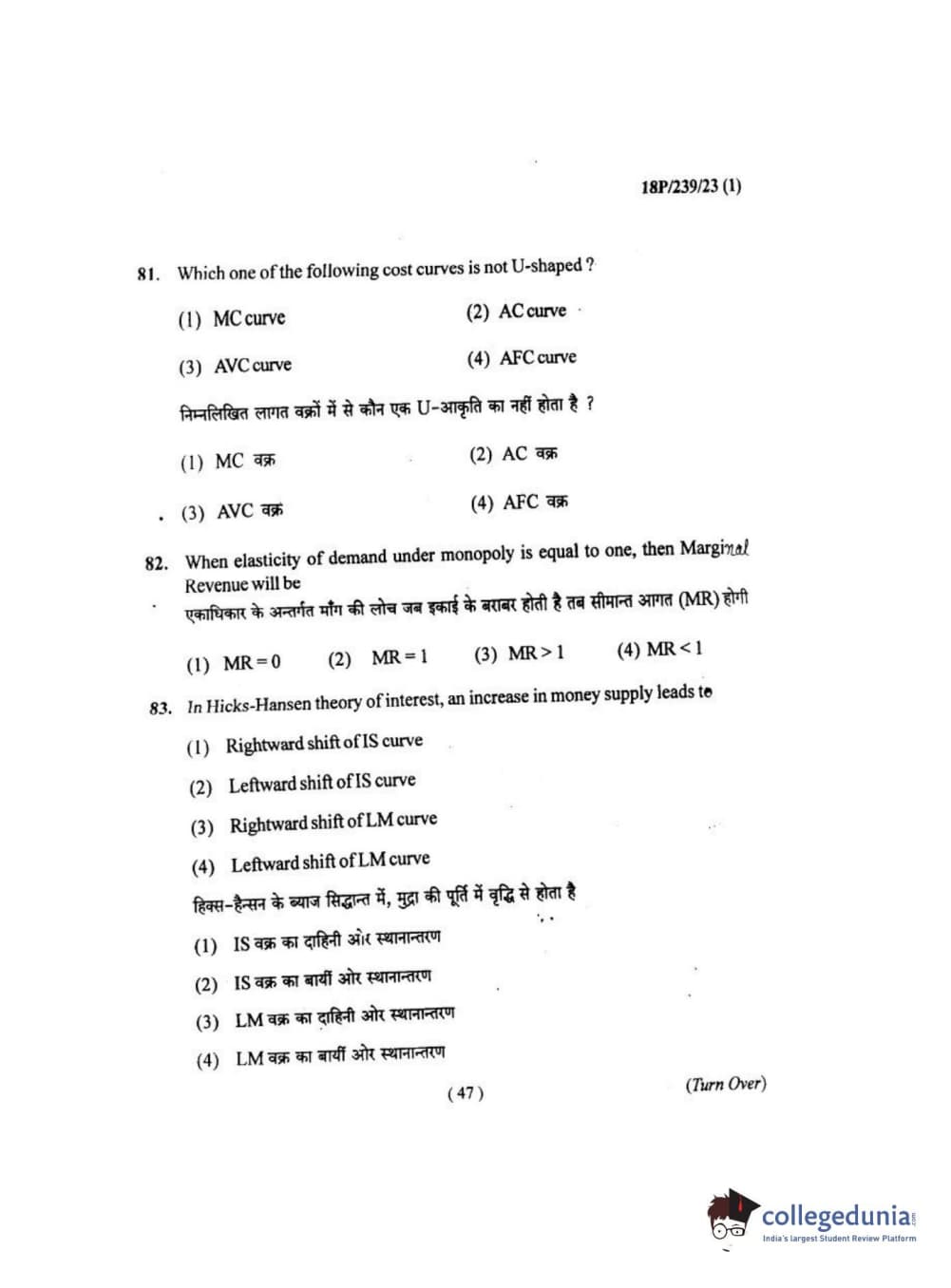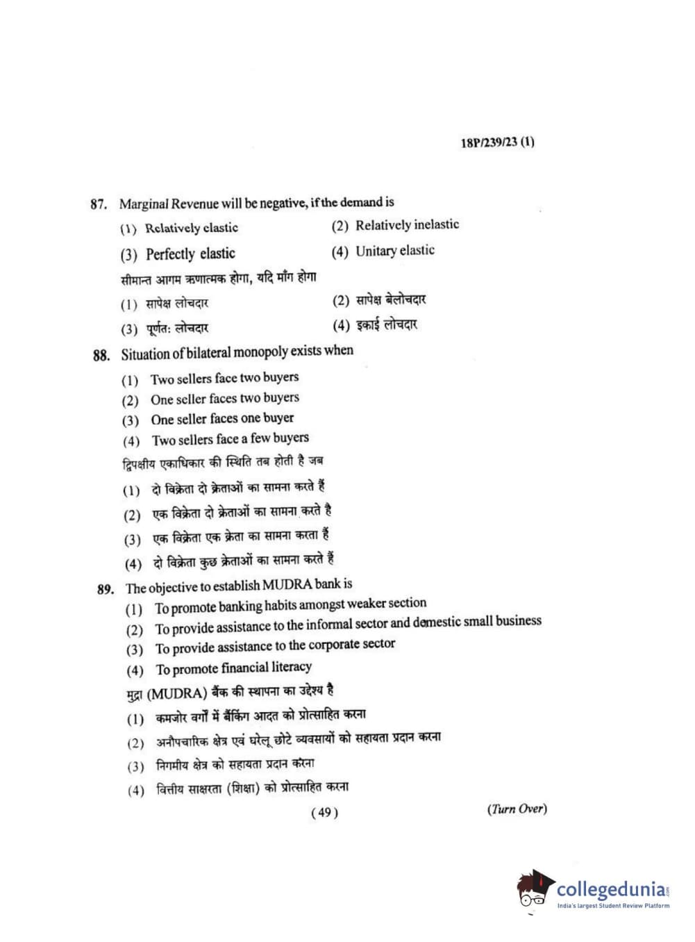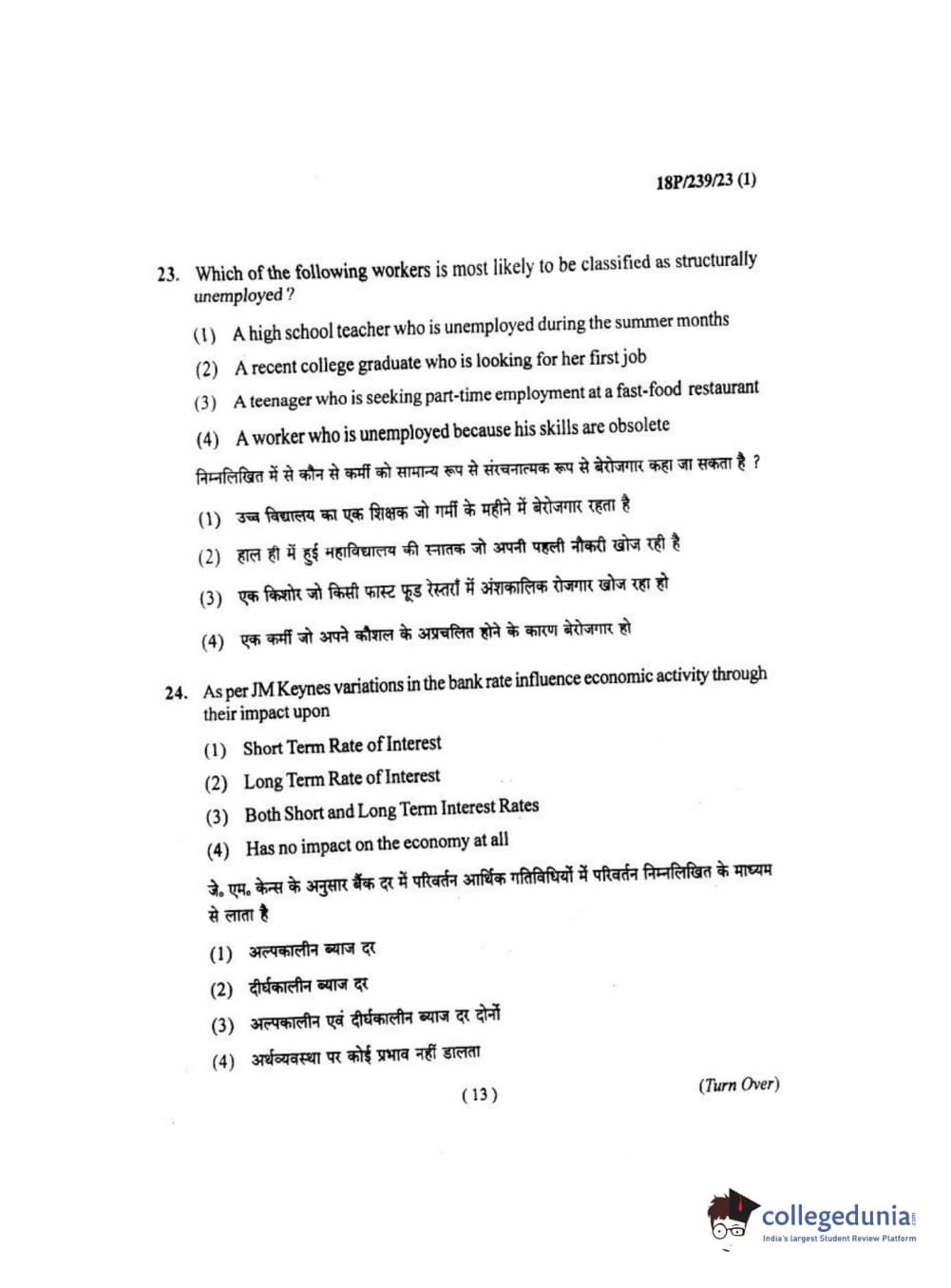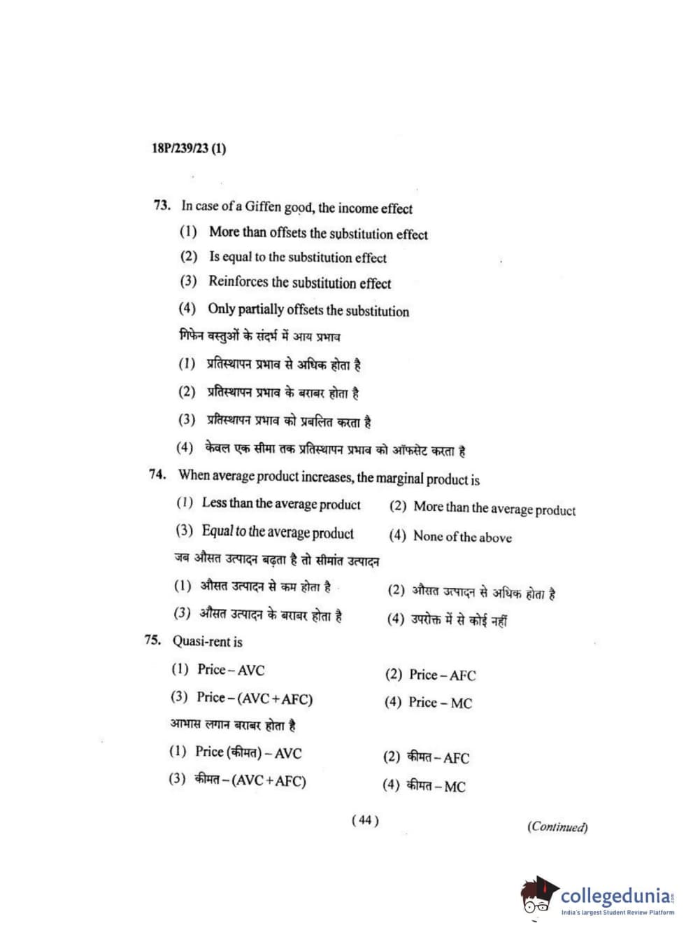 BHU PET 2018 MA ECONOMICS Question Paper with Answer Key PDF