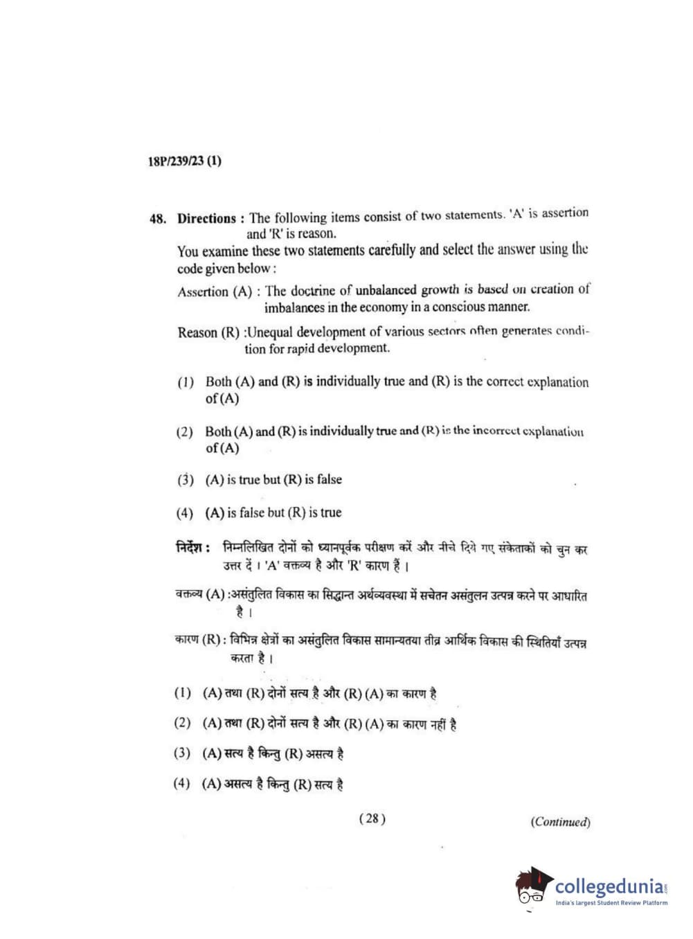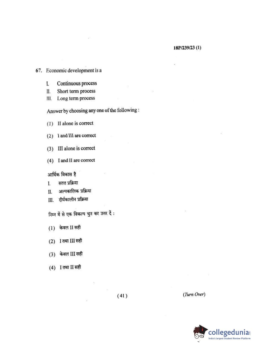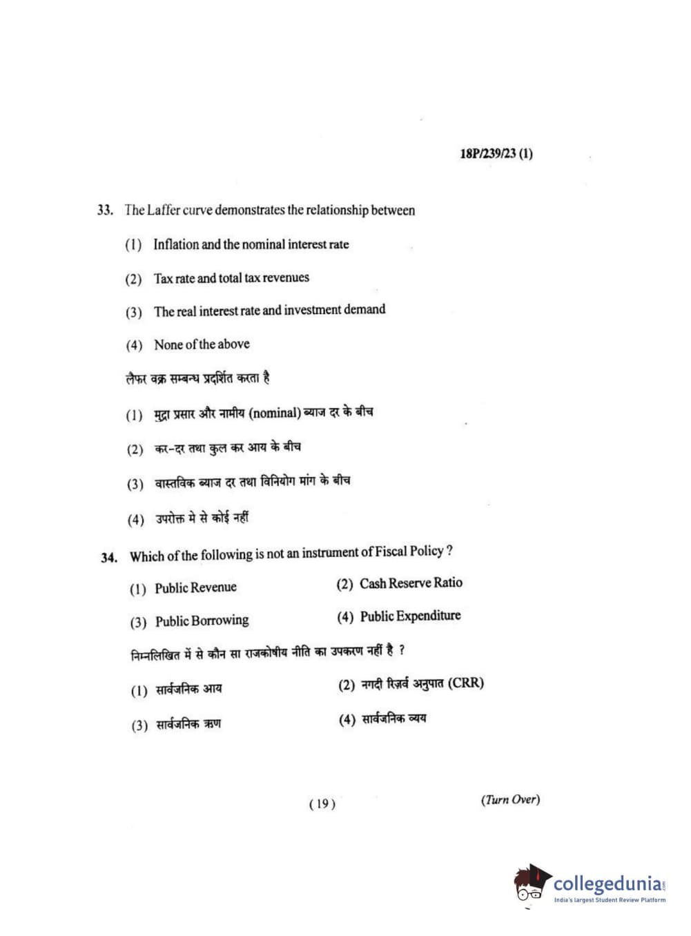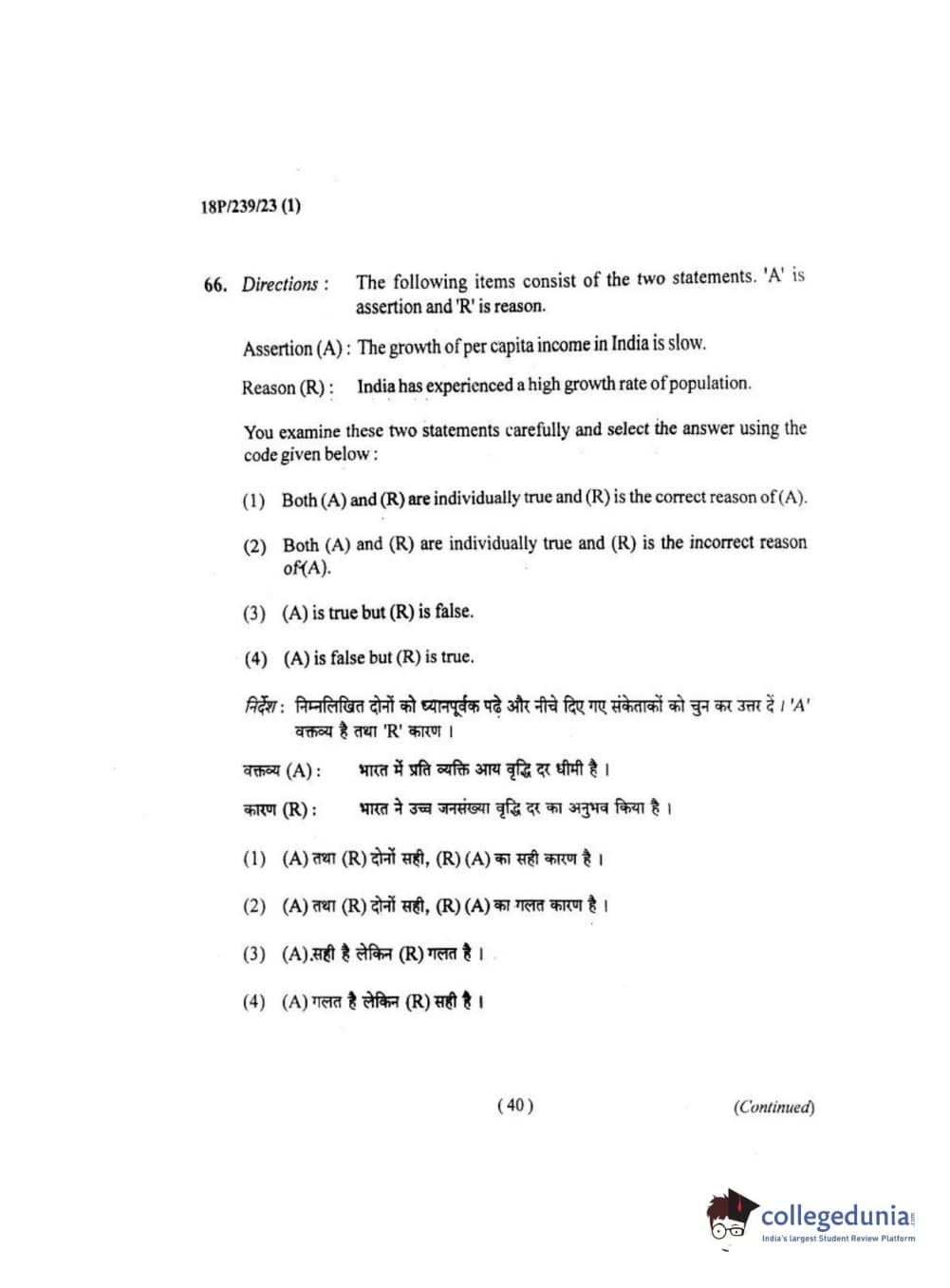 BHU PET 2018 MA ECONOMICS Question Paper with Answer Key PDF