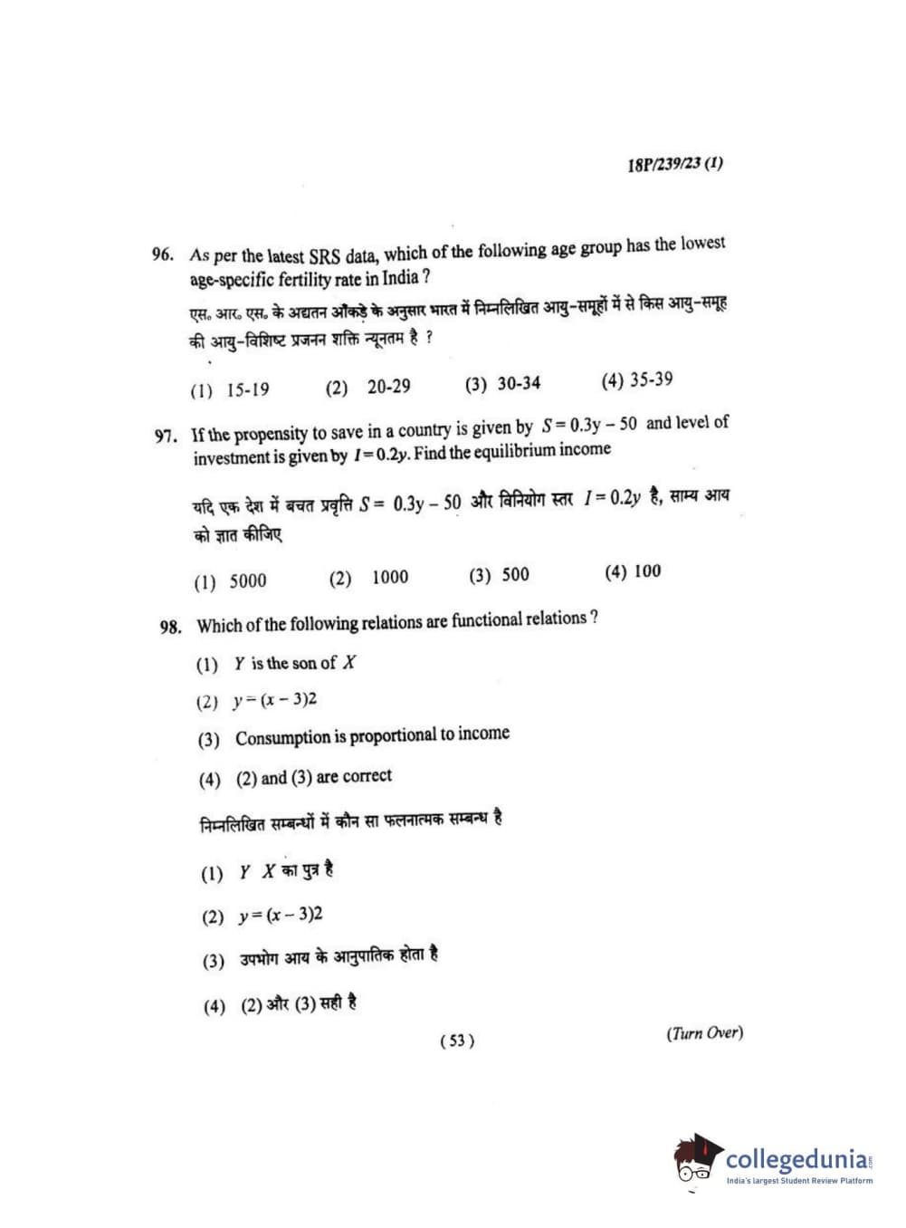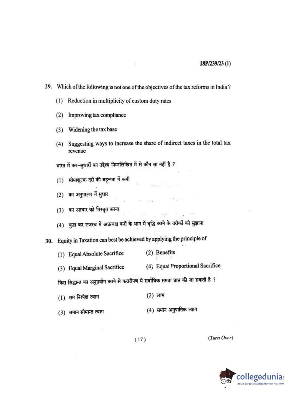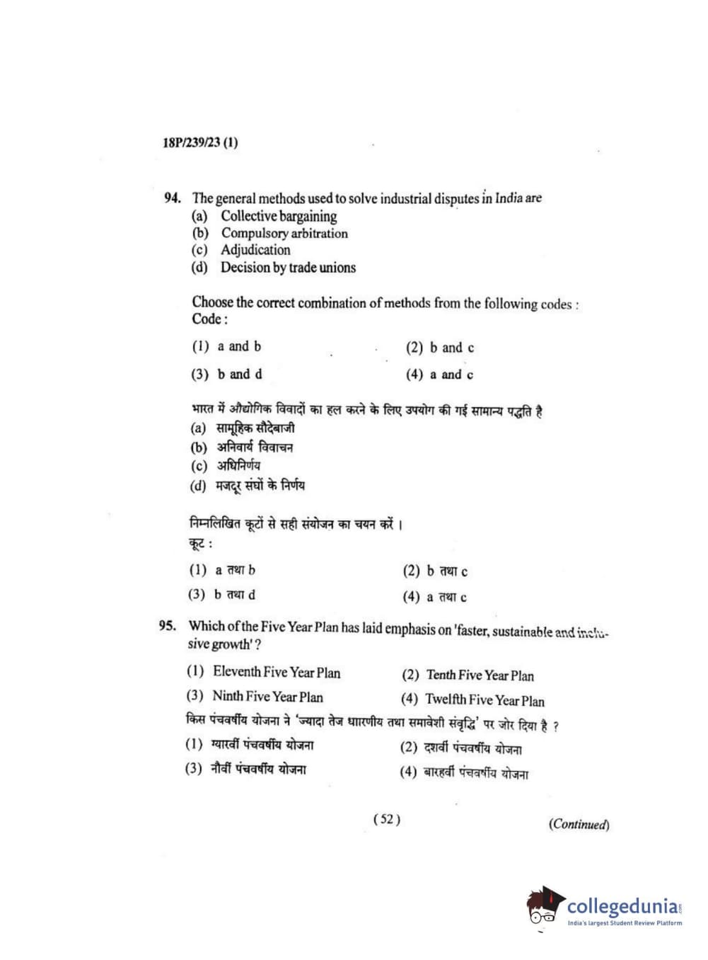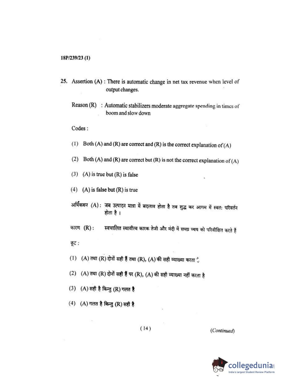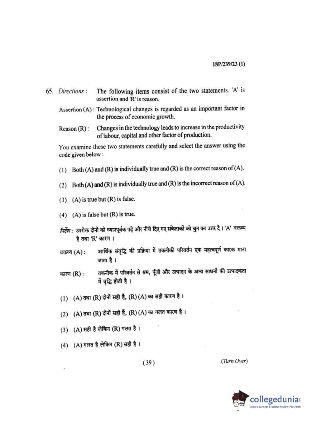 BHU PET 2018 MA ECONOMICS Question Paper with Answer Key PDF