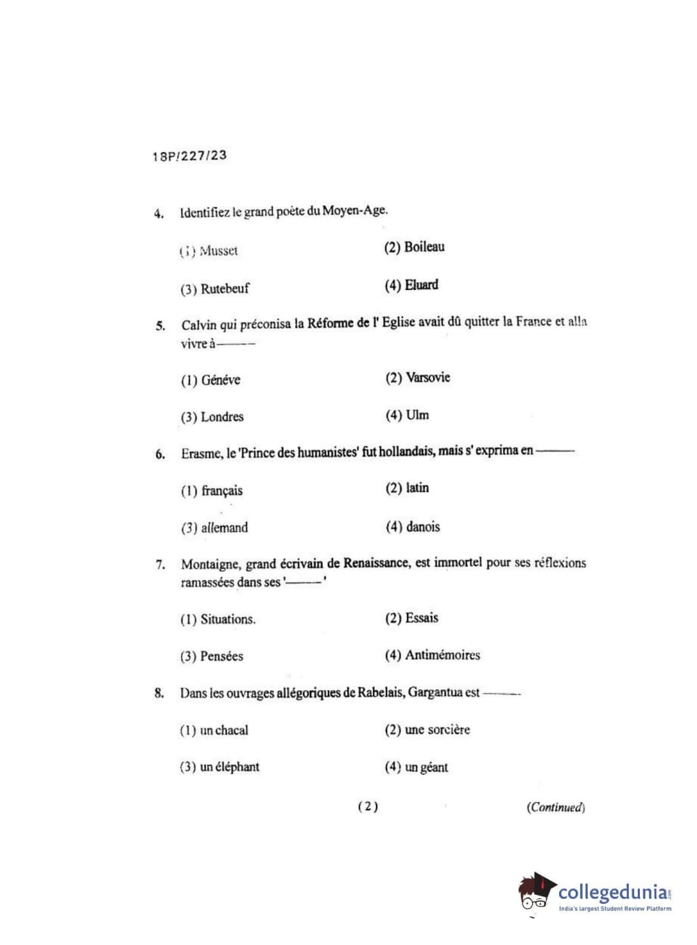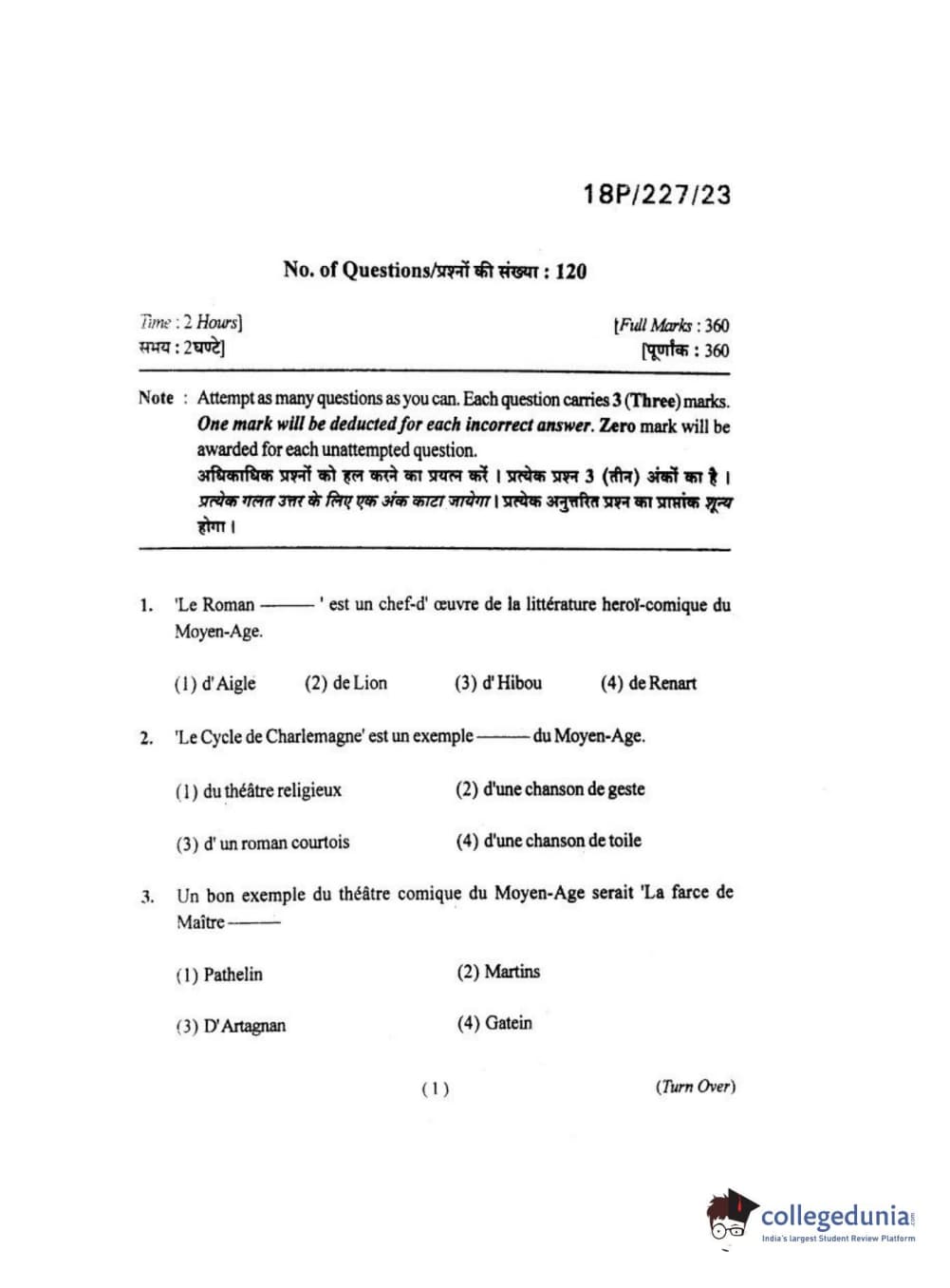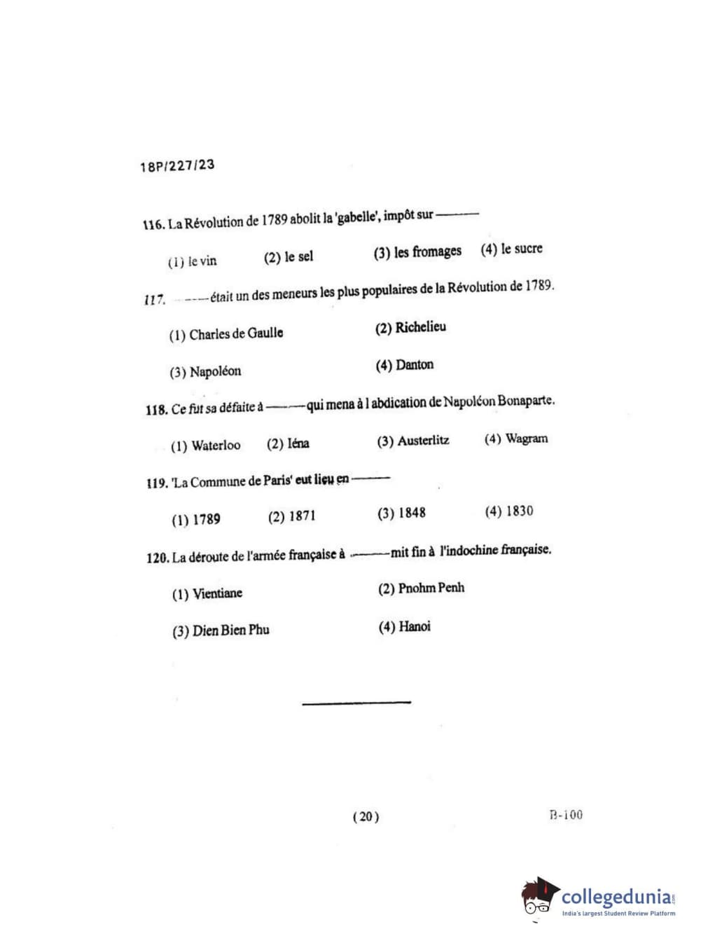 BHU PET 2018 MA FRENCH Question paper with answer key pdf is available for download. The exam was successfully organized by Banaras Hindu University (BHU). The question paper comprised a total of 120 questions.