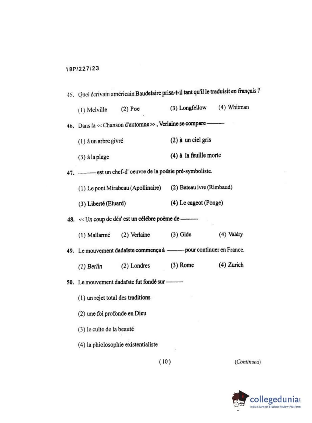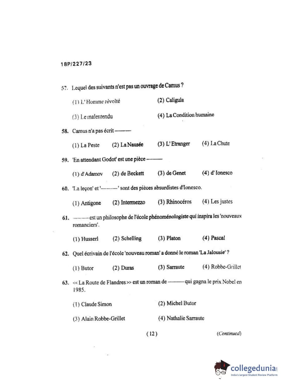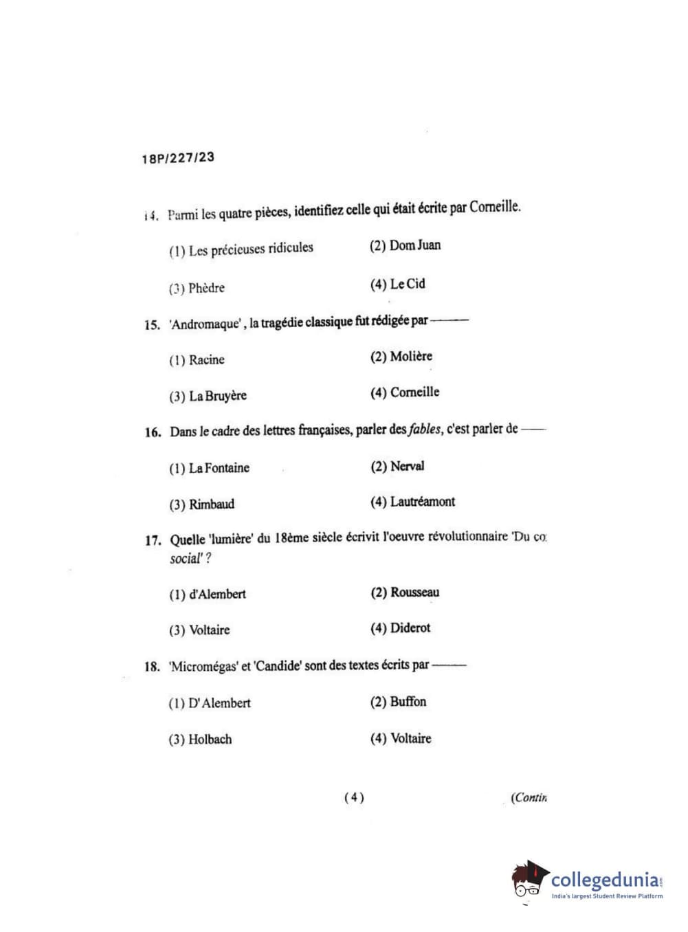 BHU PET 2018 MA FRENCH Question paper with answer key pdf is available for download. The exam was successfully organized by Banaras Hindu University (BHU). The question paper comprised a total of 120 questions.