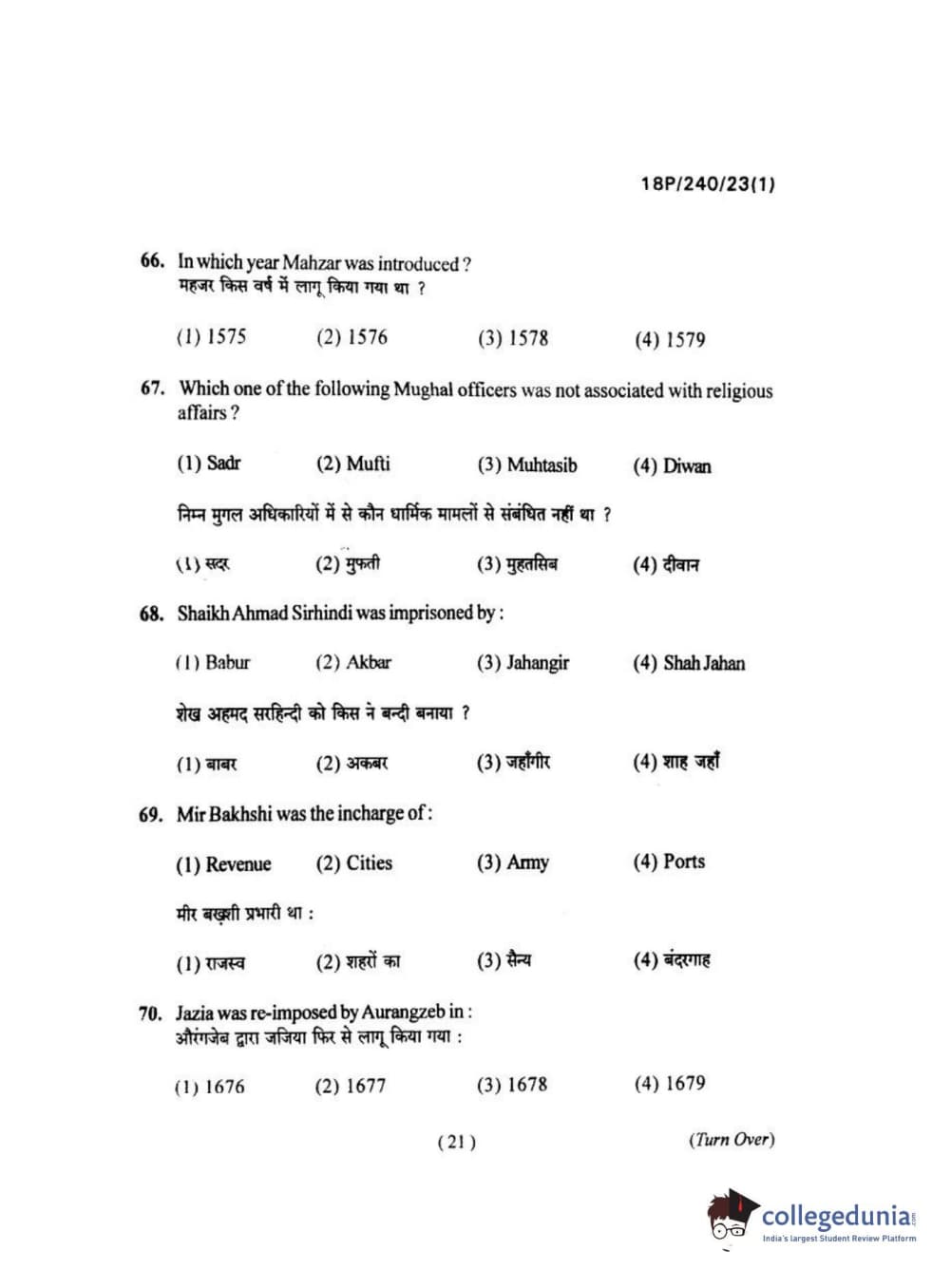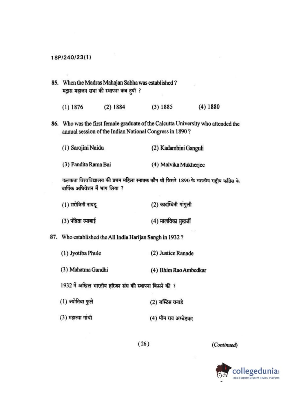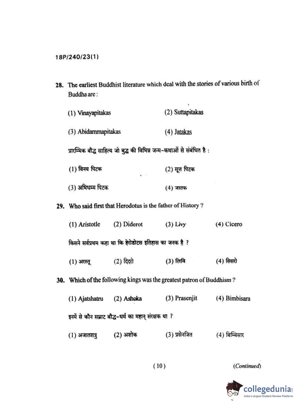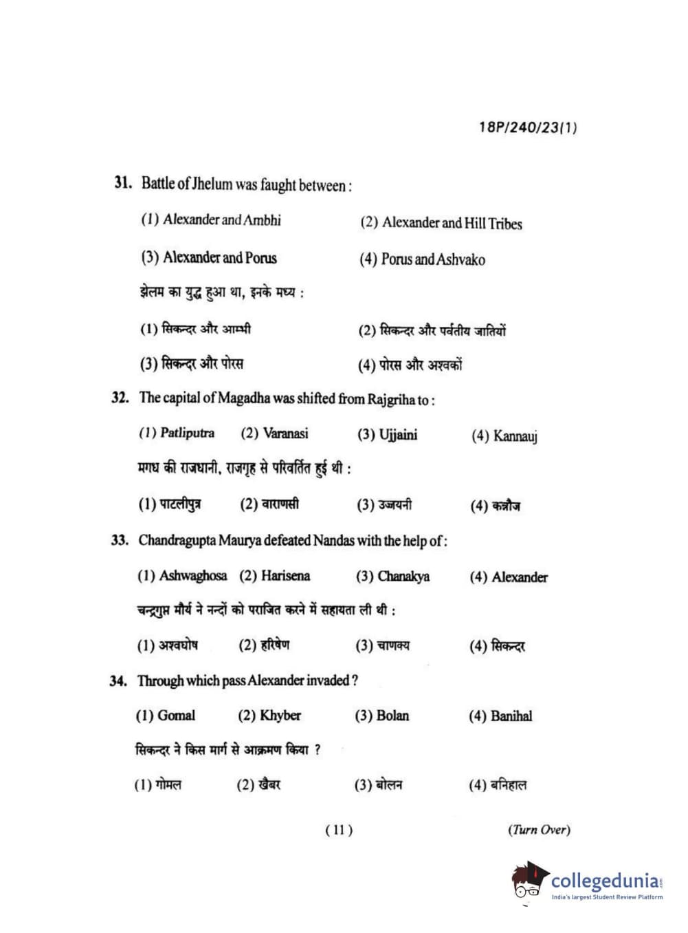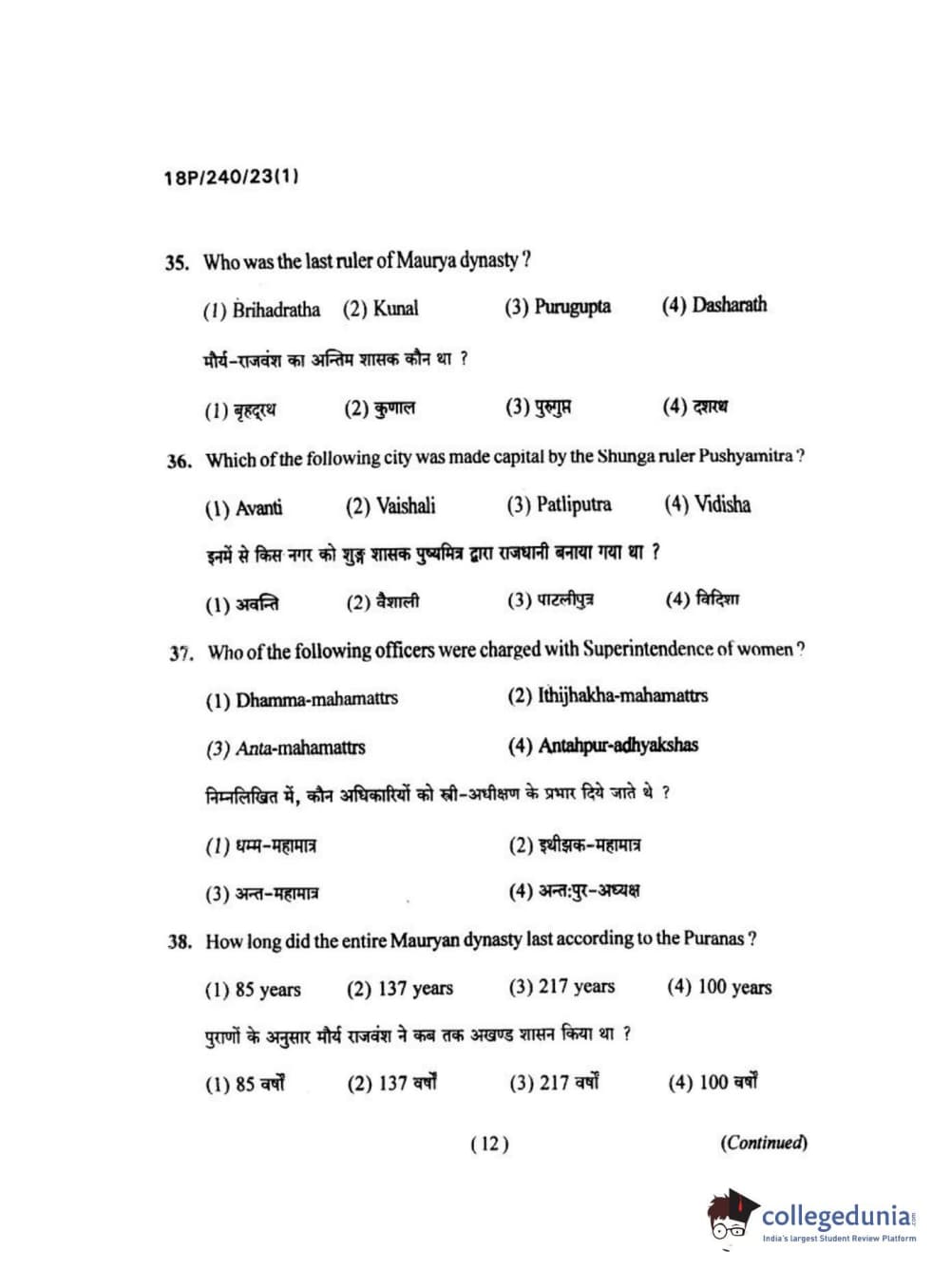 BHU PET 2018 M.A HISTORY Question Paper with Answer Key PDFs in Hindi