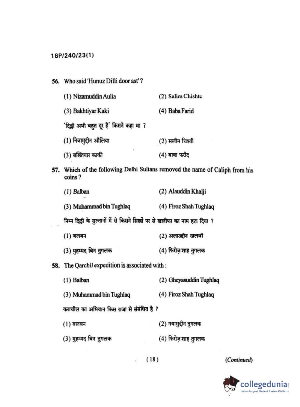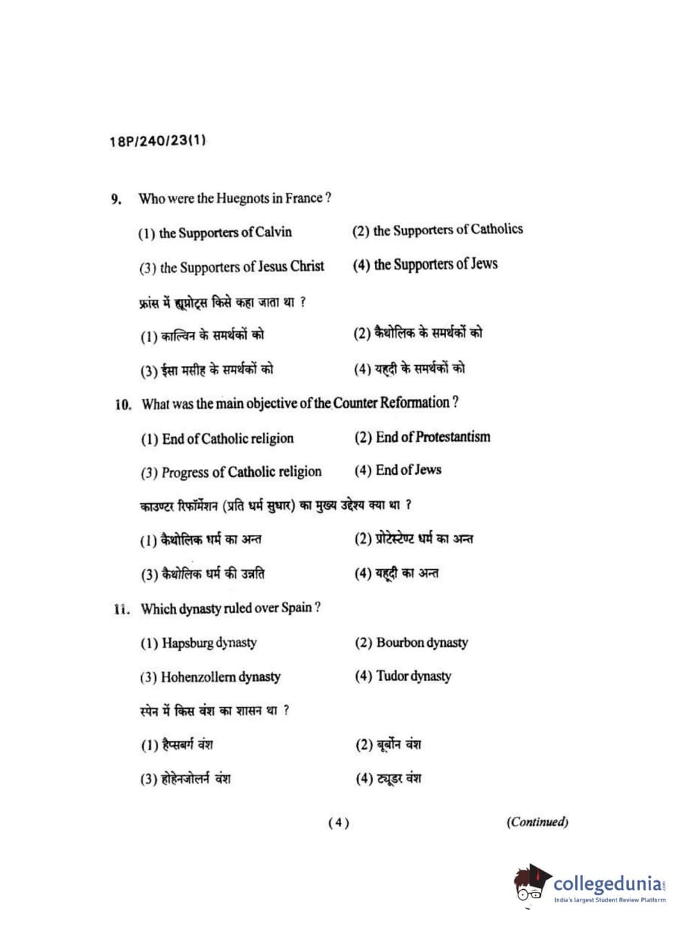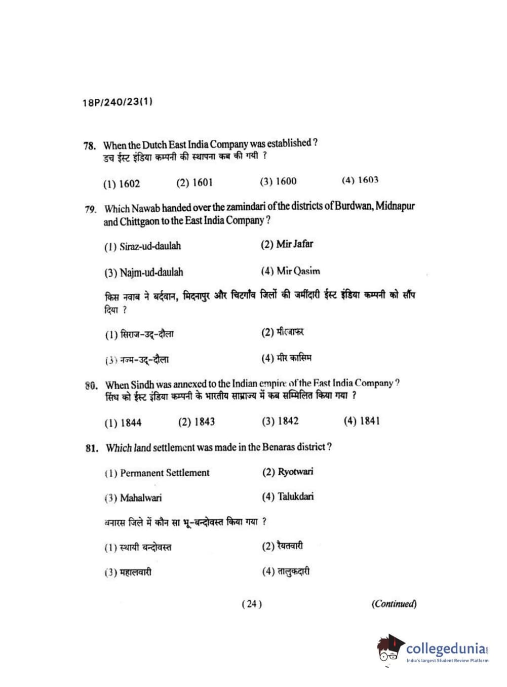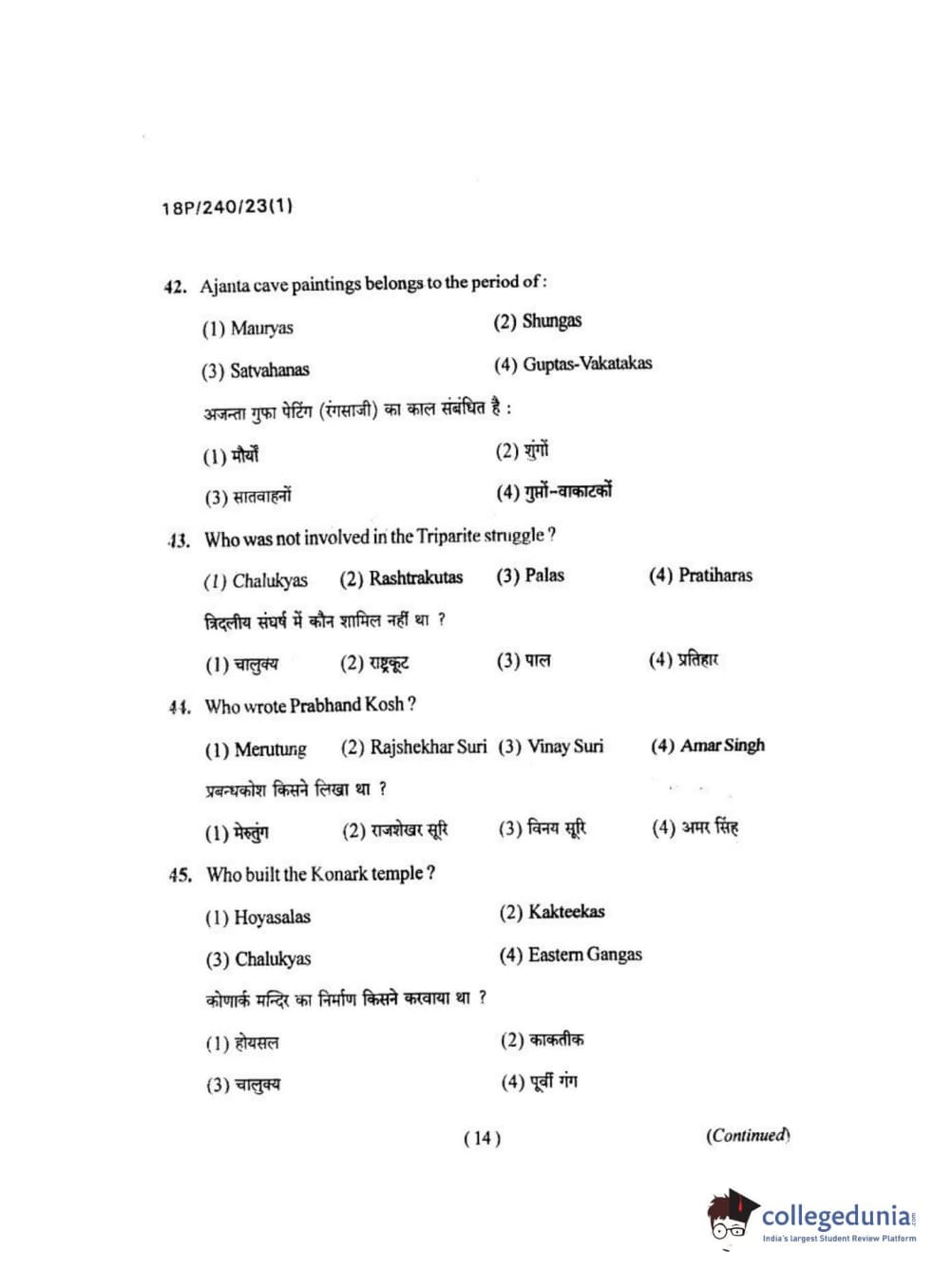 BHU PET 2018 M.A HISTORY Question Paper with Answer Key PDFs in Hindi