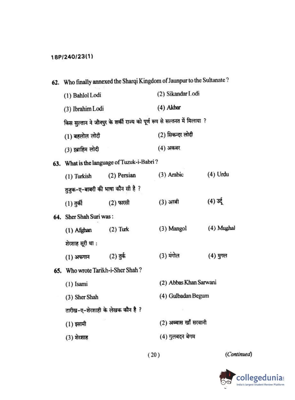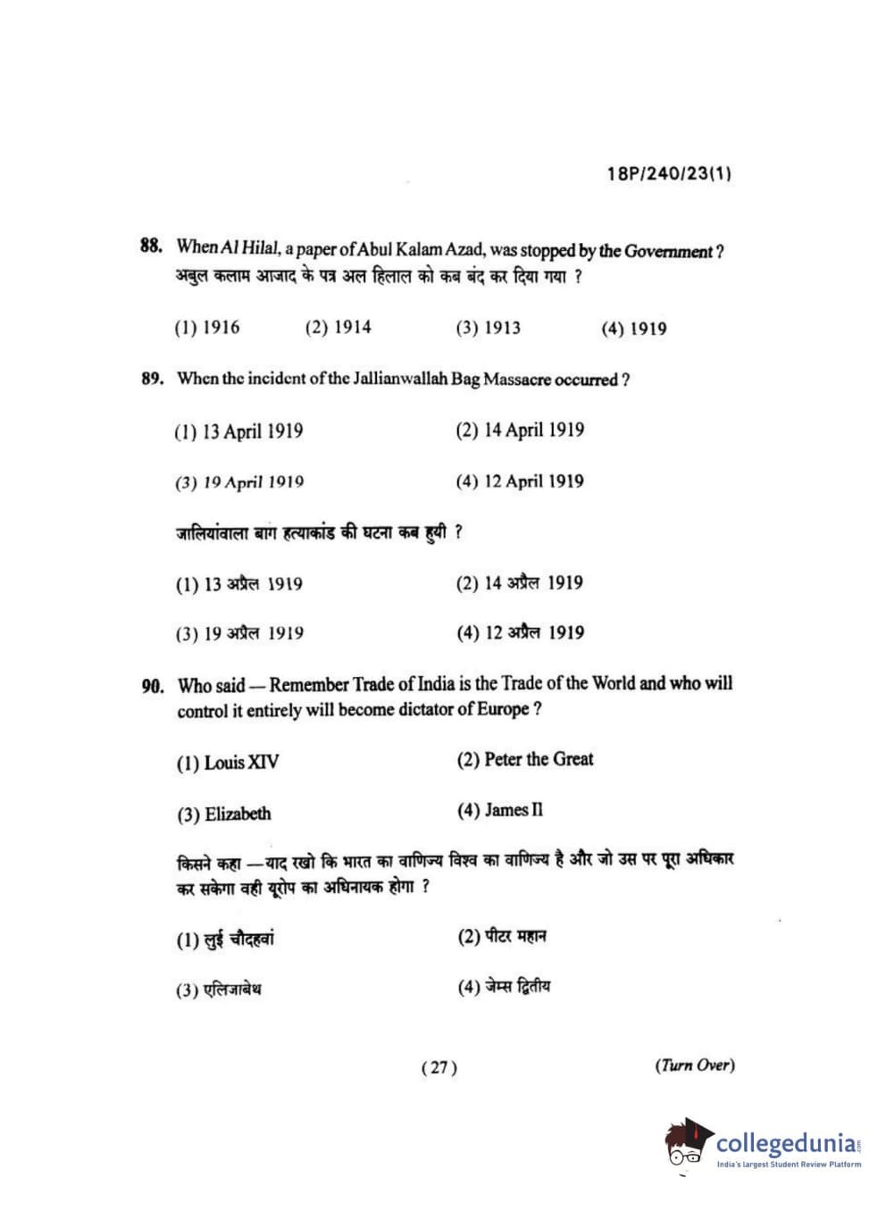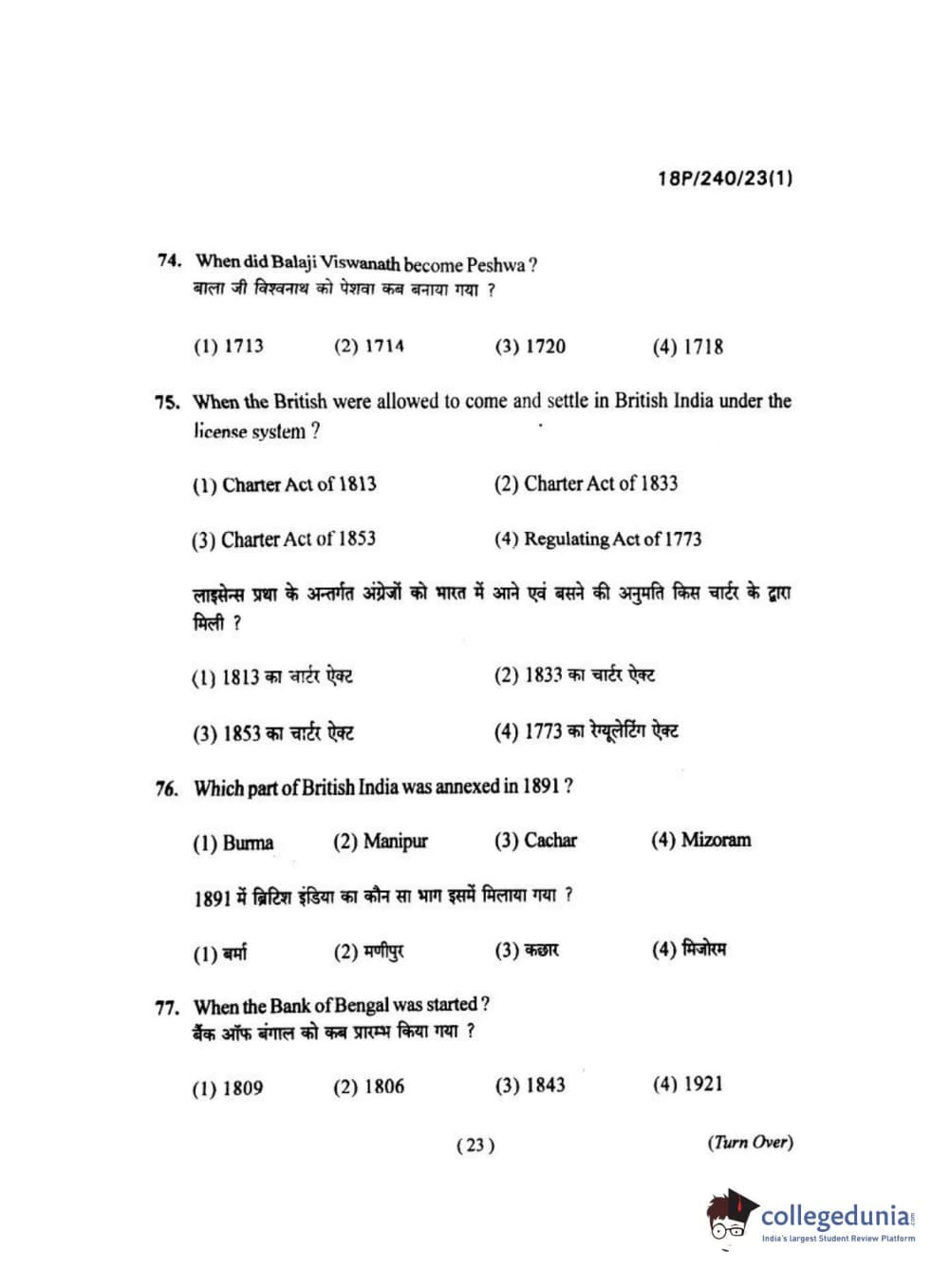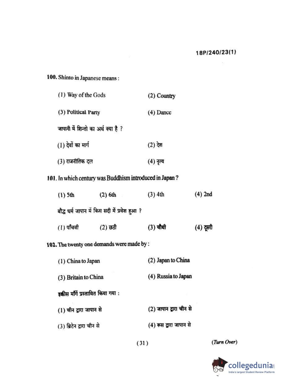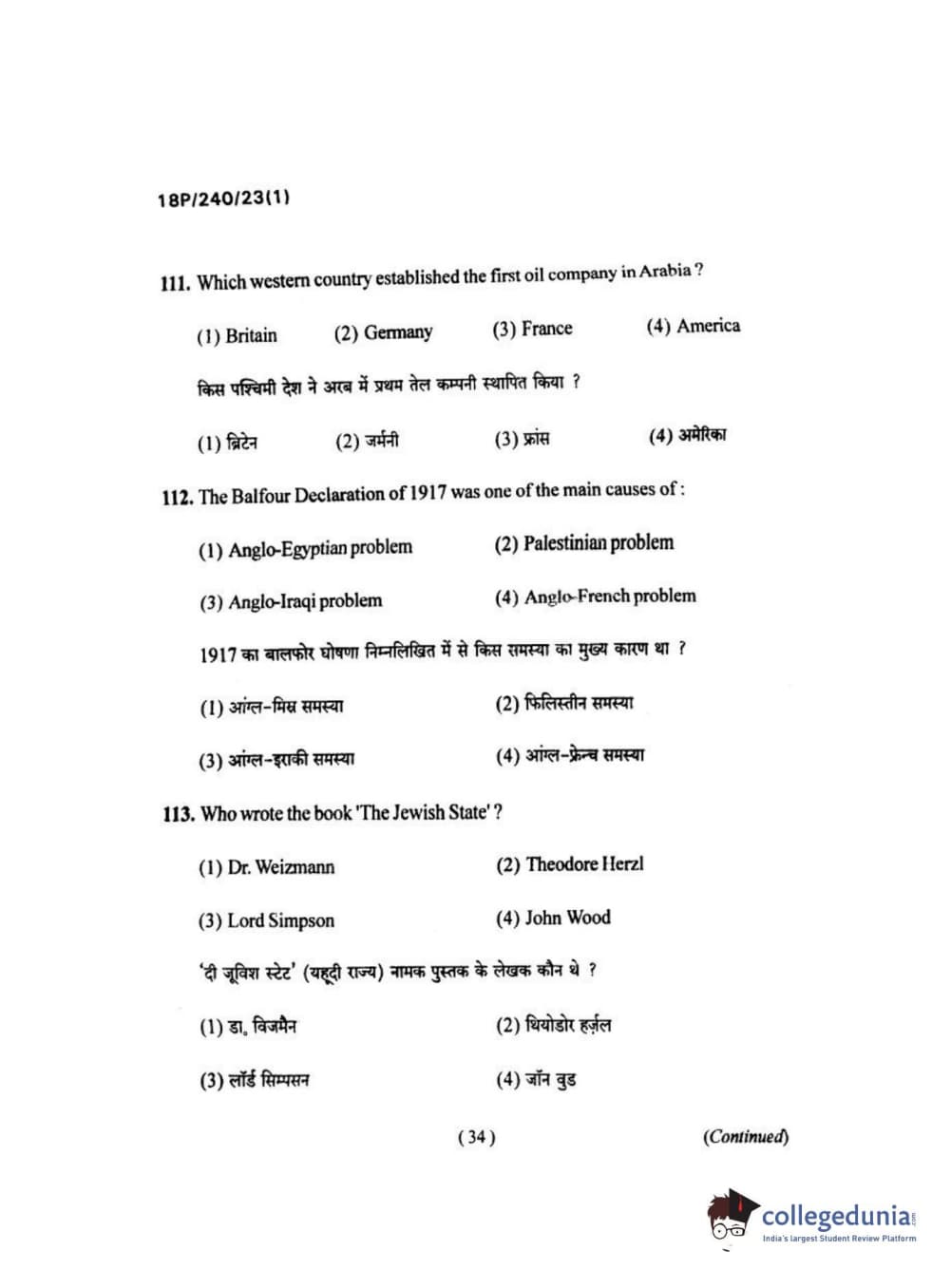 BHU PET 2018 M.A HISTORY Question Paper with Answer Key PDFs in Hindi