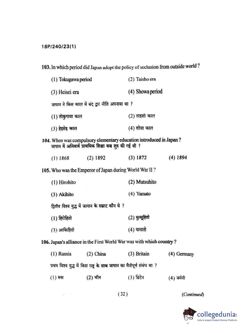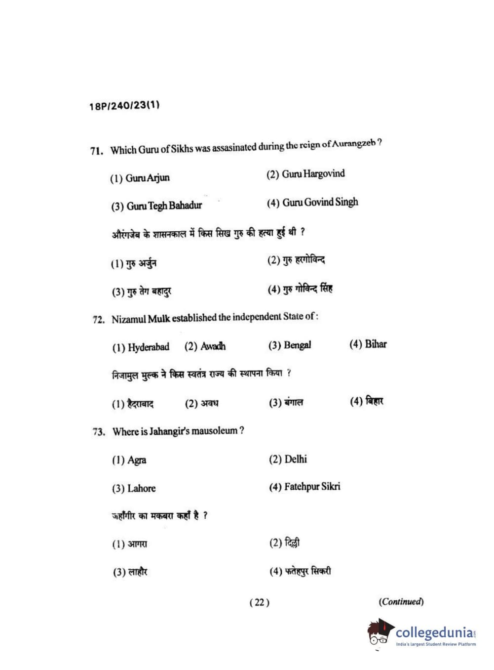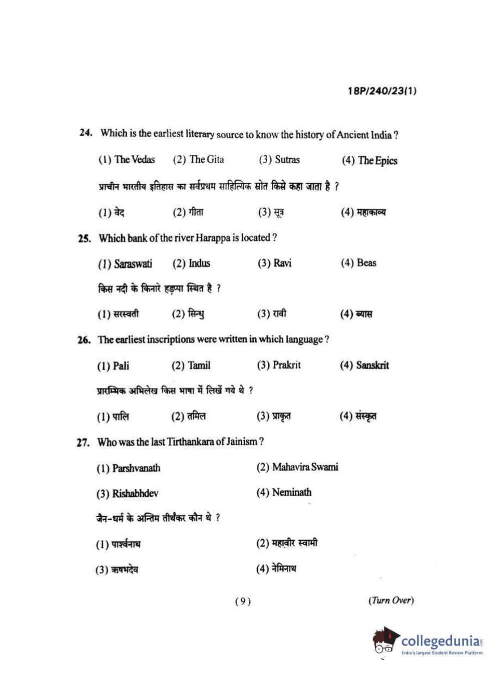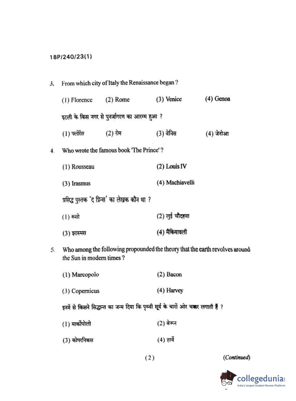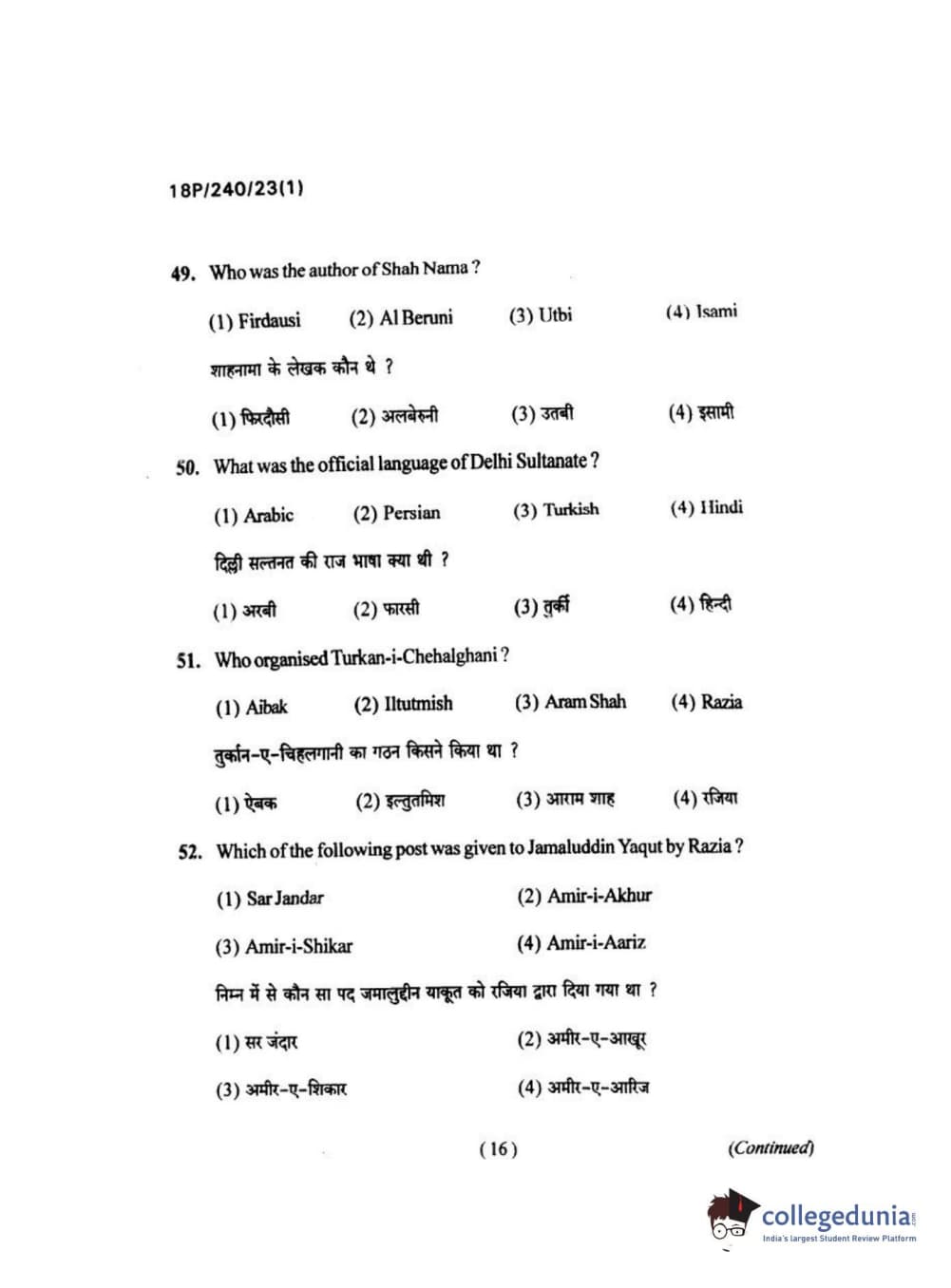 BHU PET 2018 M.A HISTORY Question Paper with Answer Key PDFs in Hindi