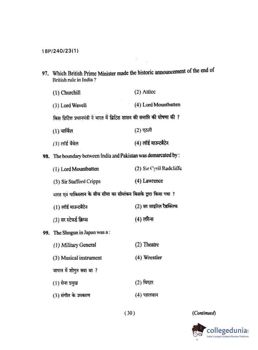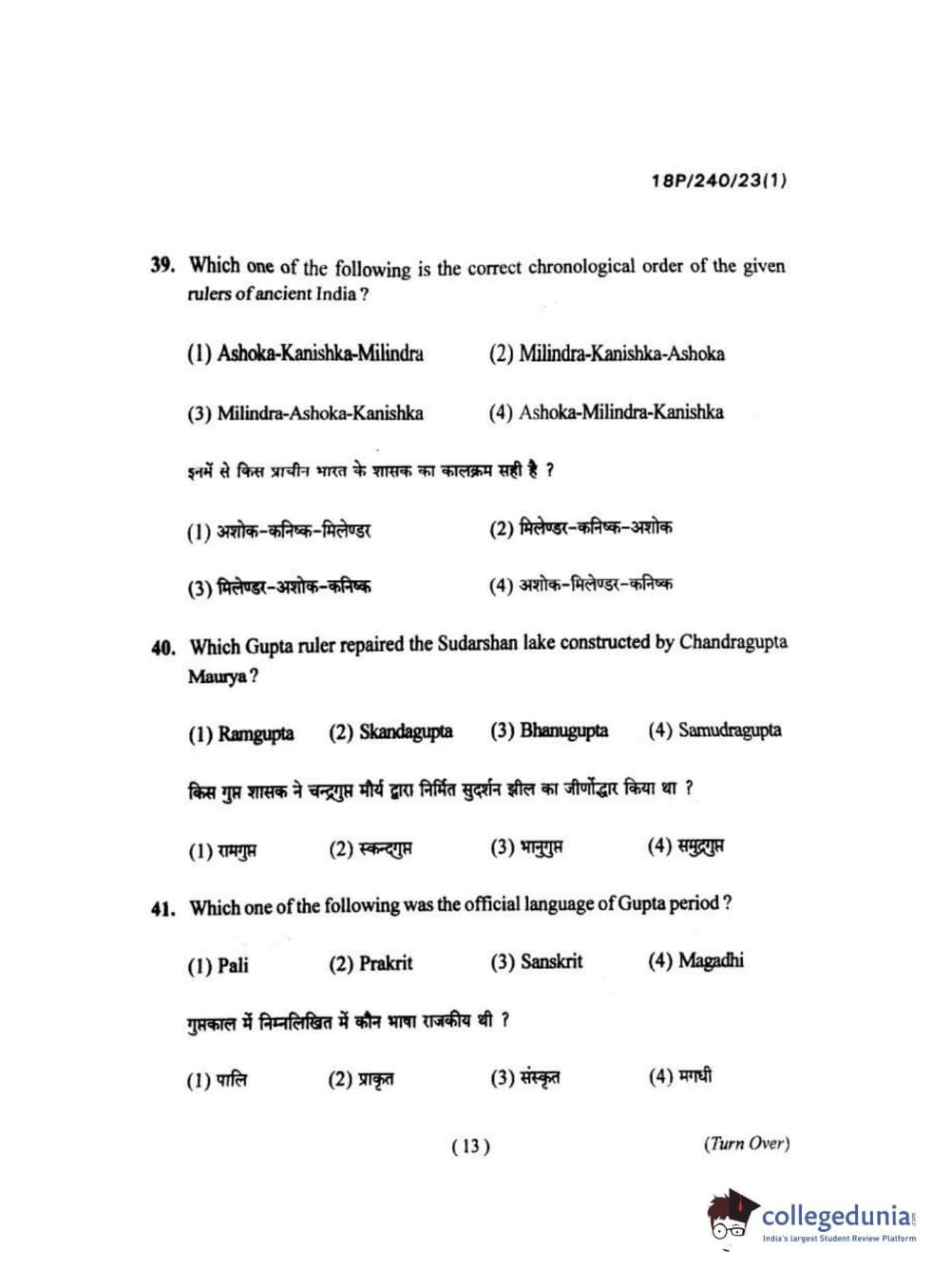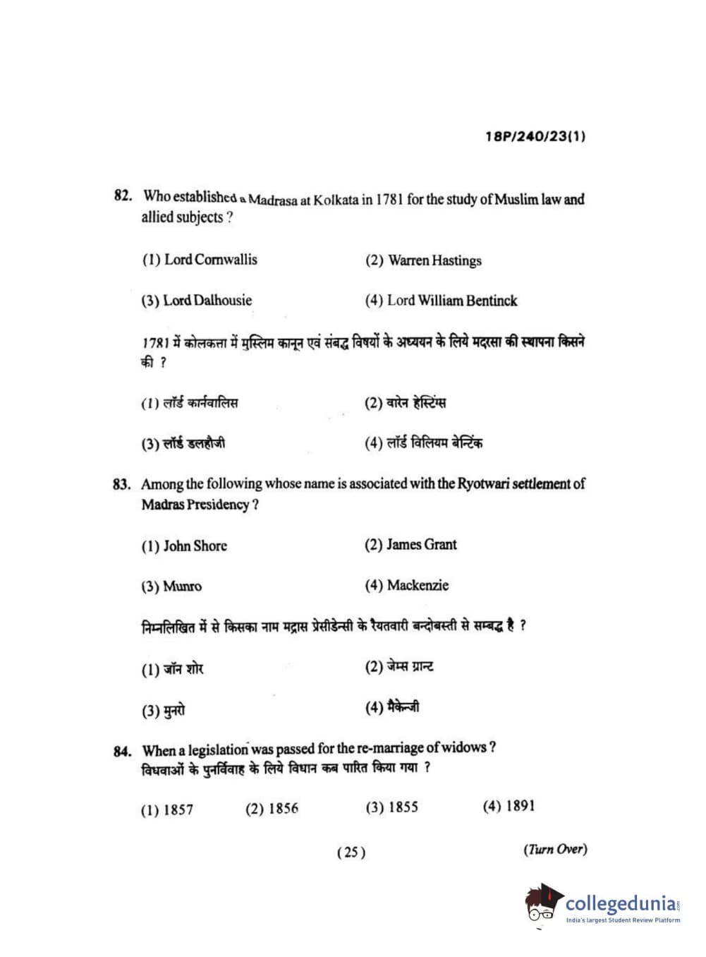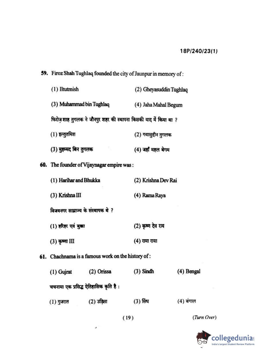 BHU PET 2018 M.A HISTORY Question Paper with Answer Key PDFs in Hindi