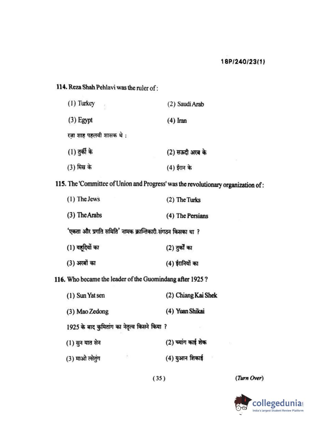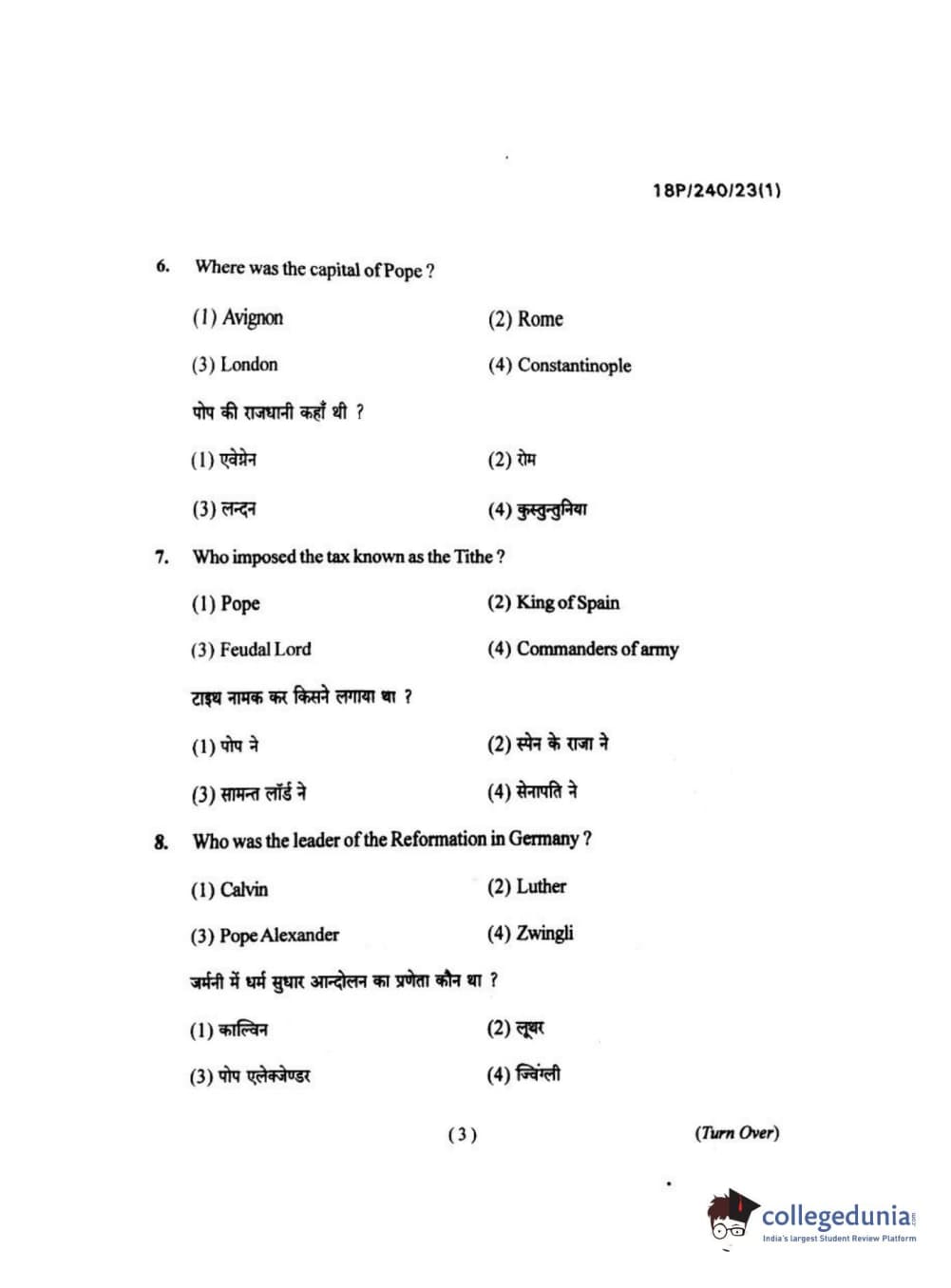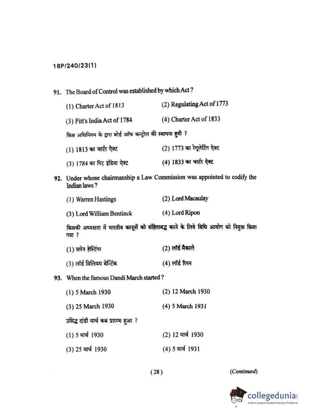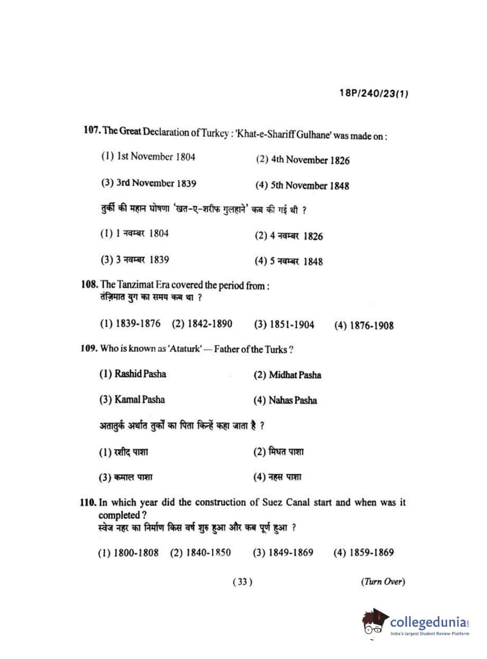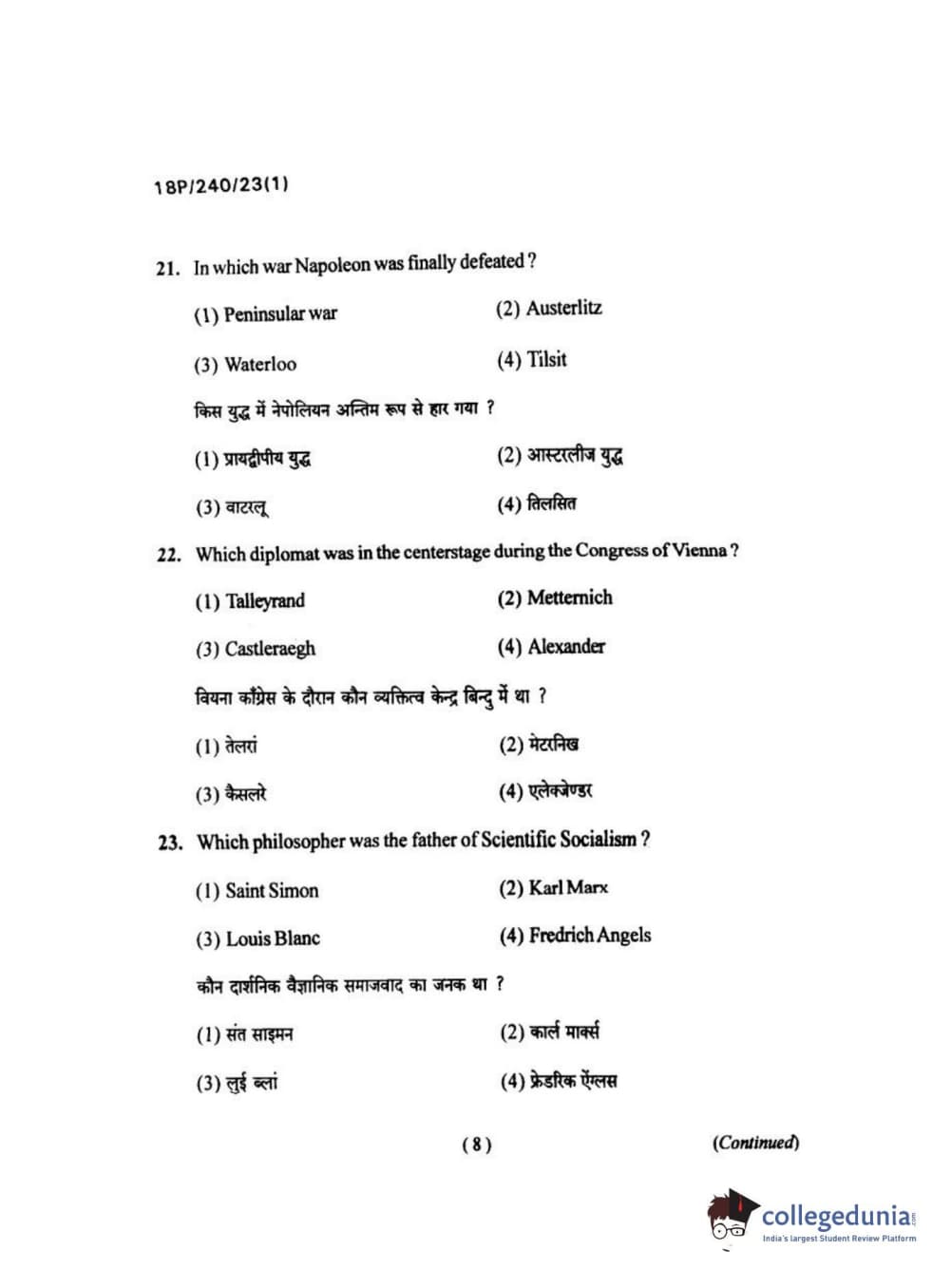 BHU PET 2018 M.A HISTORY Question Paper with Answer Key PDFs in Hindi