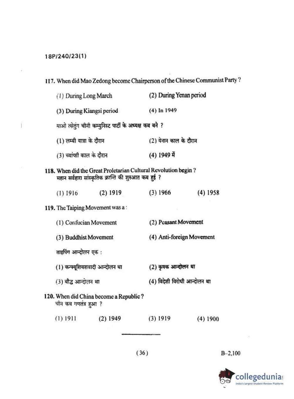 BHU PET 2018 M.A HISTORY Question paper with answer key pdf is available for download. The exam was successfully organized by Banaras Hindu University (BHU). The question paper comprised a total of 120 questions.