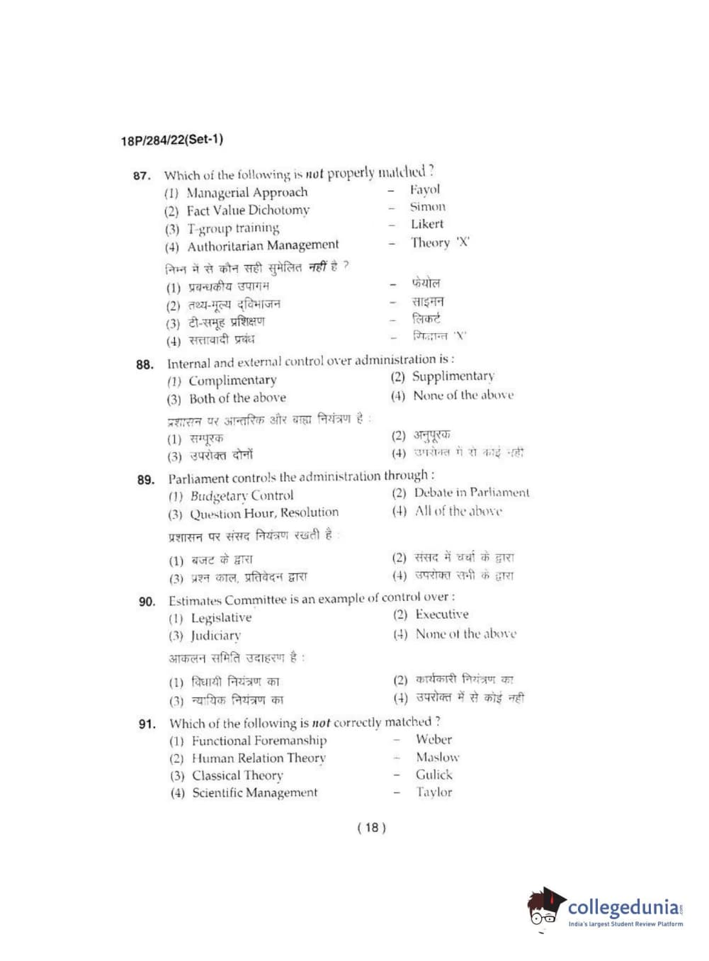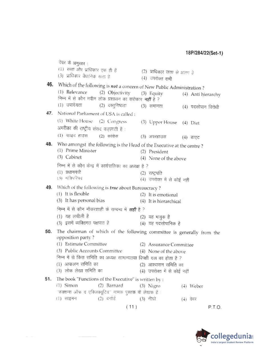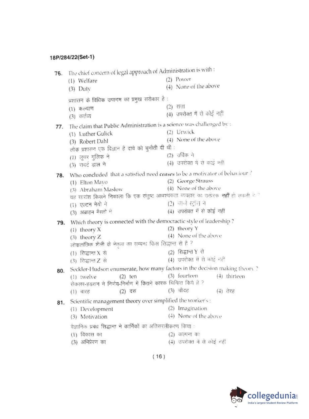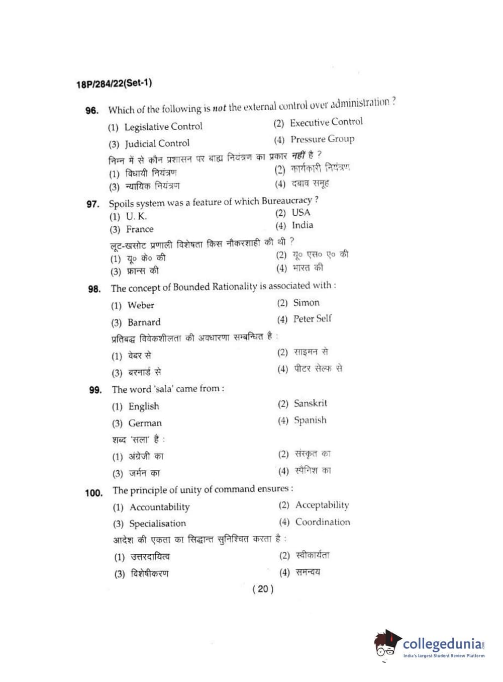 BHU PET 2018 M.A IN PUBLIC ADMINISTRATION Question Paper with Answer Key PDFs