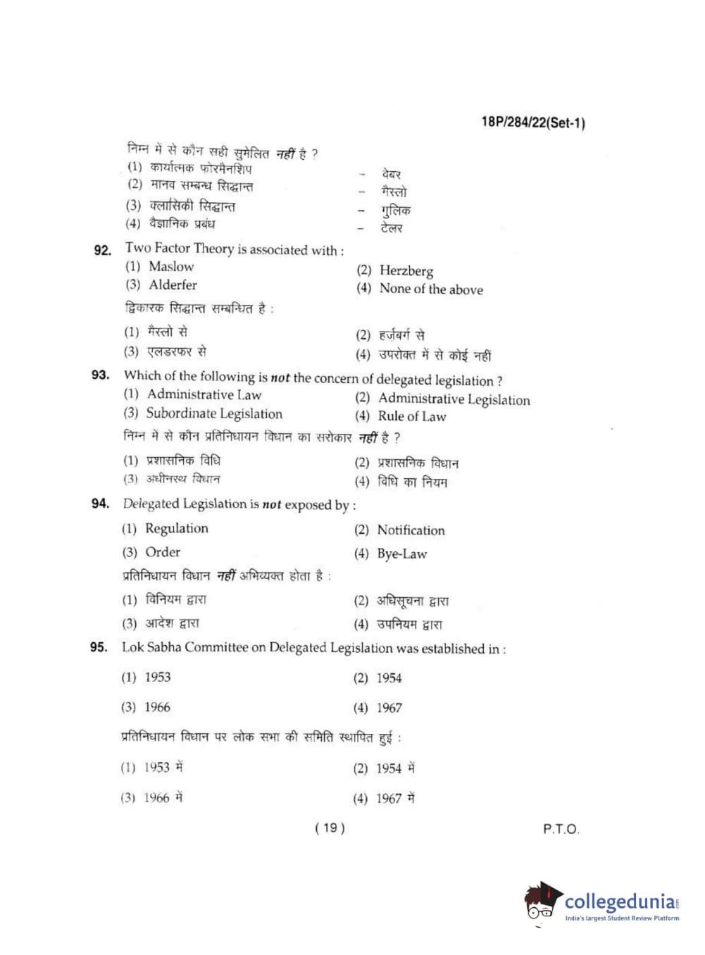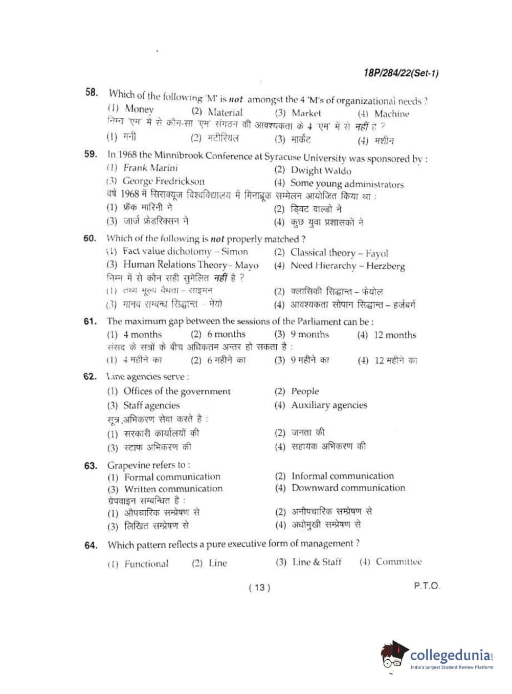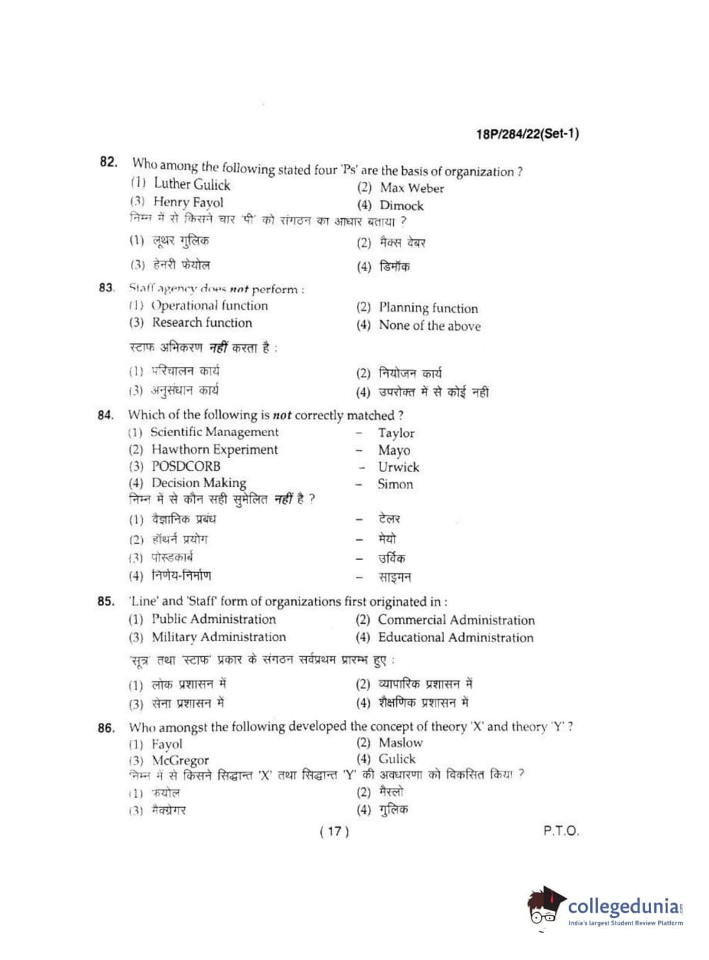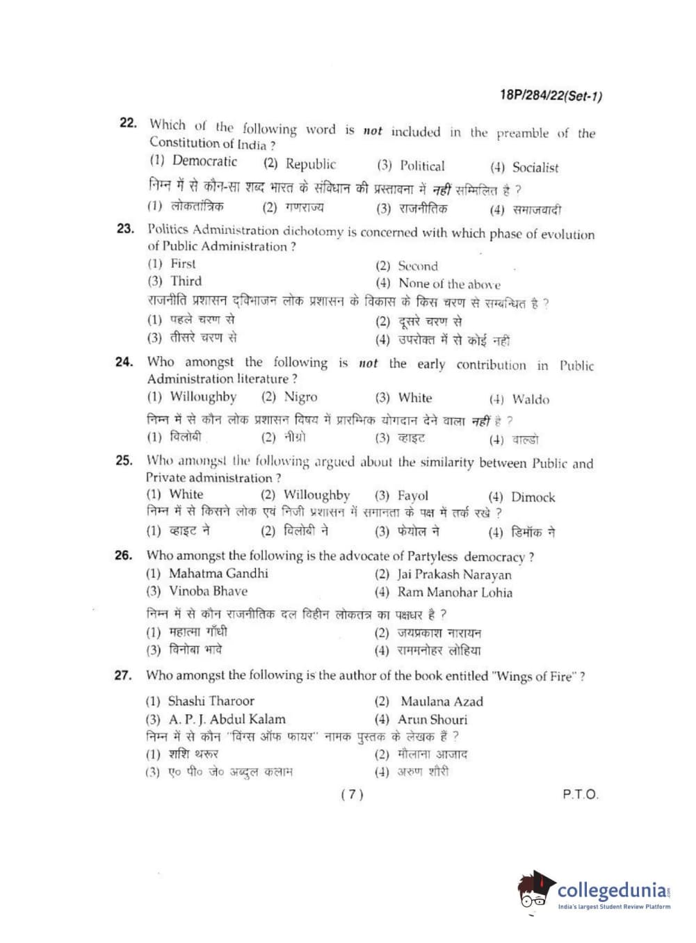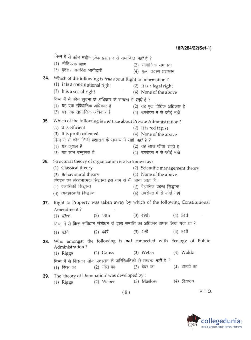 BHU PET 2018 M.A IN PUBLIC ADMINISTRATION Question Paper with Answer Key PDFs