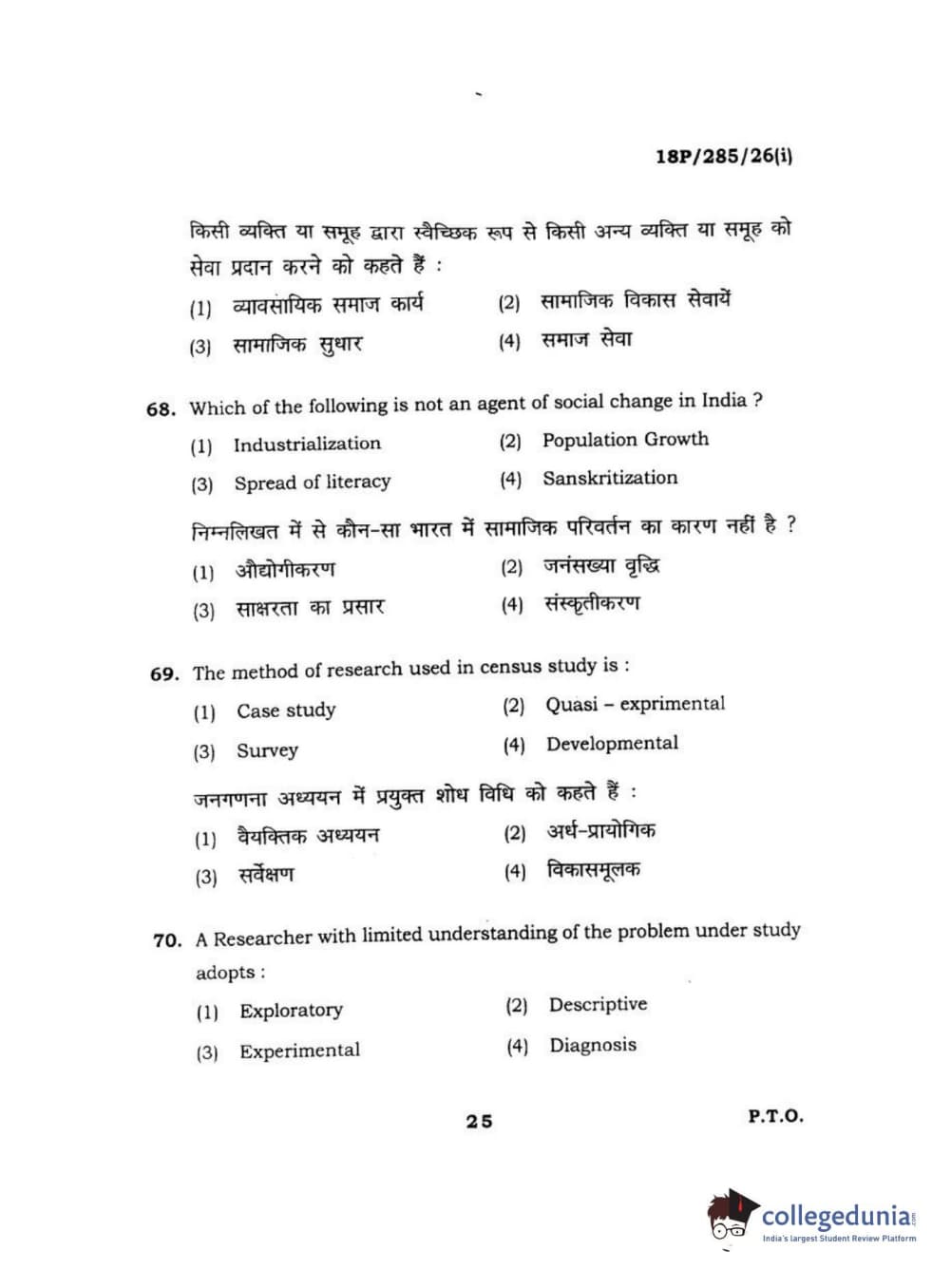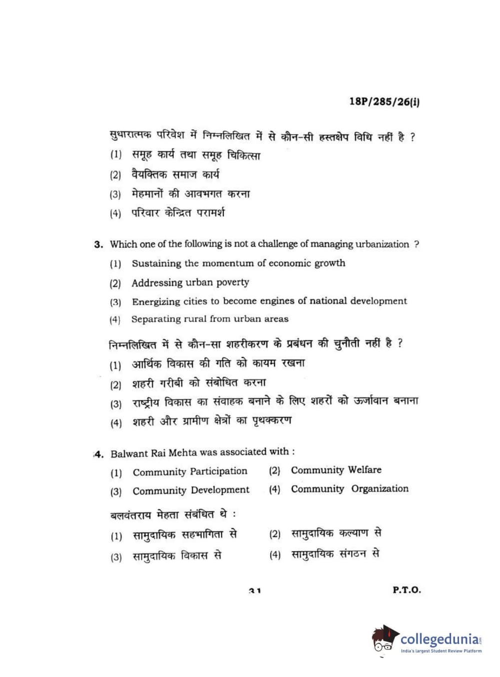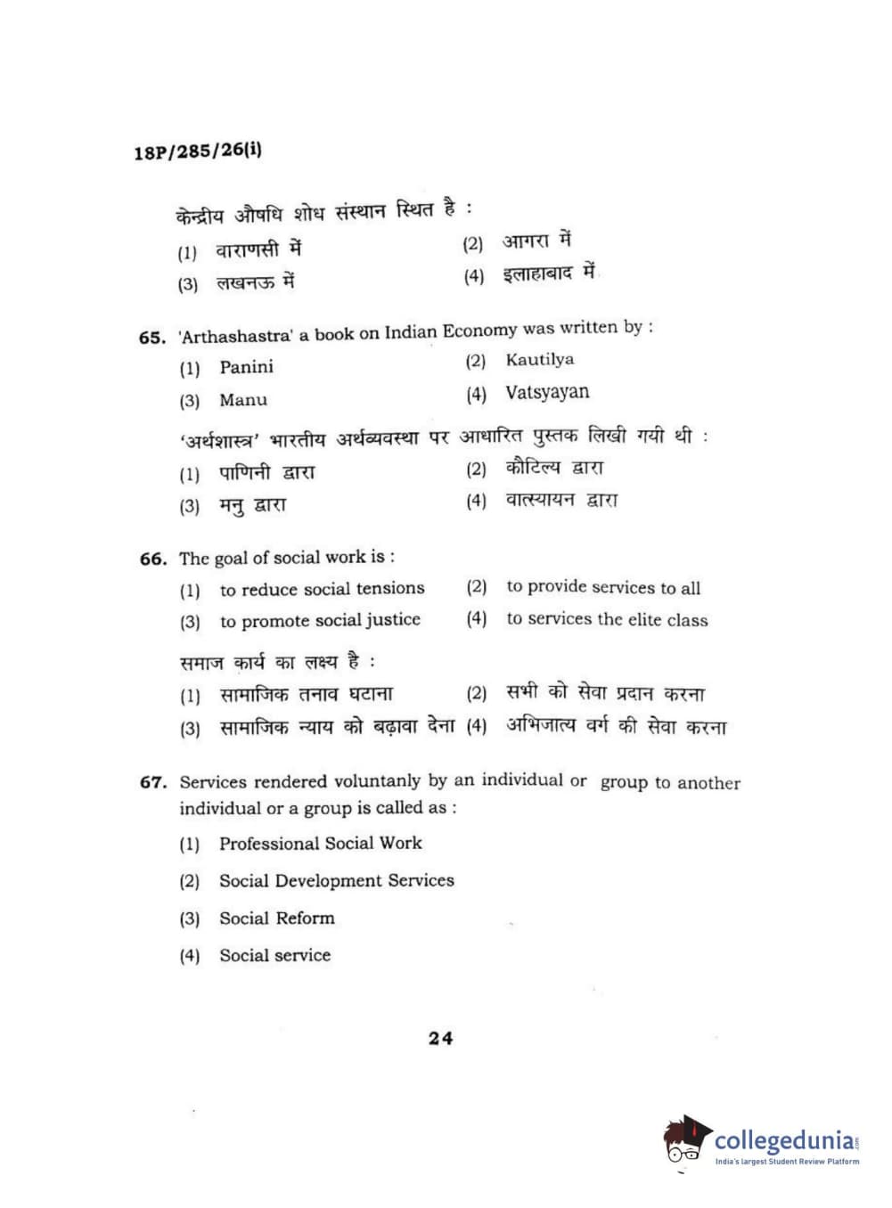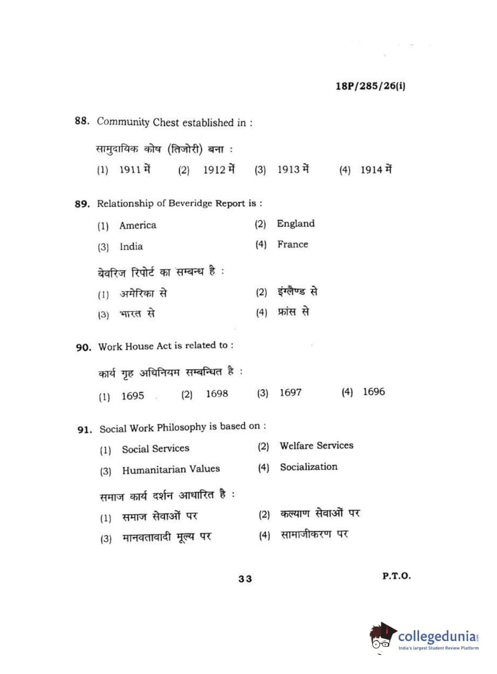 BHU PET 2018 MA IN SOCIAL WORK Question Paper with Answer Key PDF