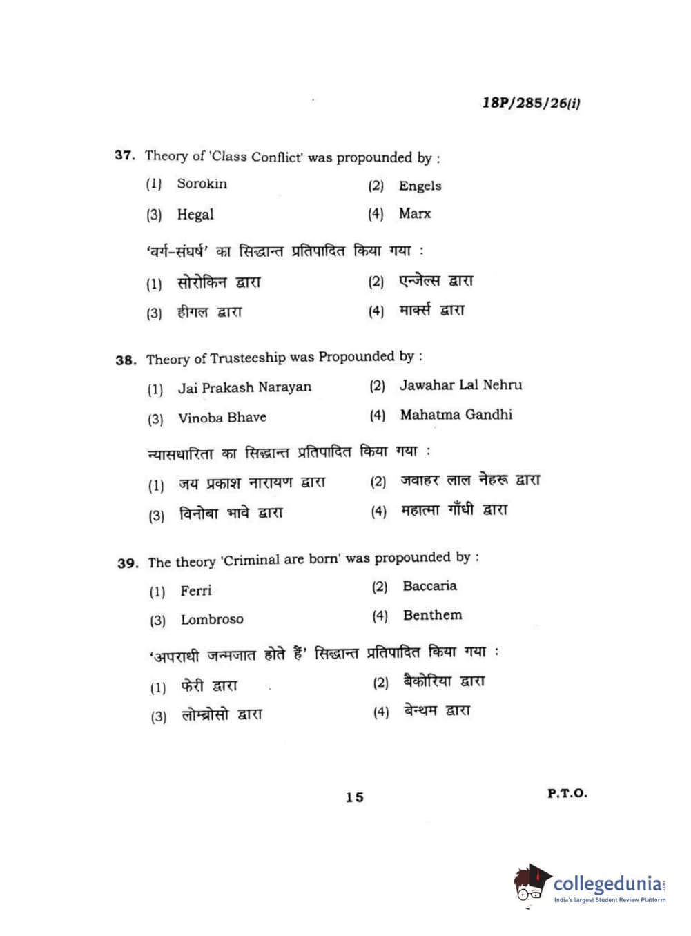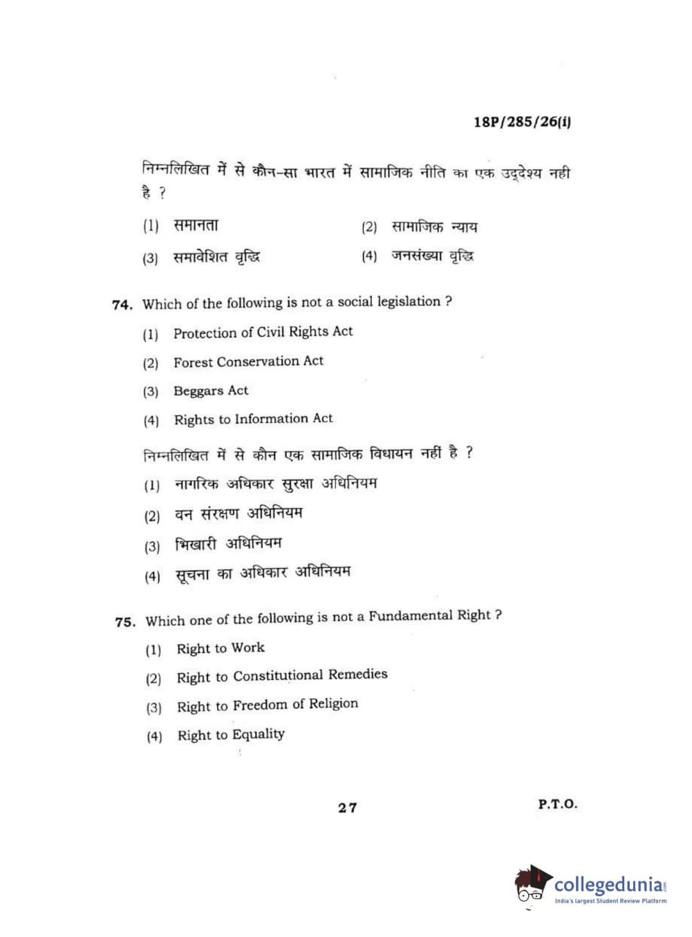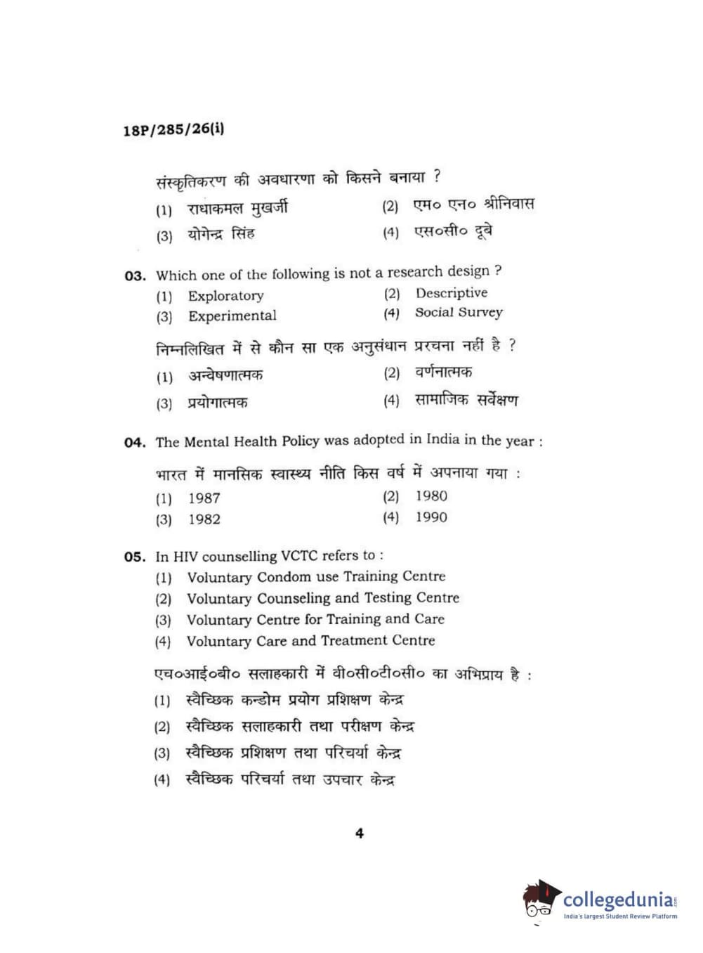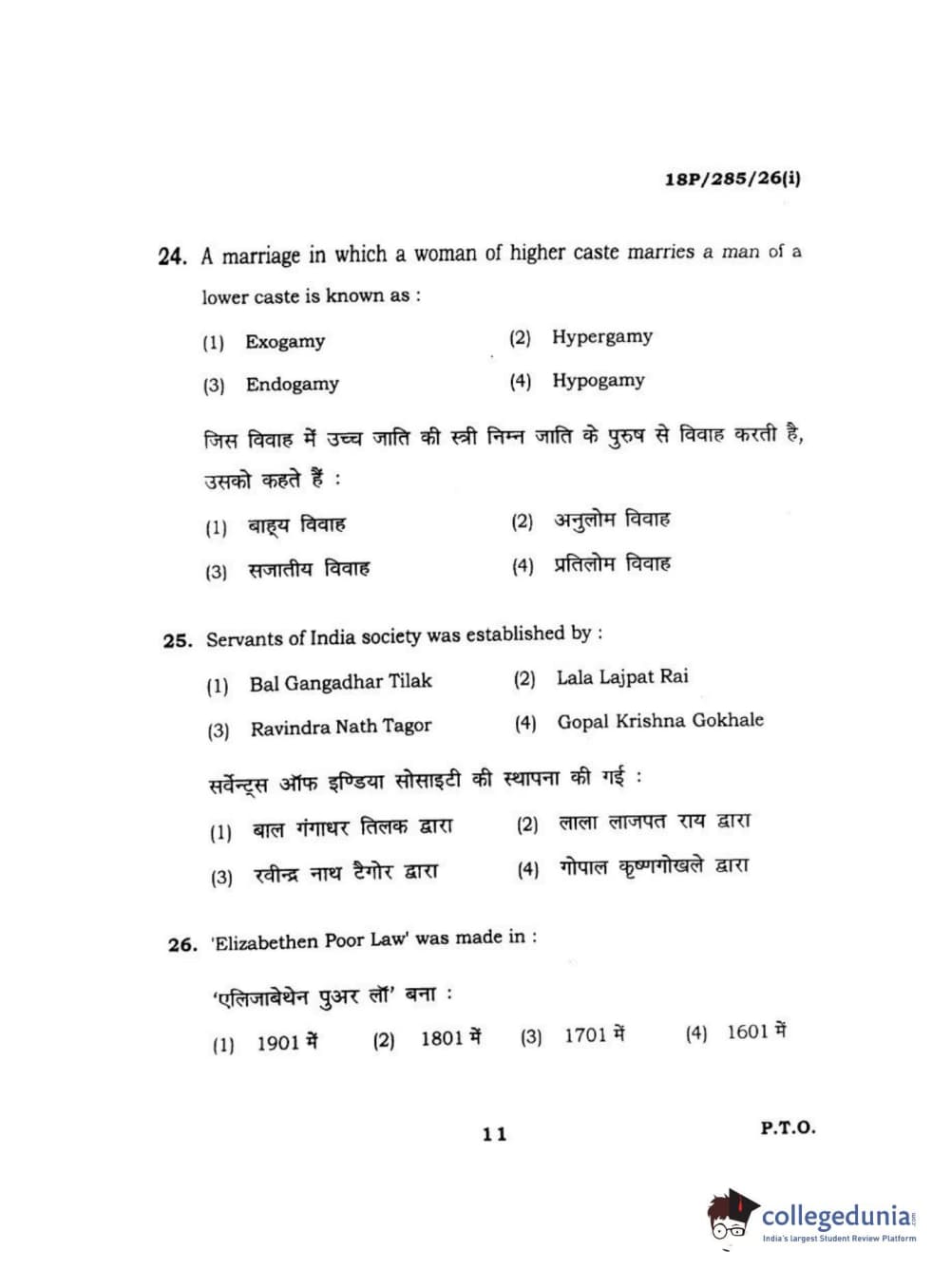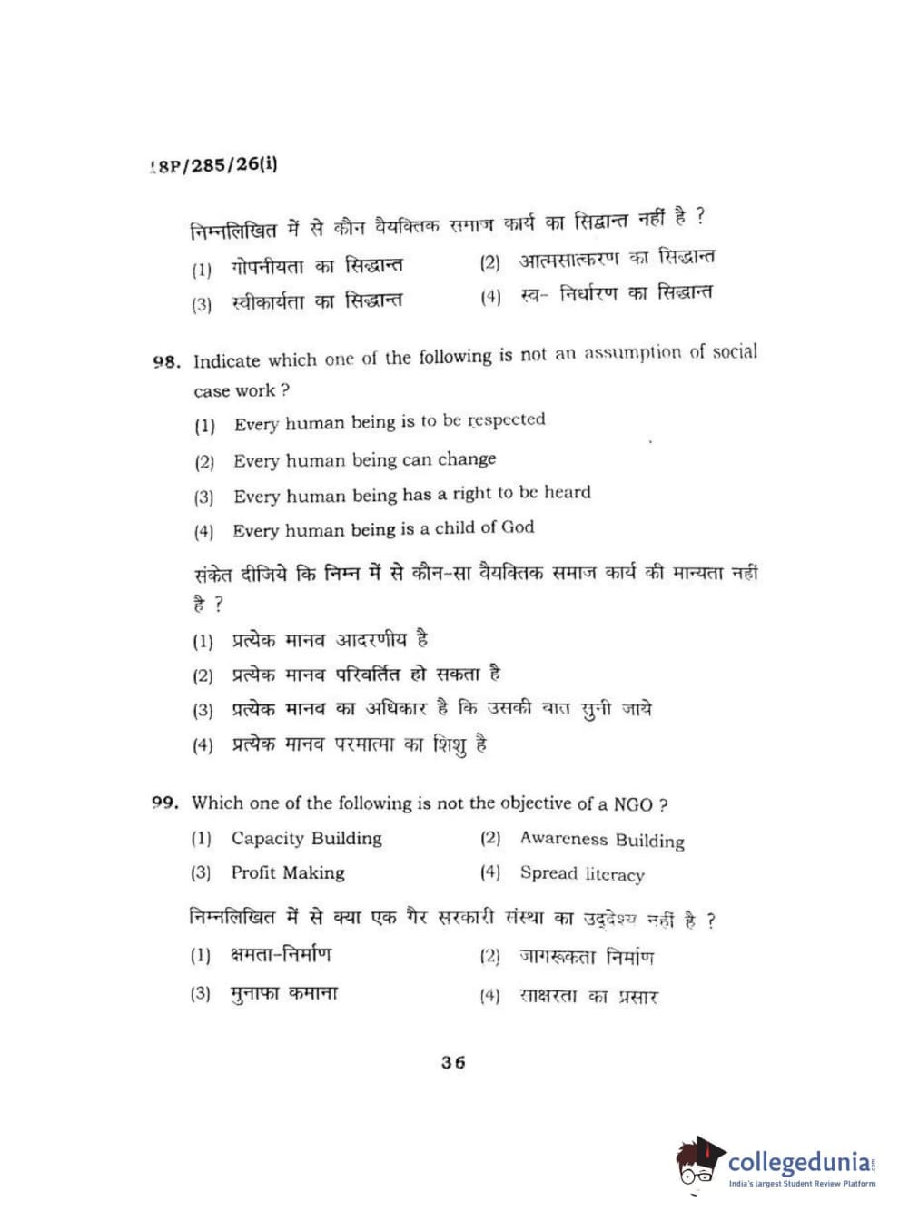 BHU PET 2018 MA IN SOCIAL WORK Question Paper with Answer Key PDF
