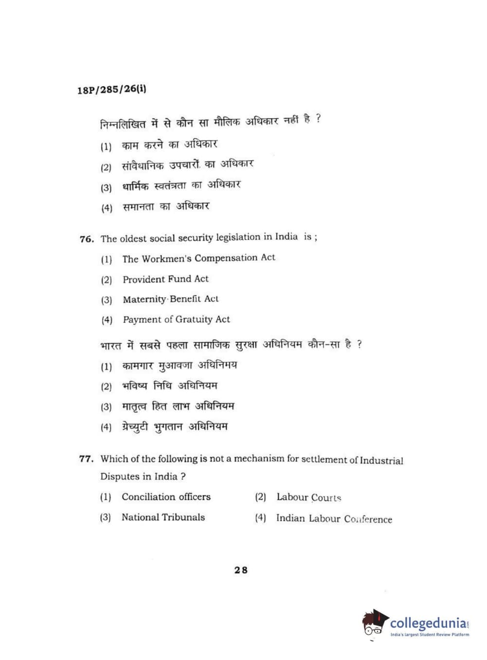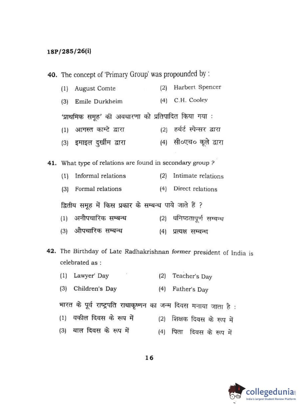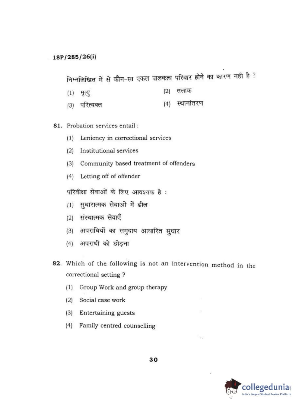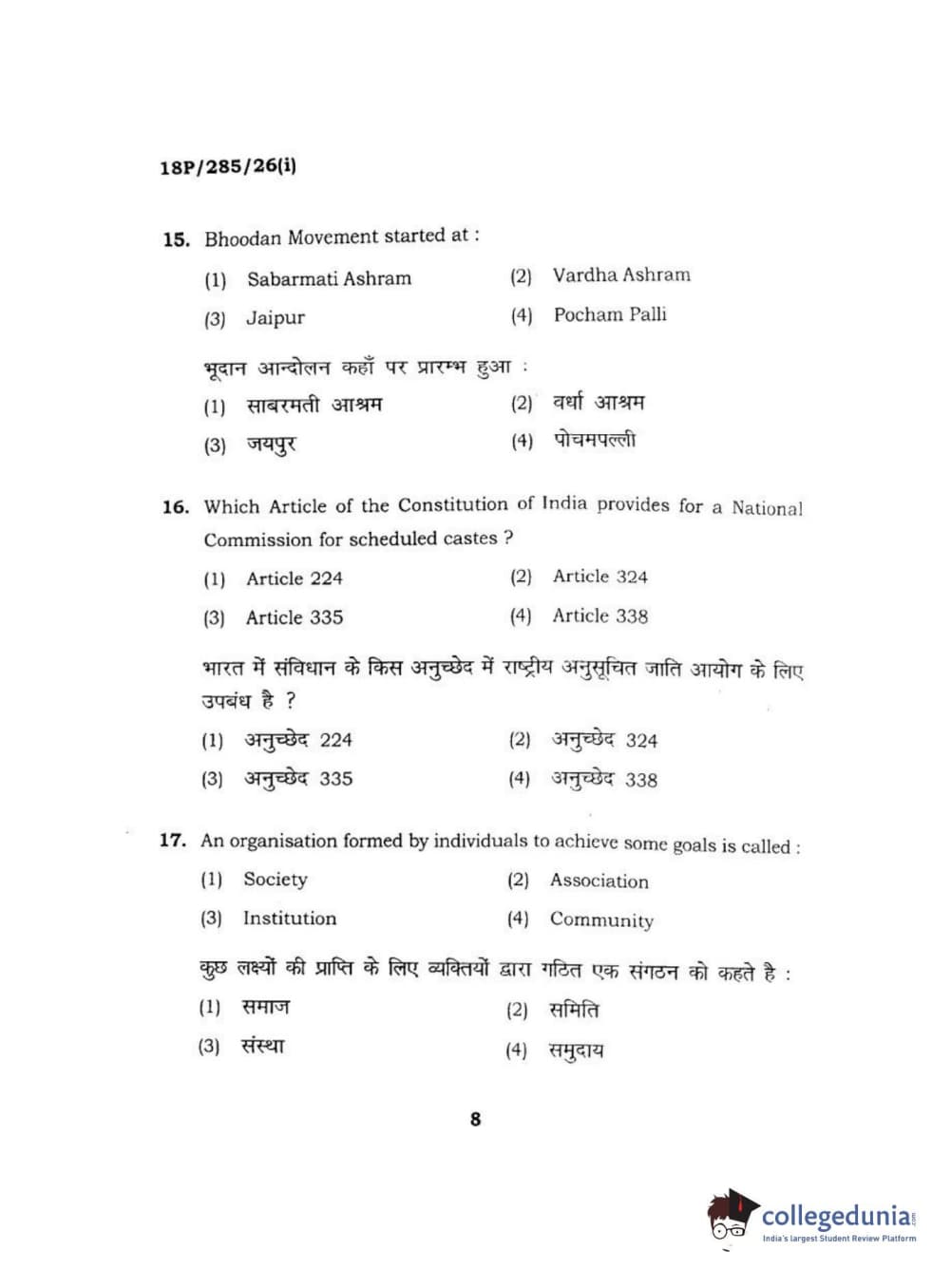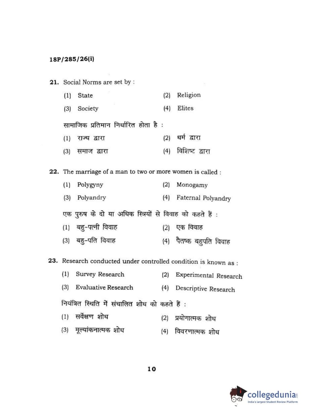 BHU PET 2018 MA IN SOCIAL WORK Question Paper with Answer Key PDF