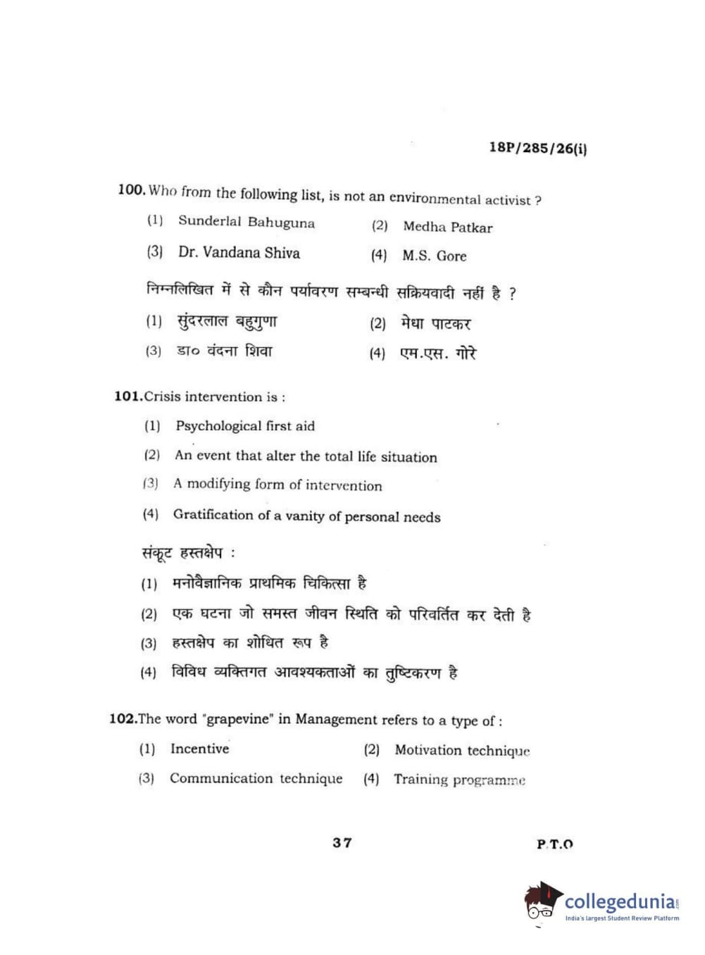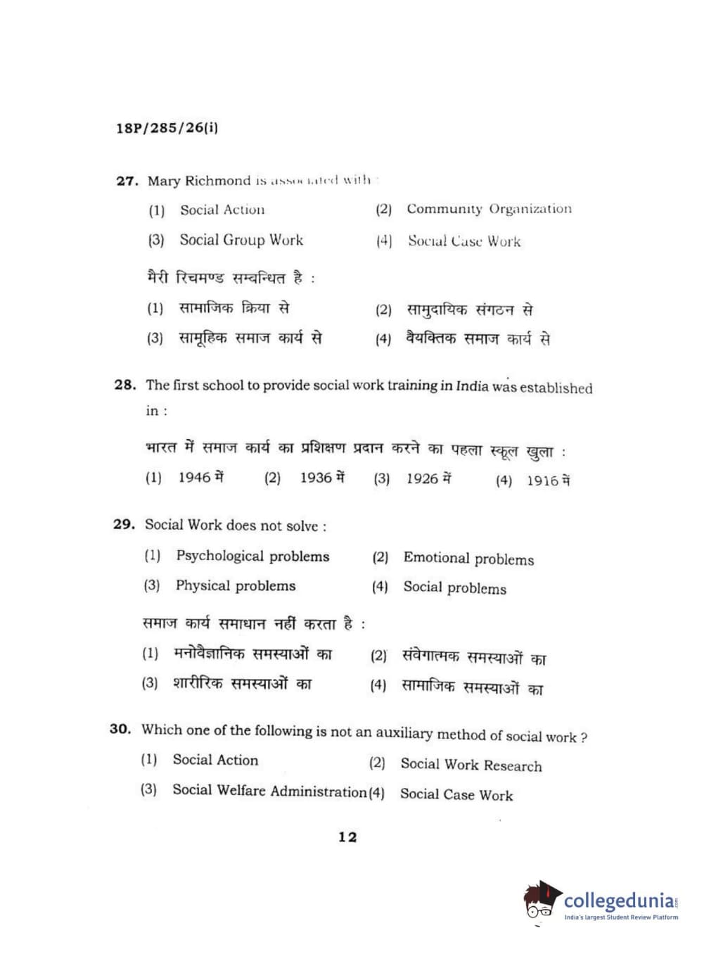 BHU PET 2018 MA IN SOCIAL WORK Question paper with answer key pdf is available for download. The exam was successfully organized by Banaras Hindu University (BHU). The question paper comprised a total of 120 questions.
