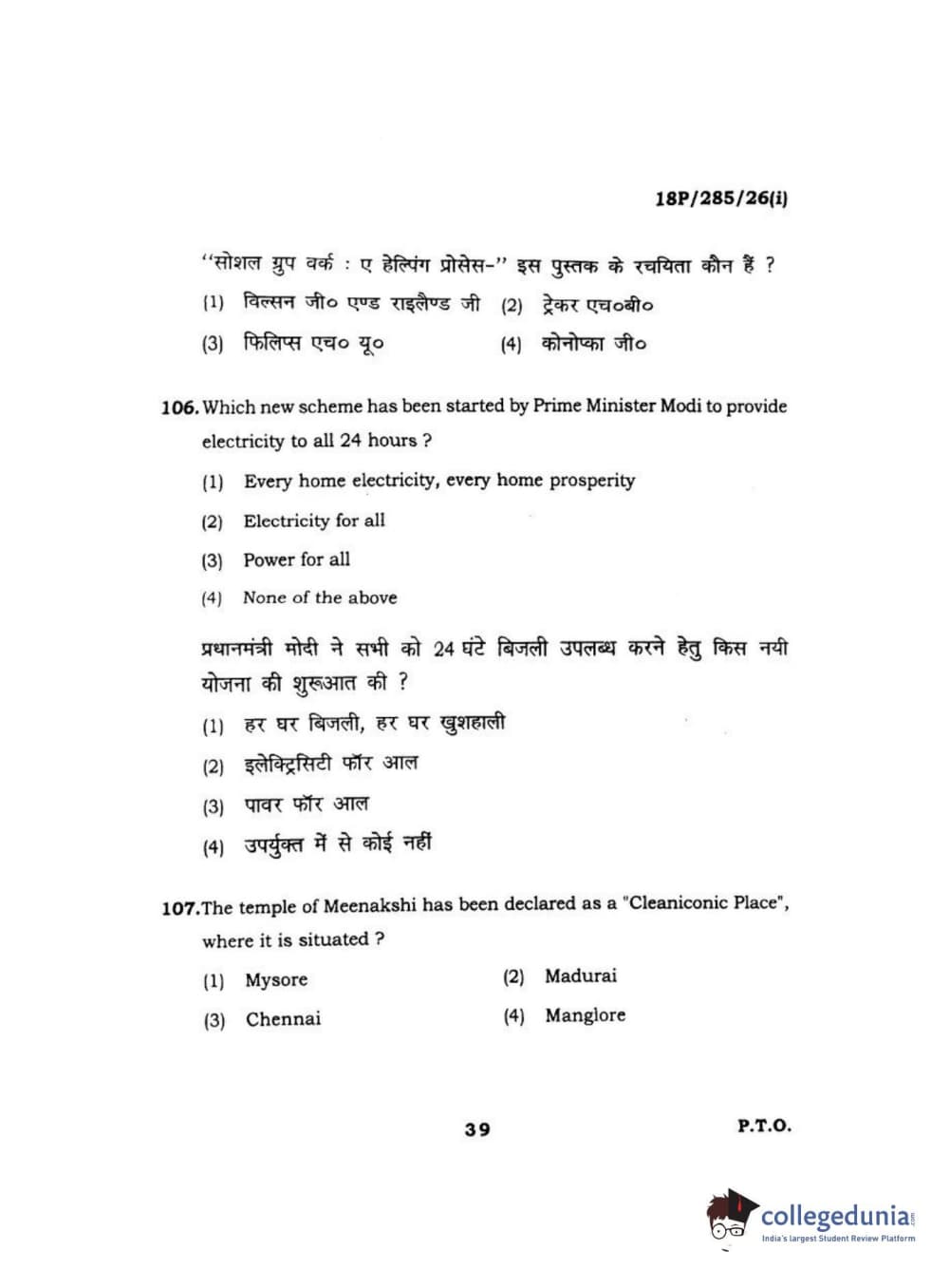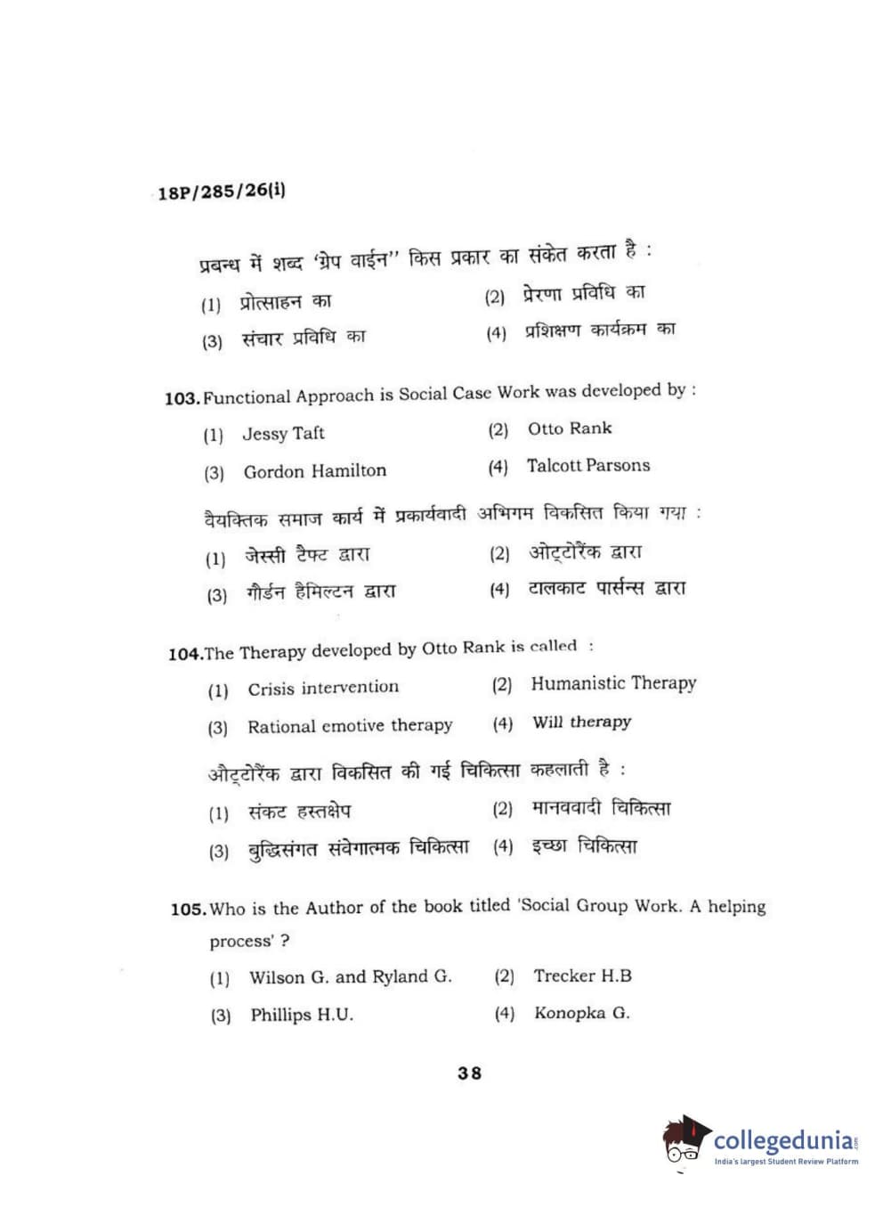 | BHU PET 2018 MA IN SOCIAL WORK Question Paper PDF | BHU PET 2018 MA IN SOCIAL WORK Answer Key PDF |