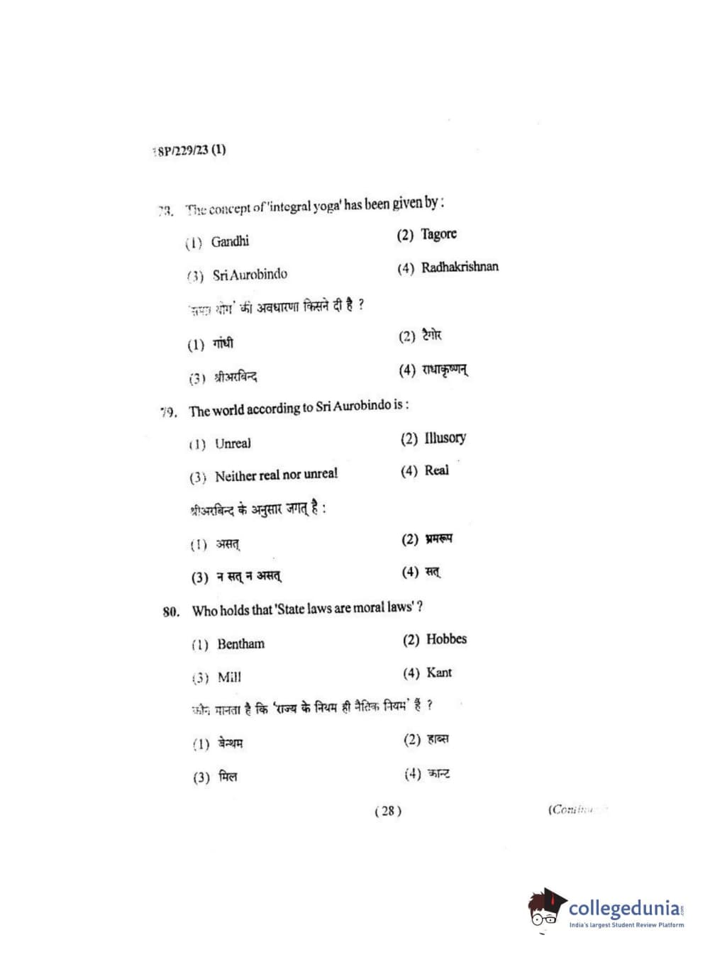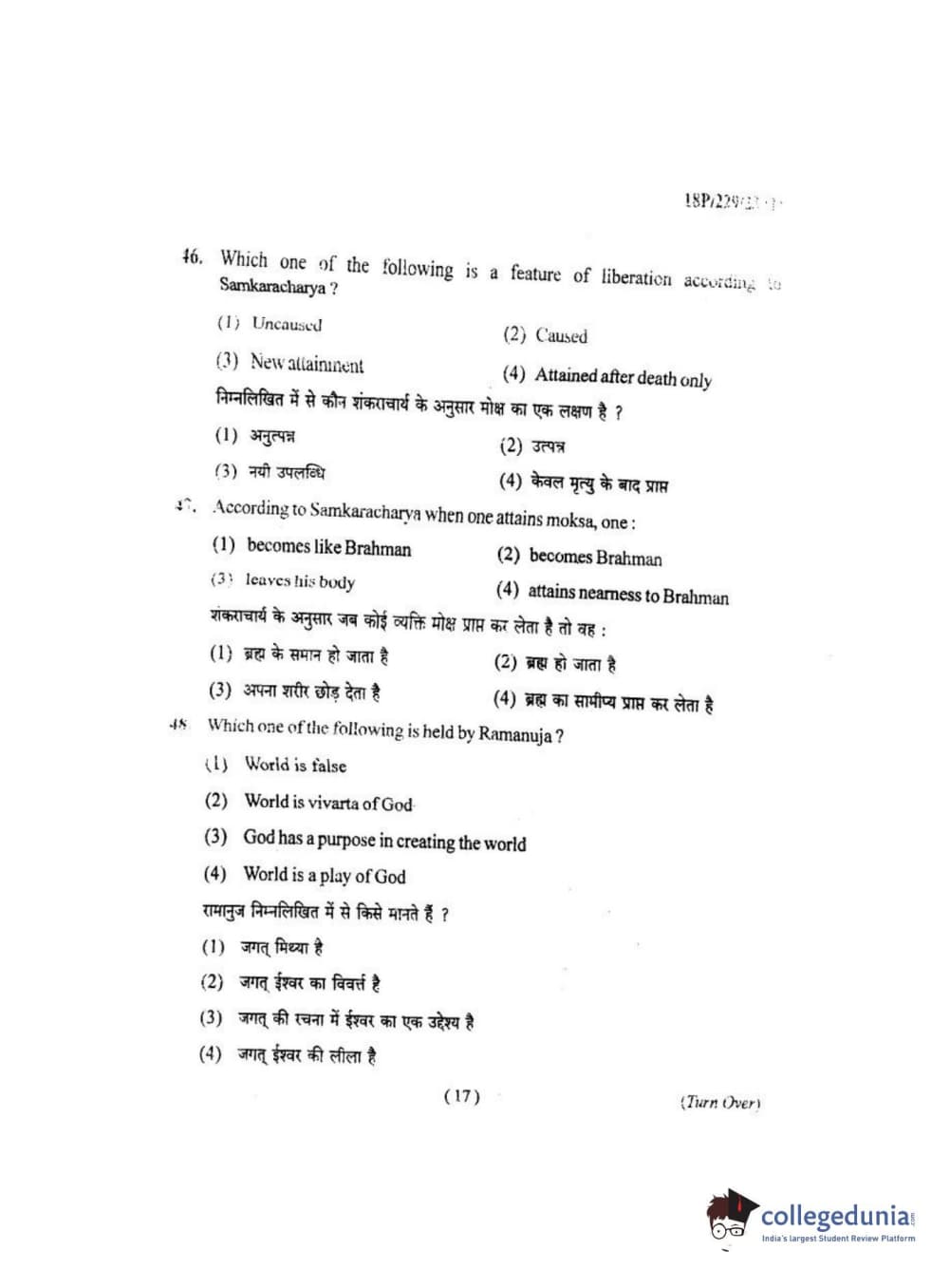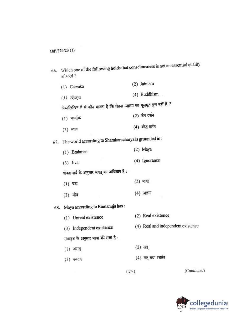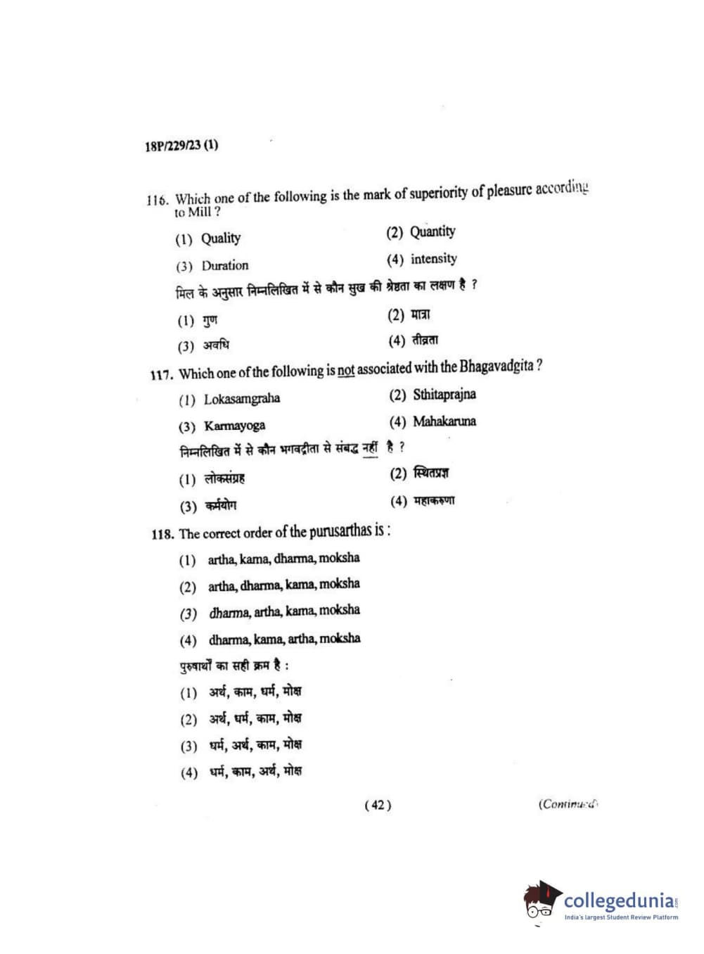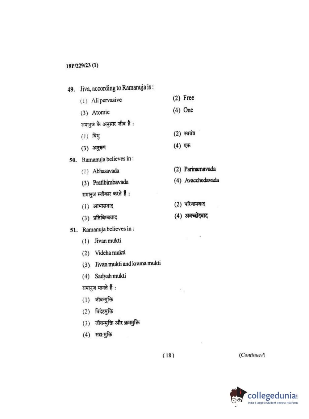 BHU PET 2018 MA. I.P.R Question Paper with Answer Key PDF
