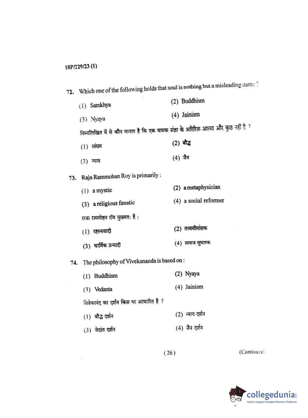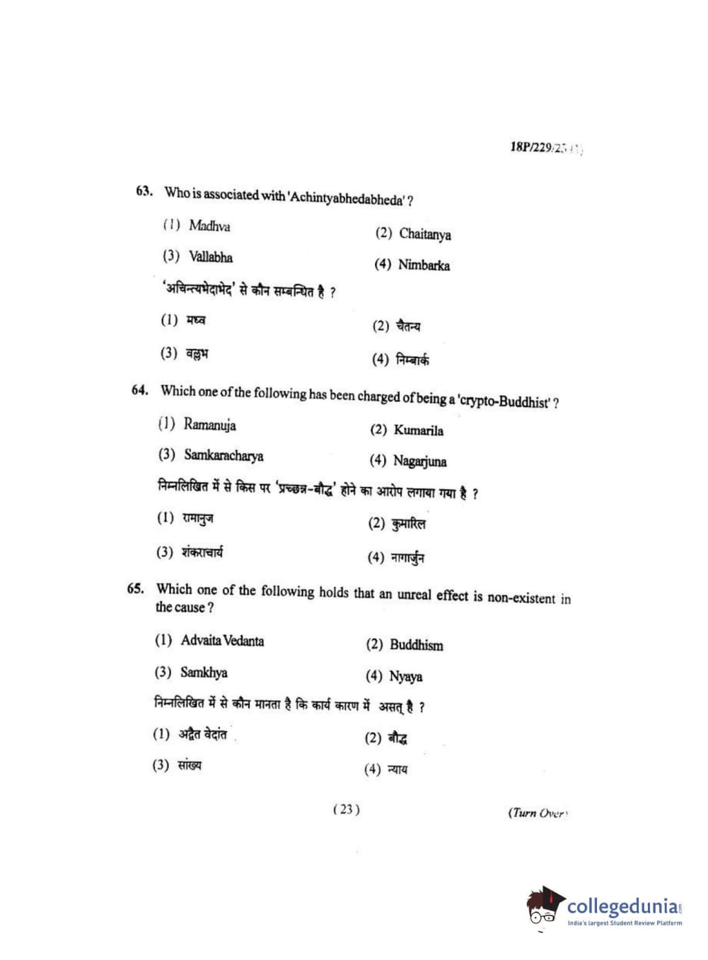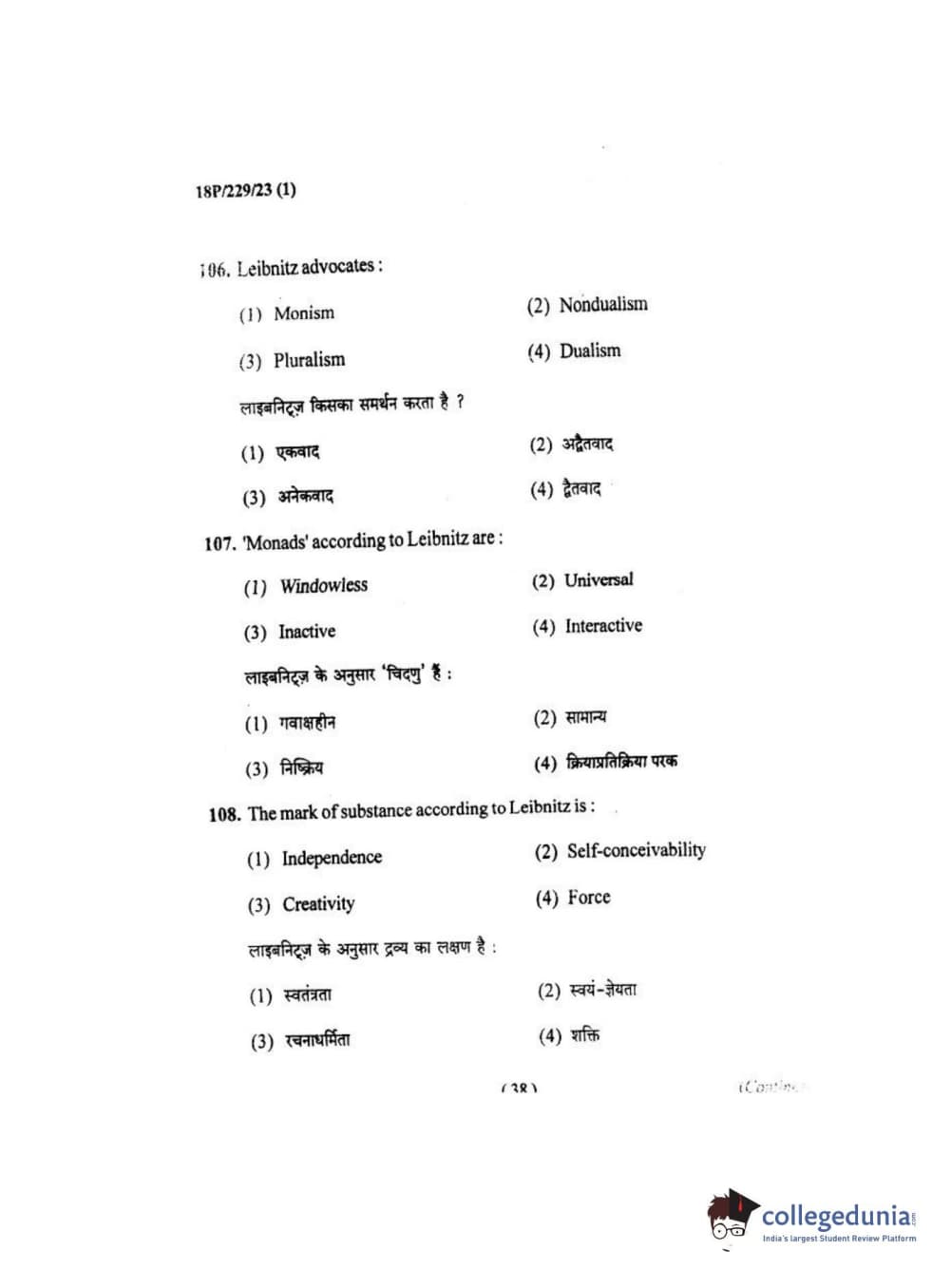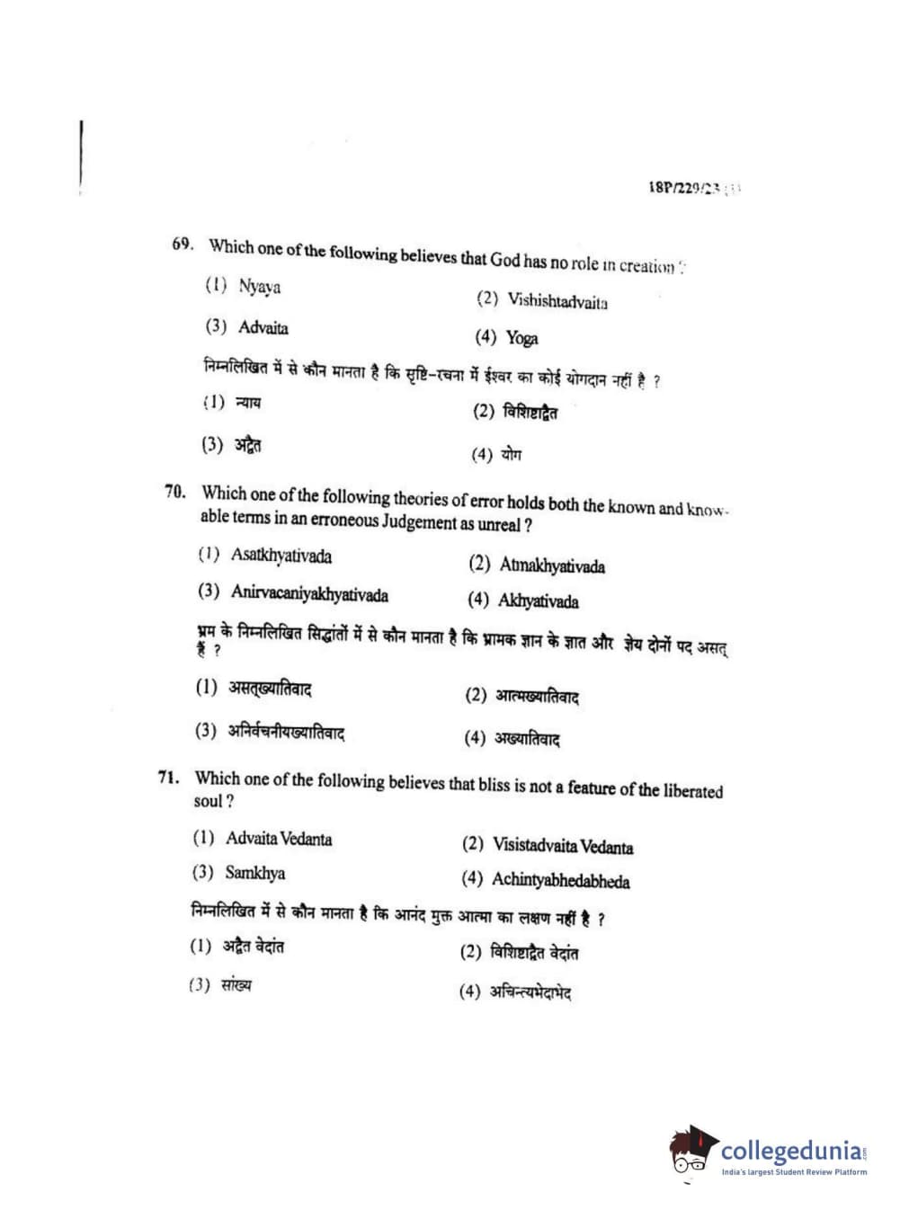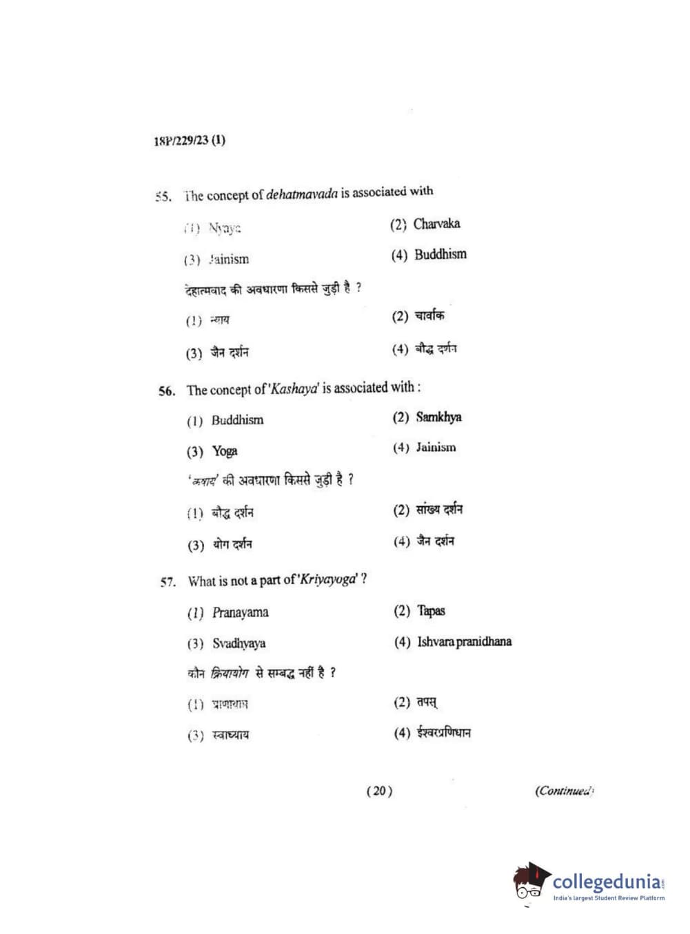 BHU PET 2018 MA. I.P.R Question Paper with Answer Key PDF