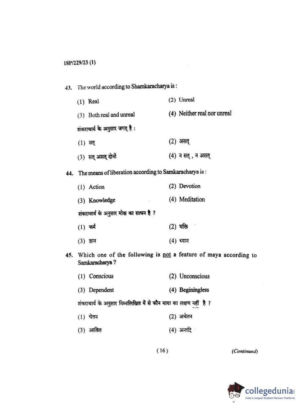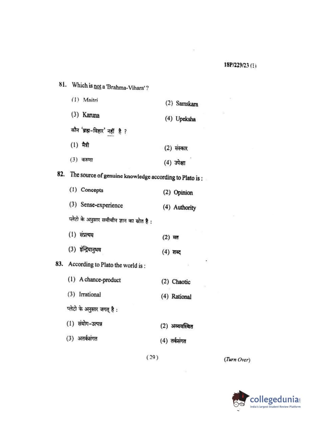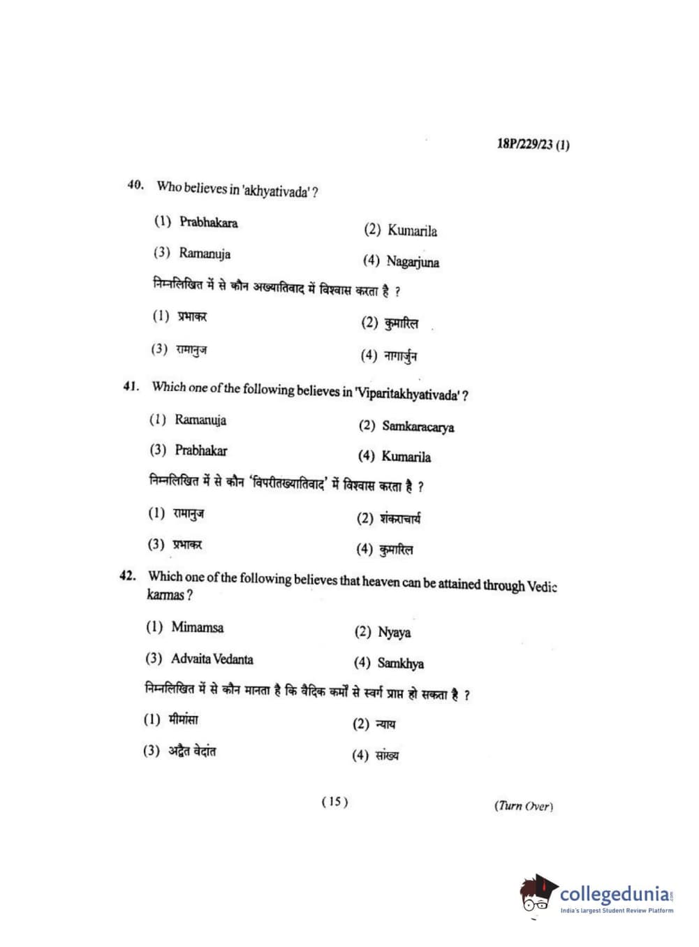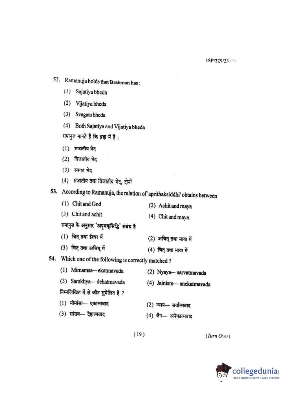 BHU PET 2018 MA. I.P.R Question Paper with Answer Key PDF