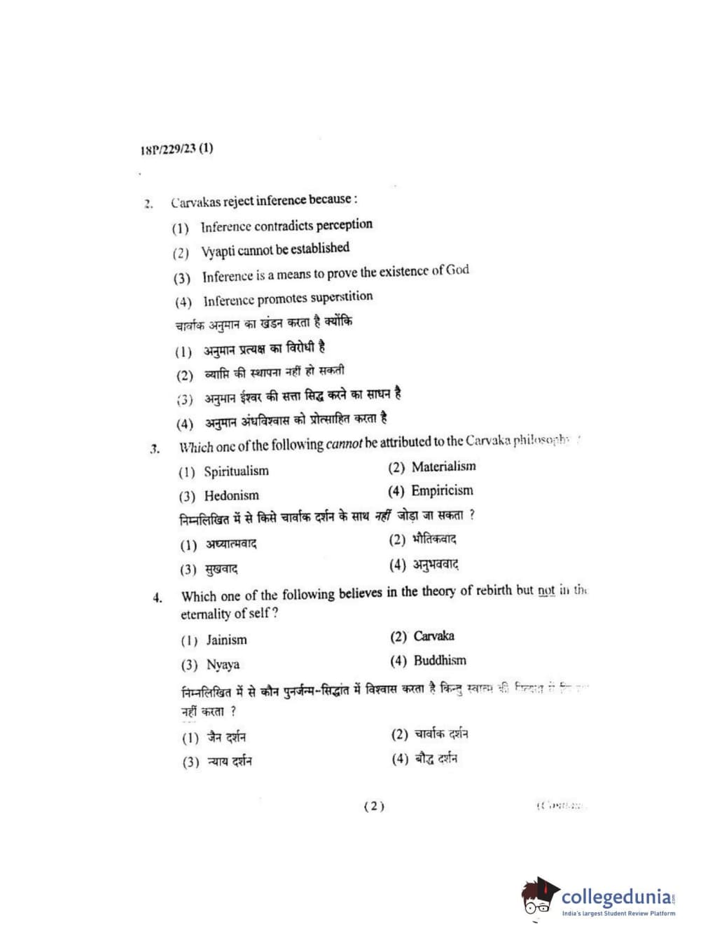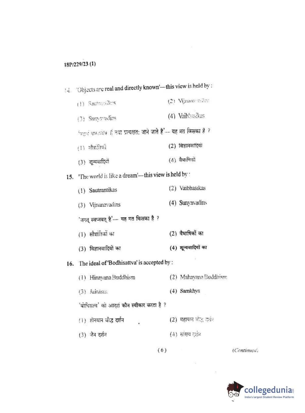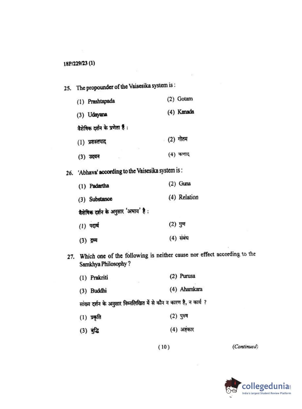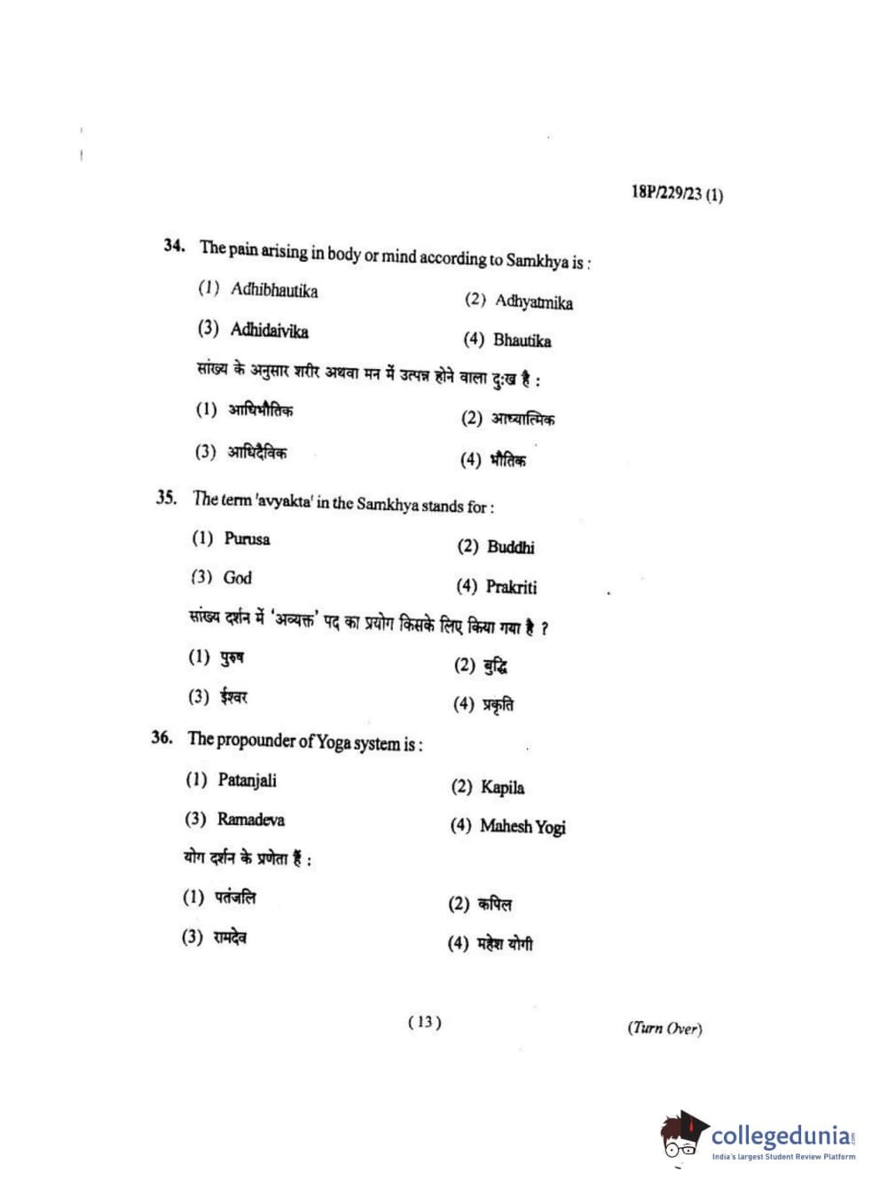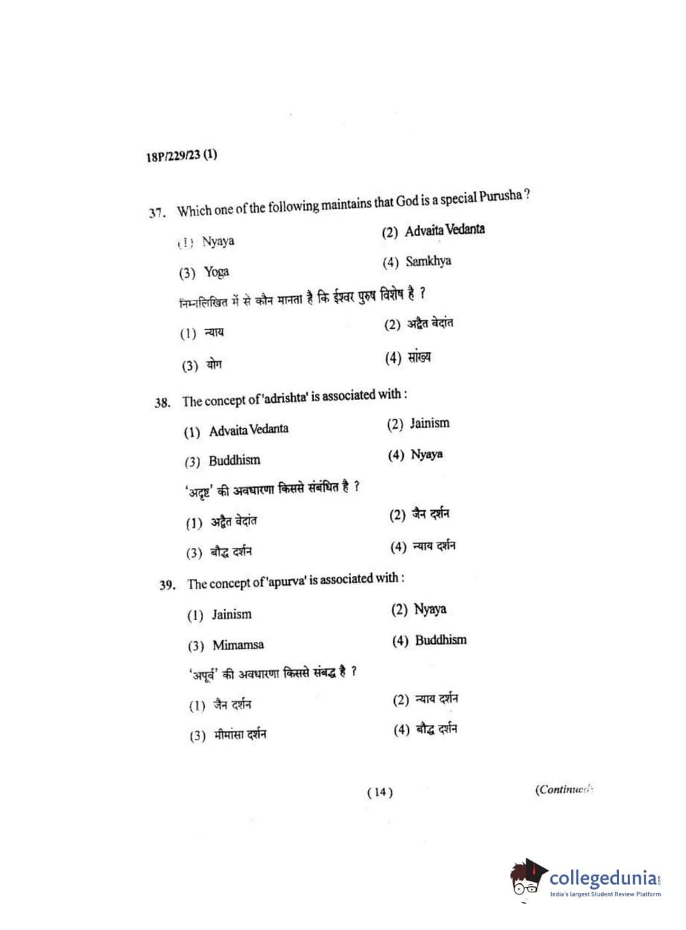 BHU PET 2018 MA. I.P.R Question Paper with Answer Key PDF