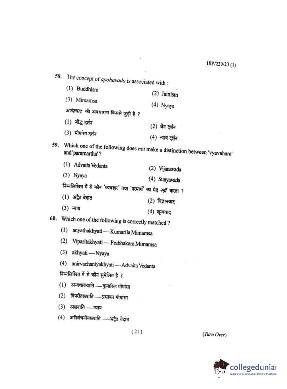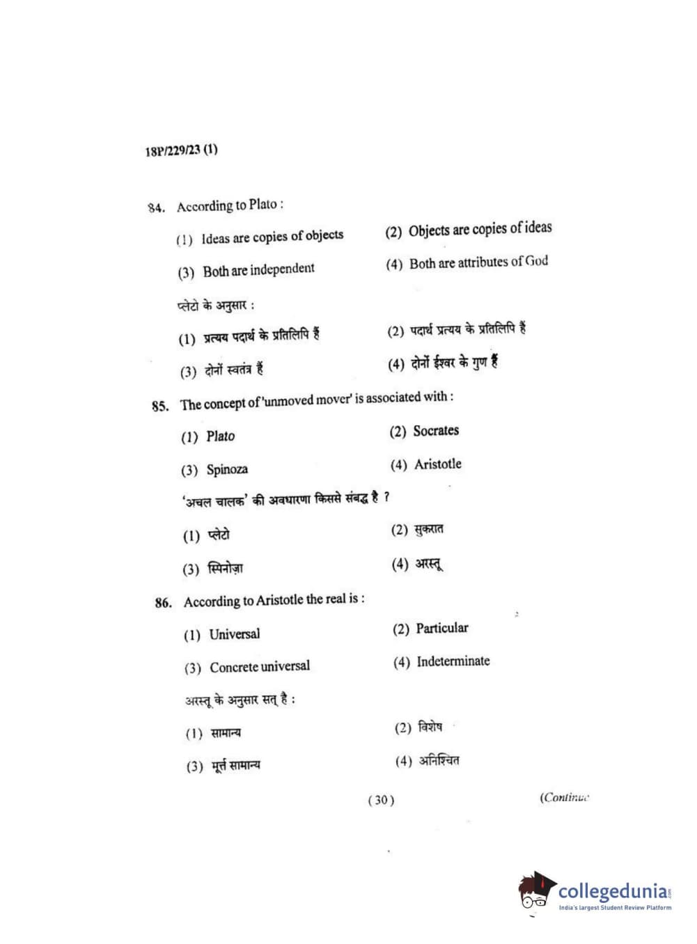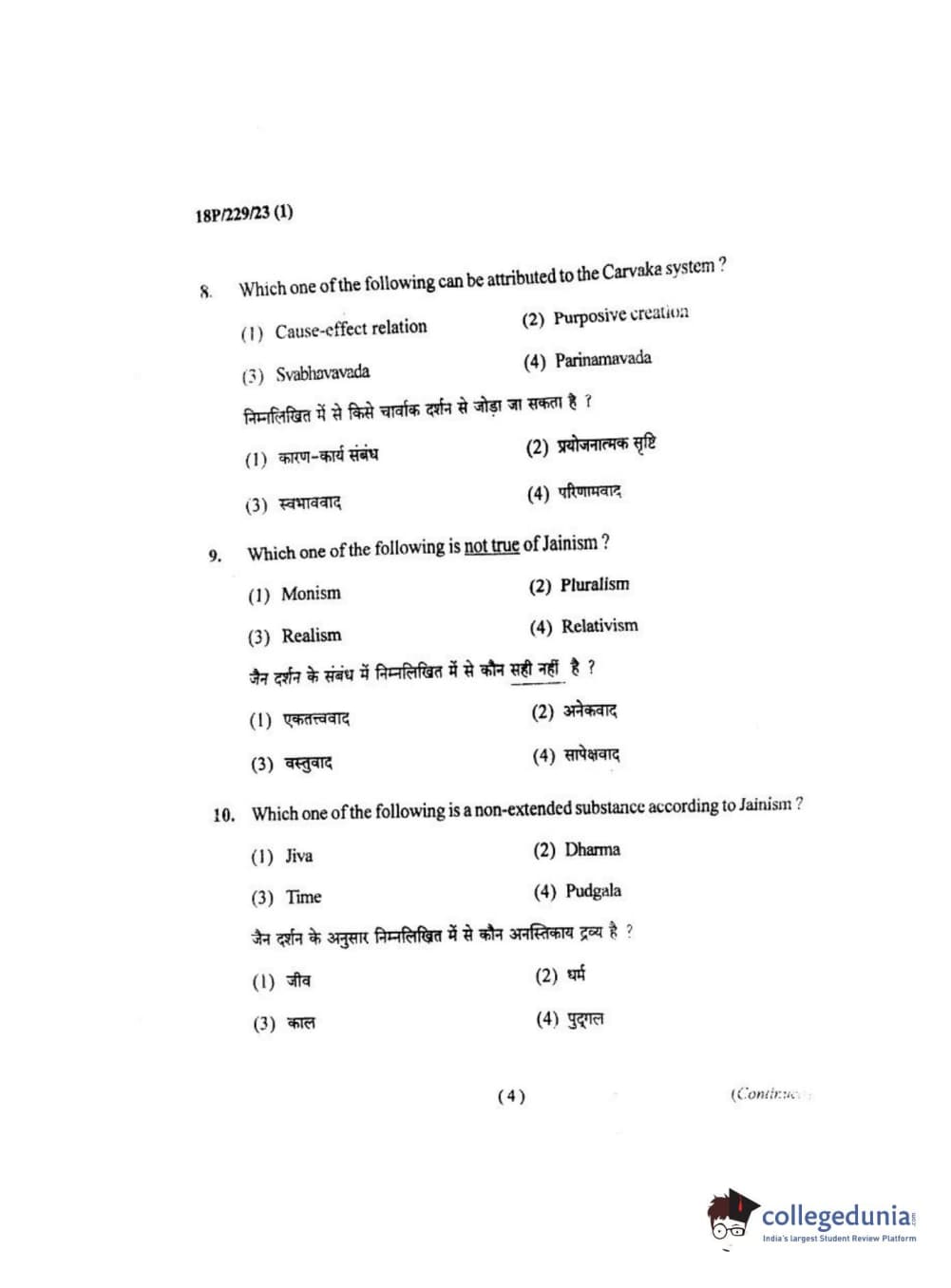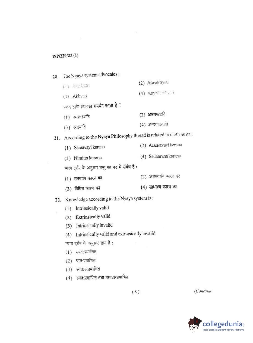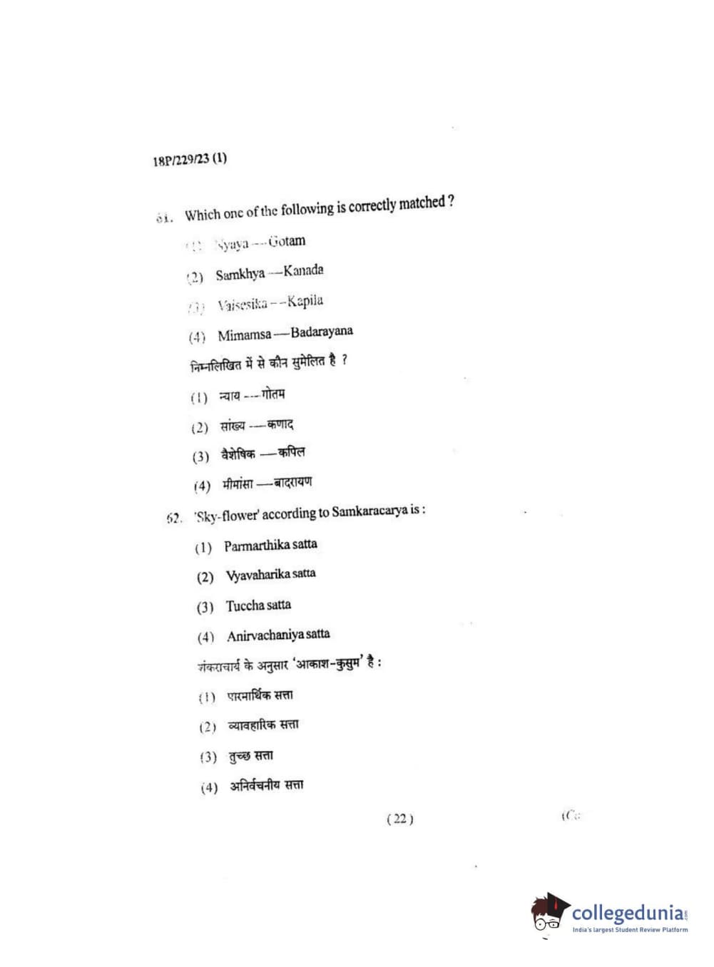 BHU PET 2018 MA. I.P.R Question Paper with Answer Key PDF