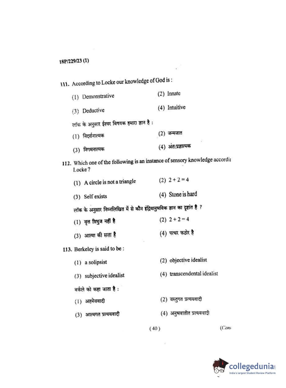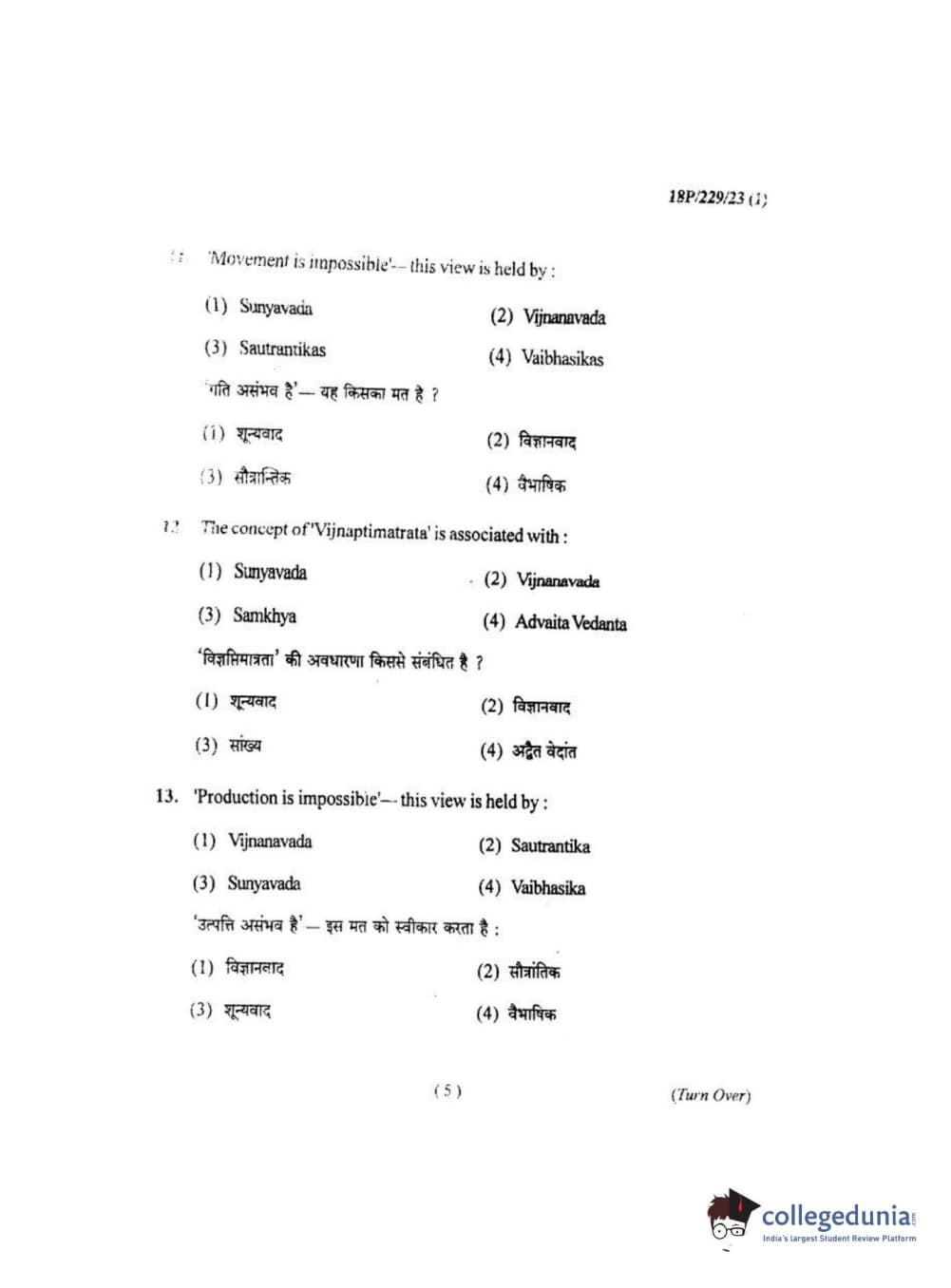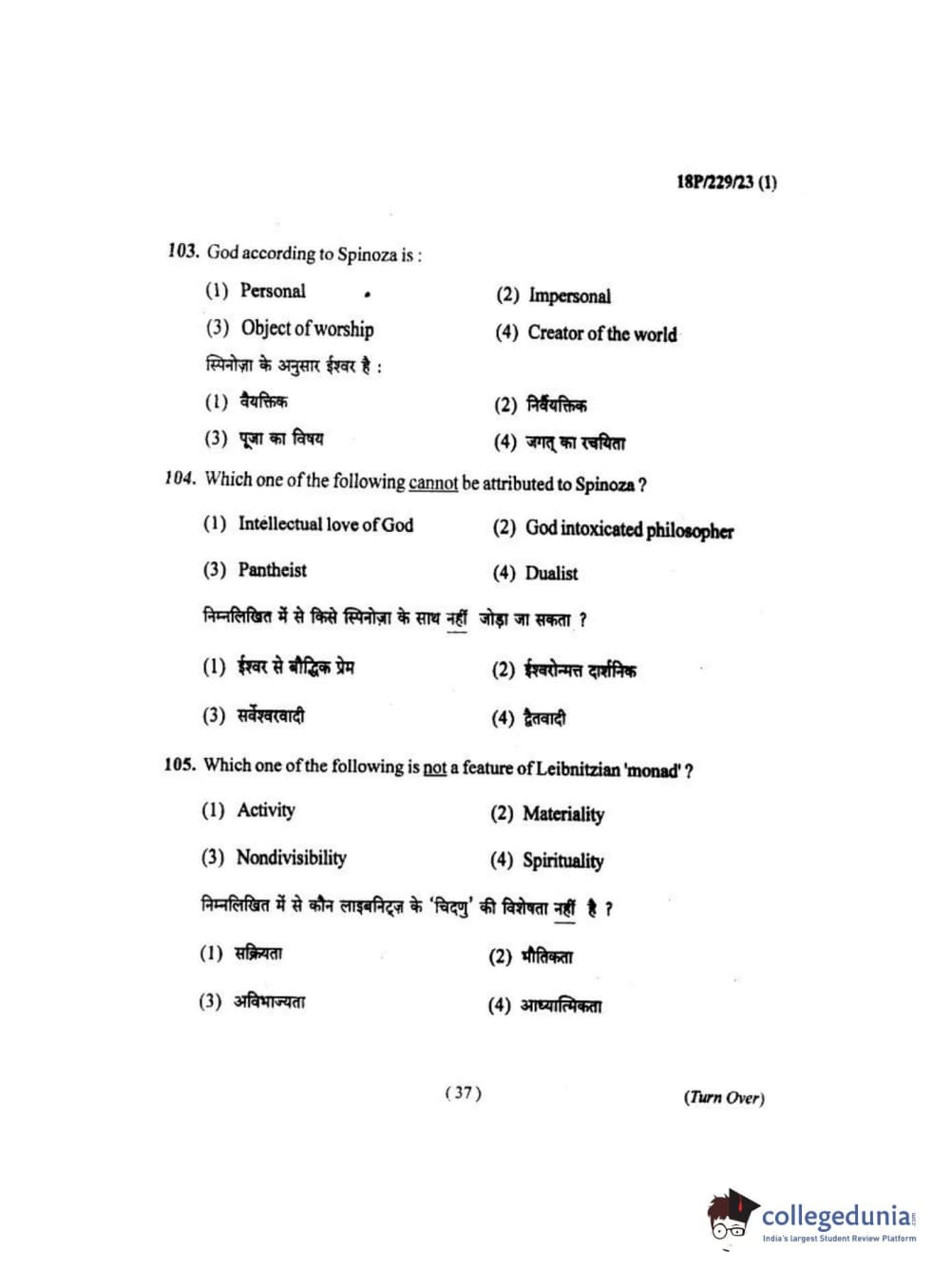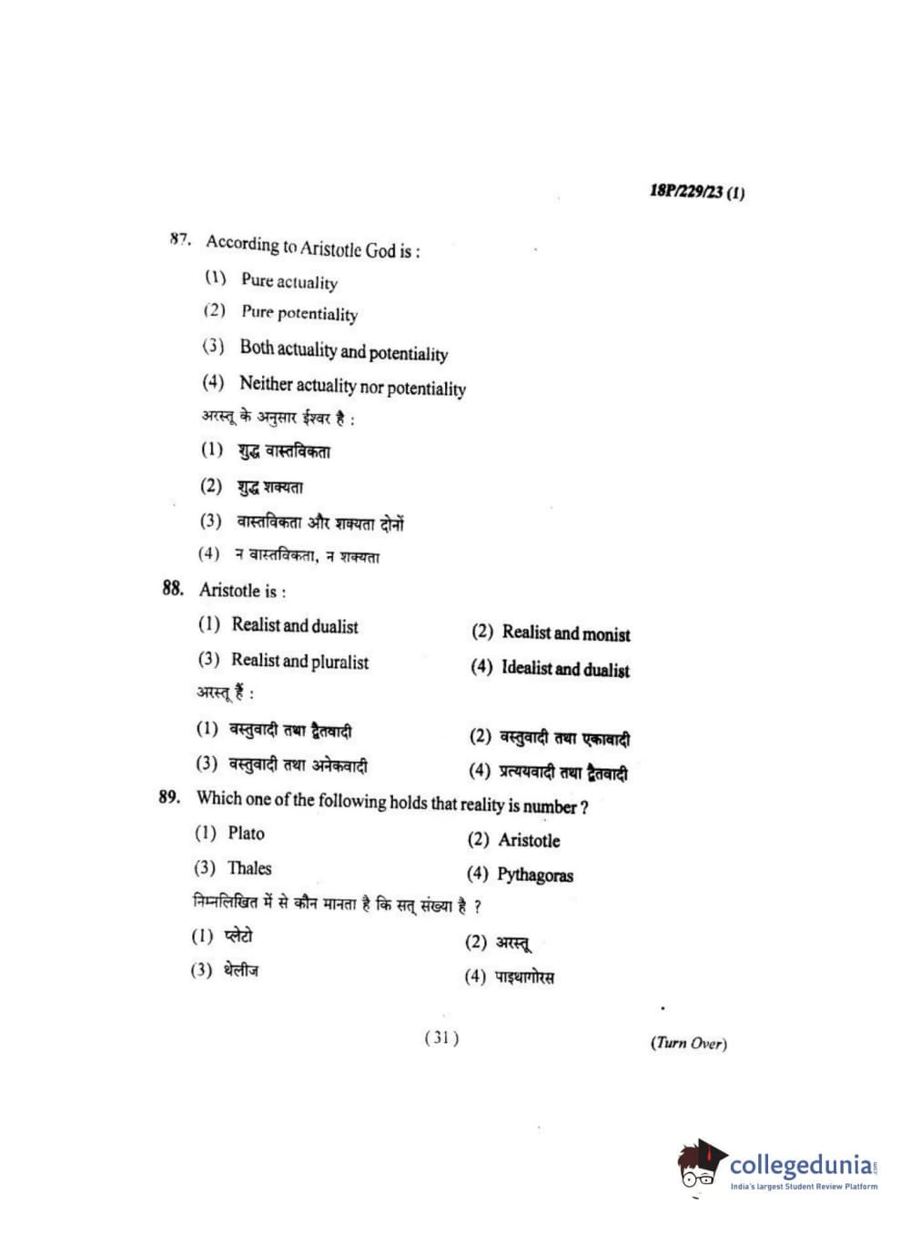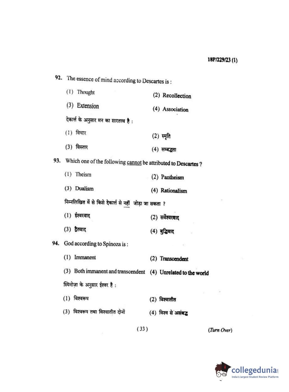 BHU PET 2018 MA. I.P.R Question Paper with Answer Key PDF