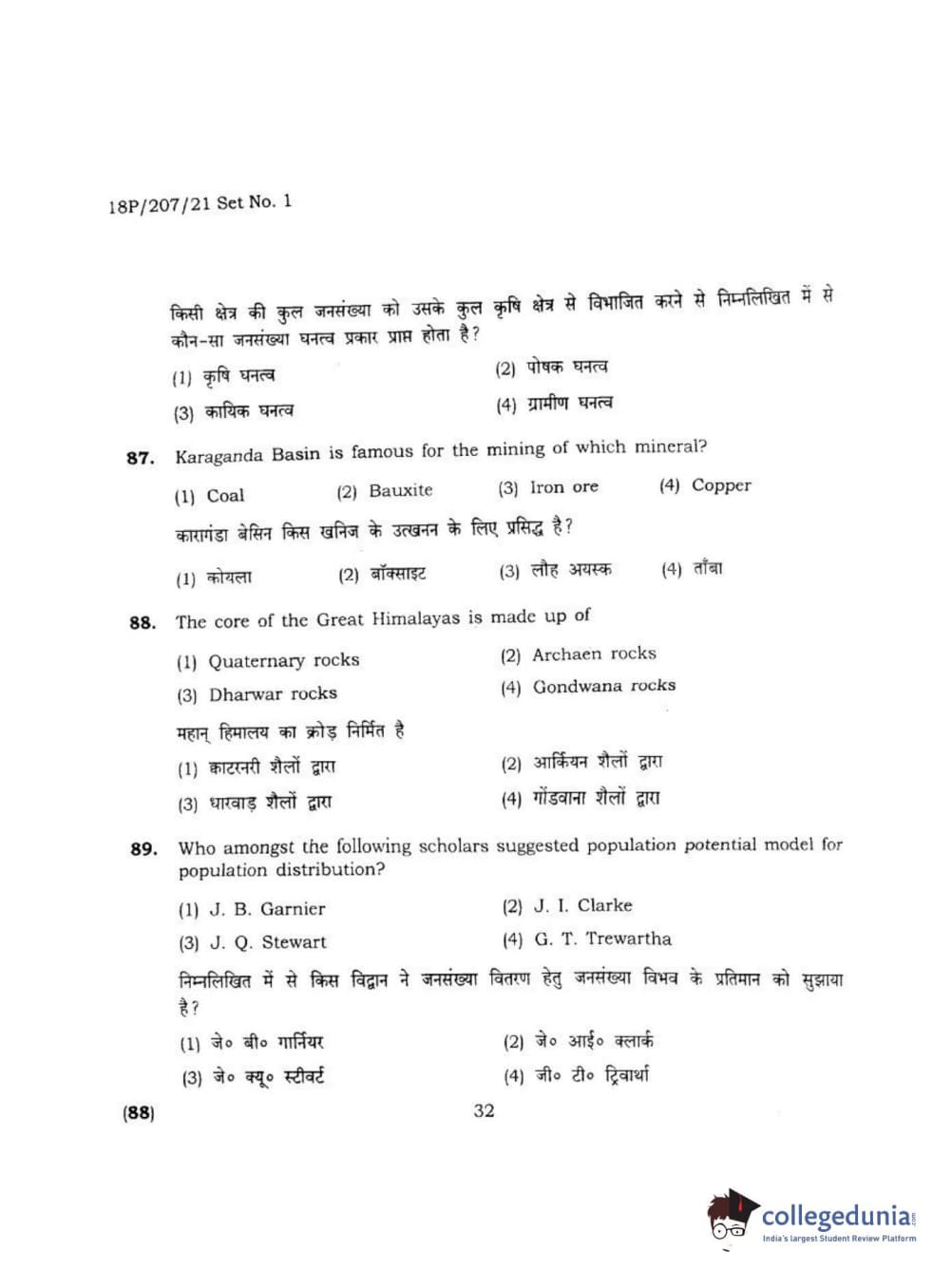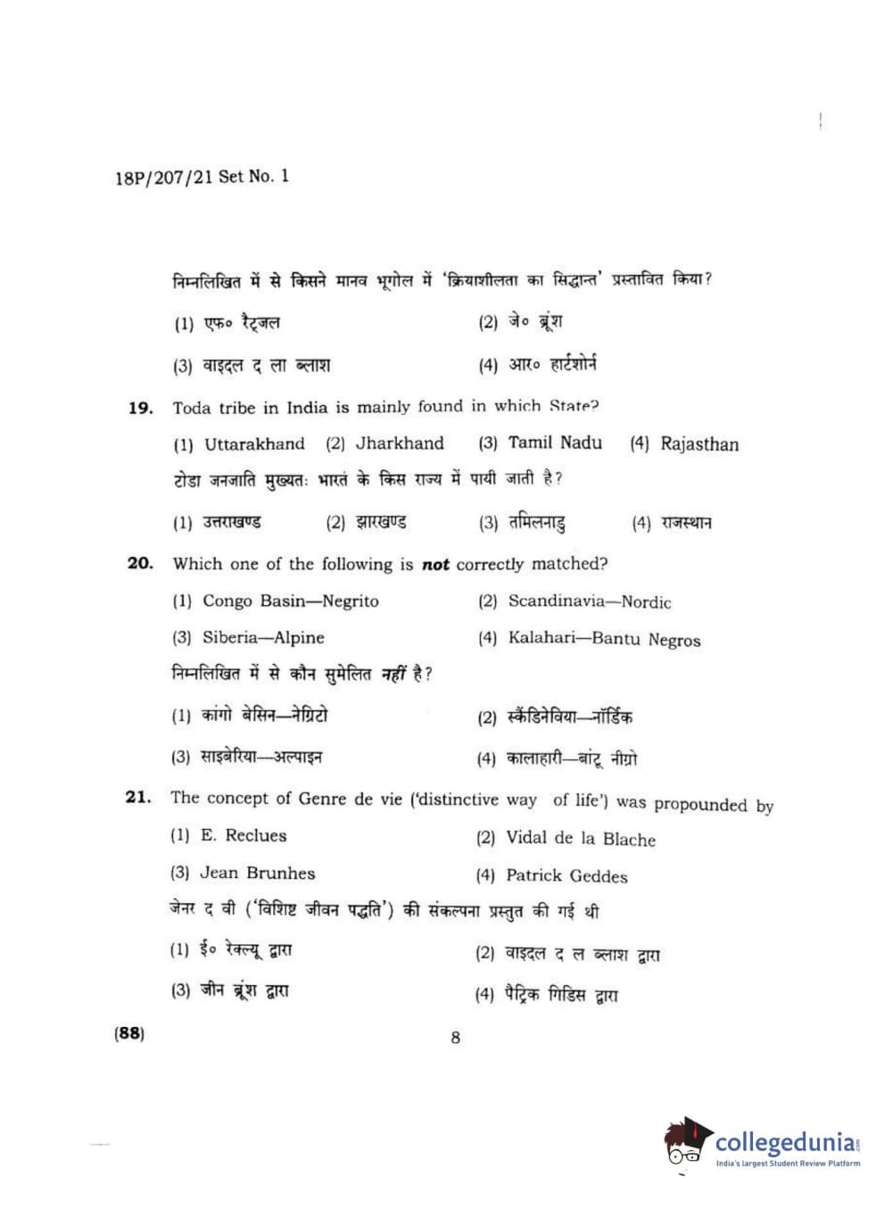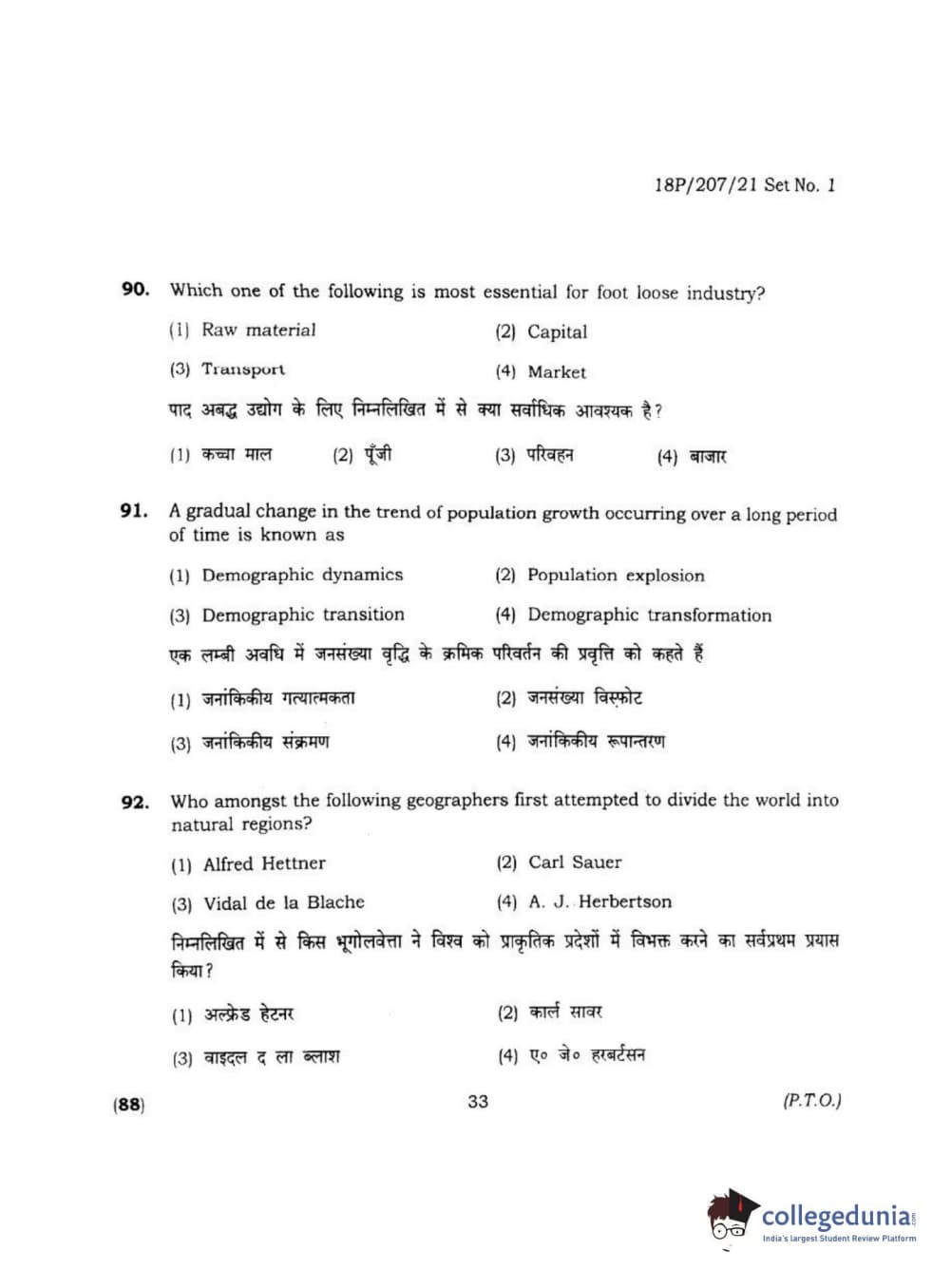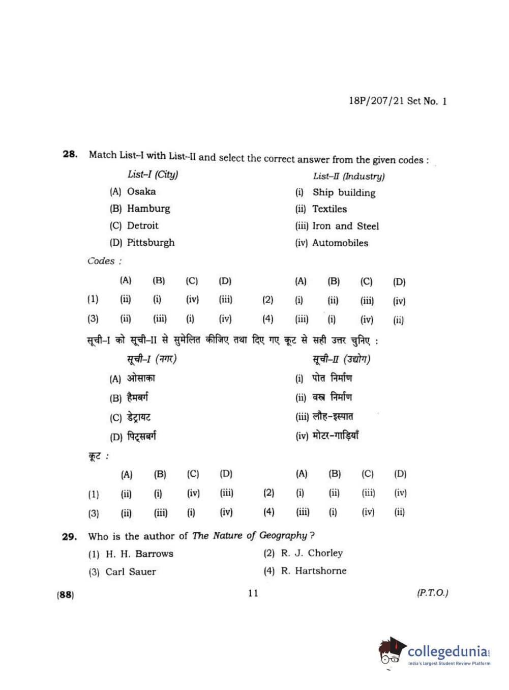 BHU PET 2018 MA M.SC IN GEOGRAPHY Question Paper with Answer Key PDF