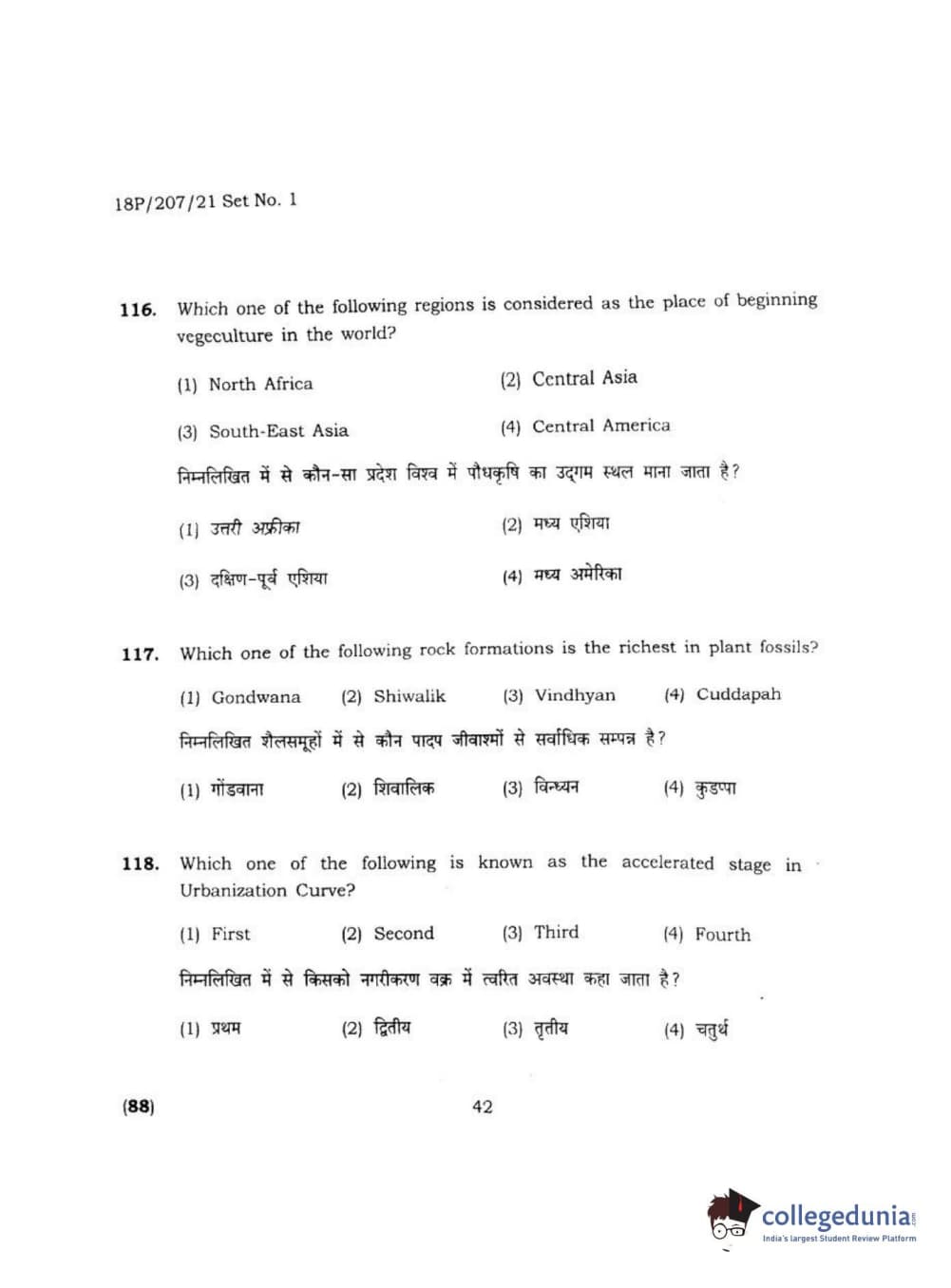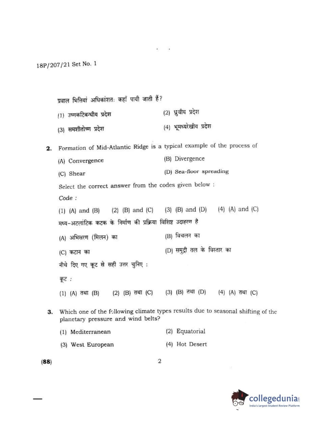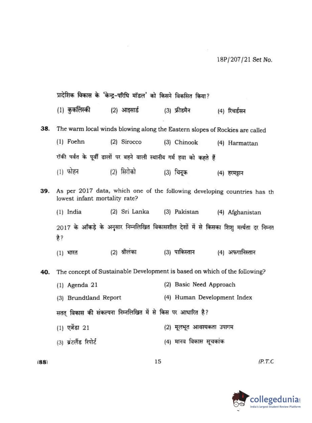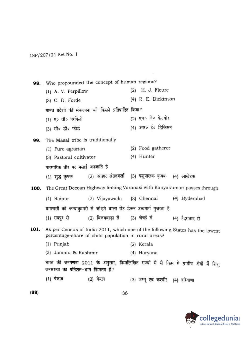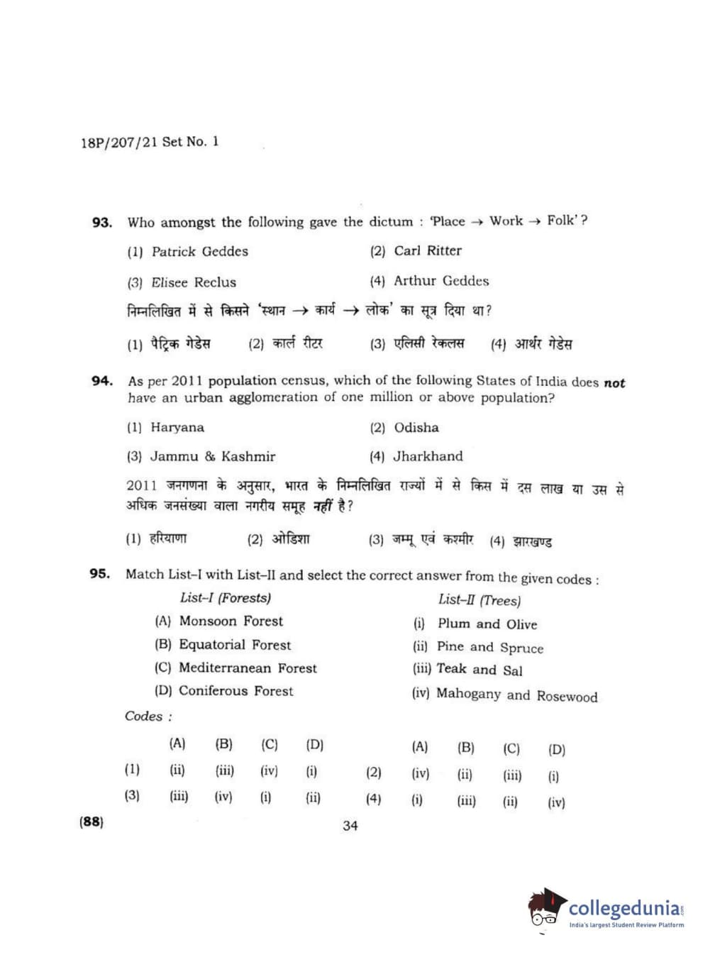 BHU PET 2018 MA M.SC IN GEOGRAPHY Question Paper with Answer Key PDF