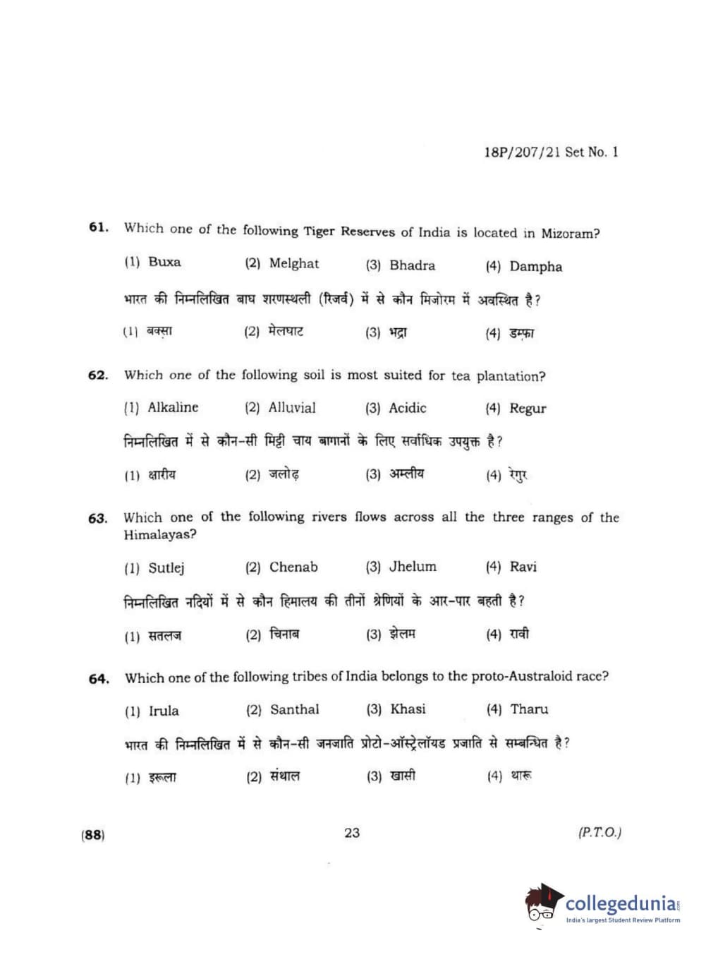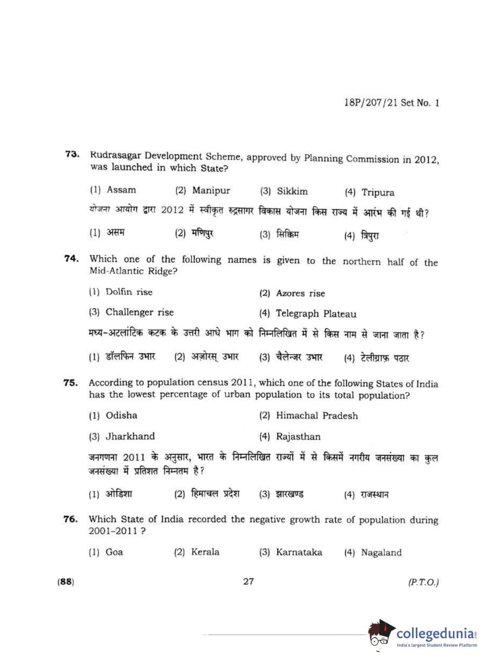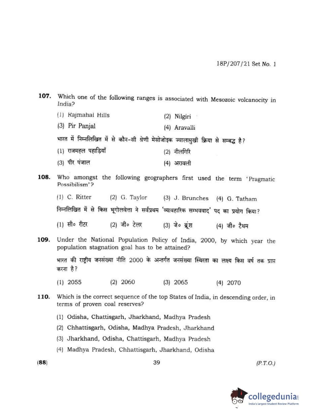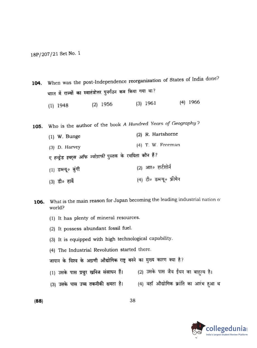 BHU PET 2018 MA M.SC IN GEOGRAPHY Question Paper with Answer Key PDF