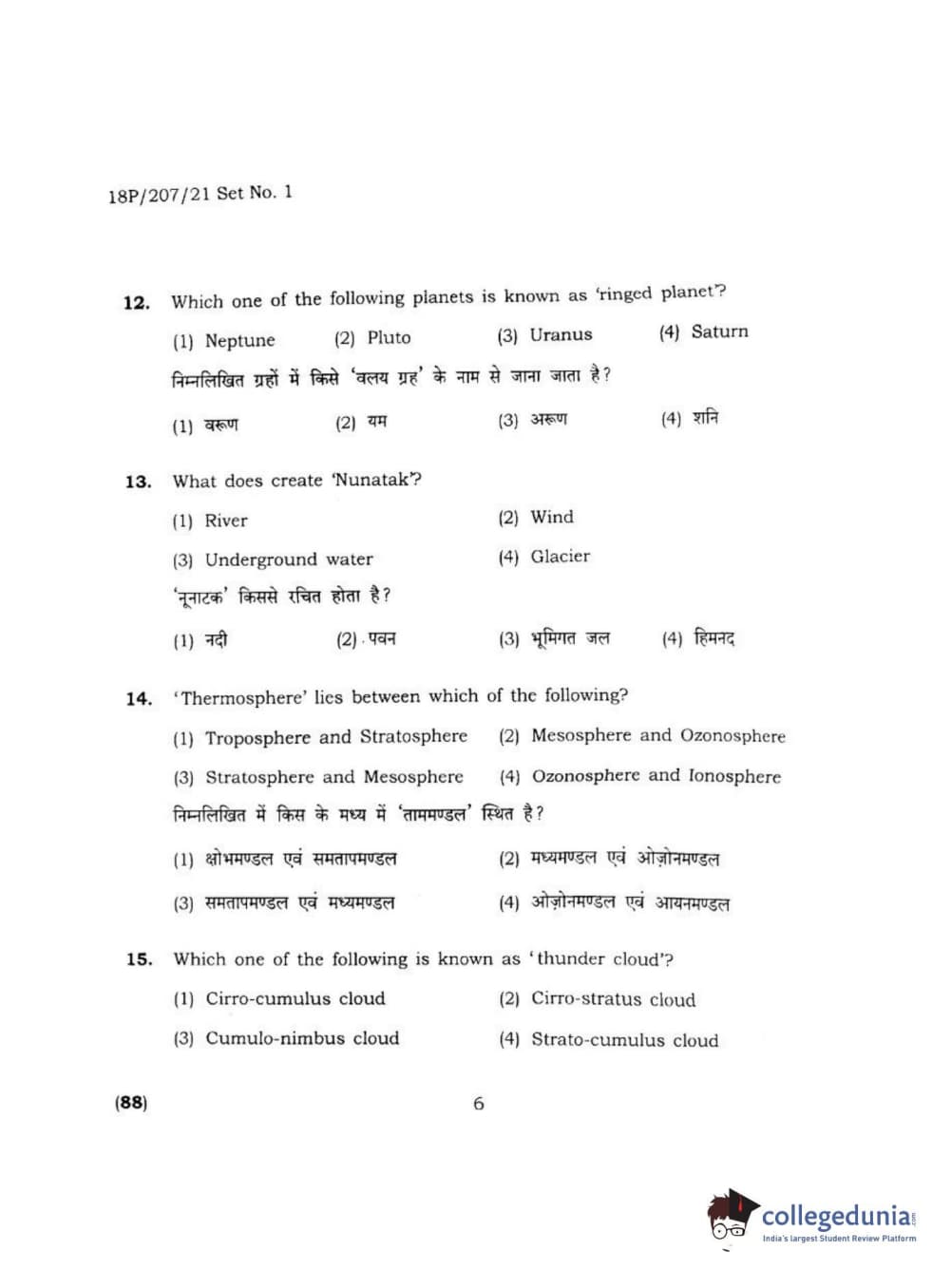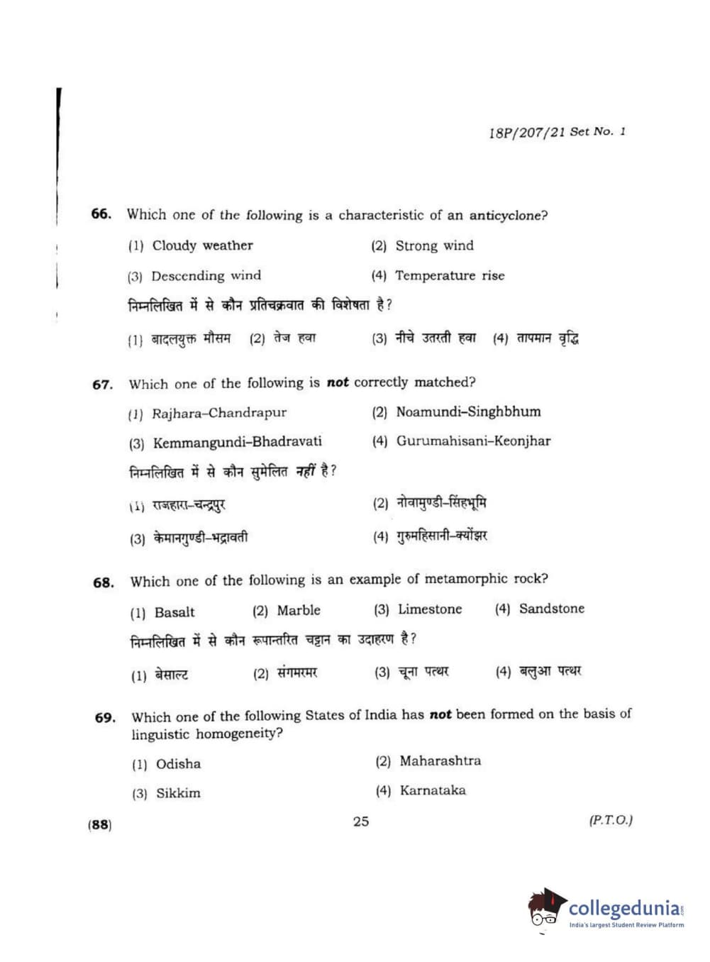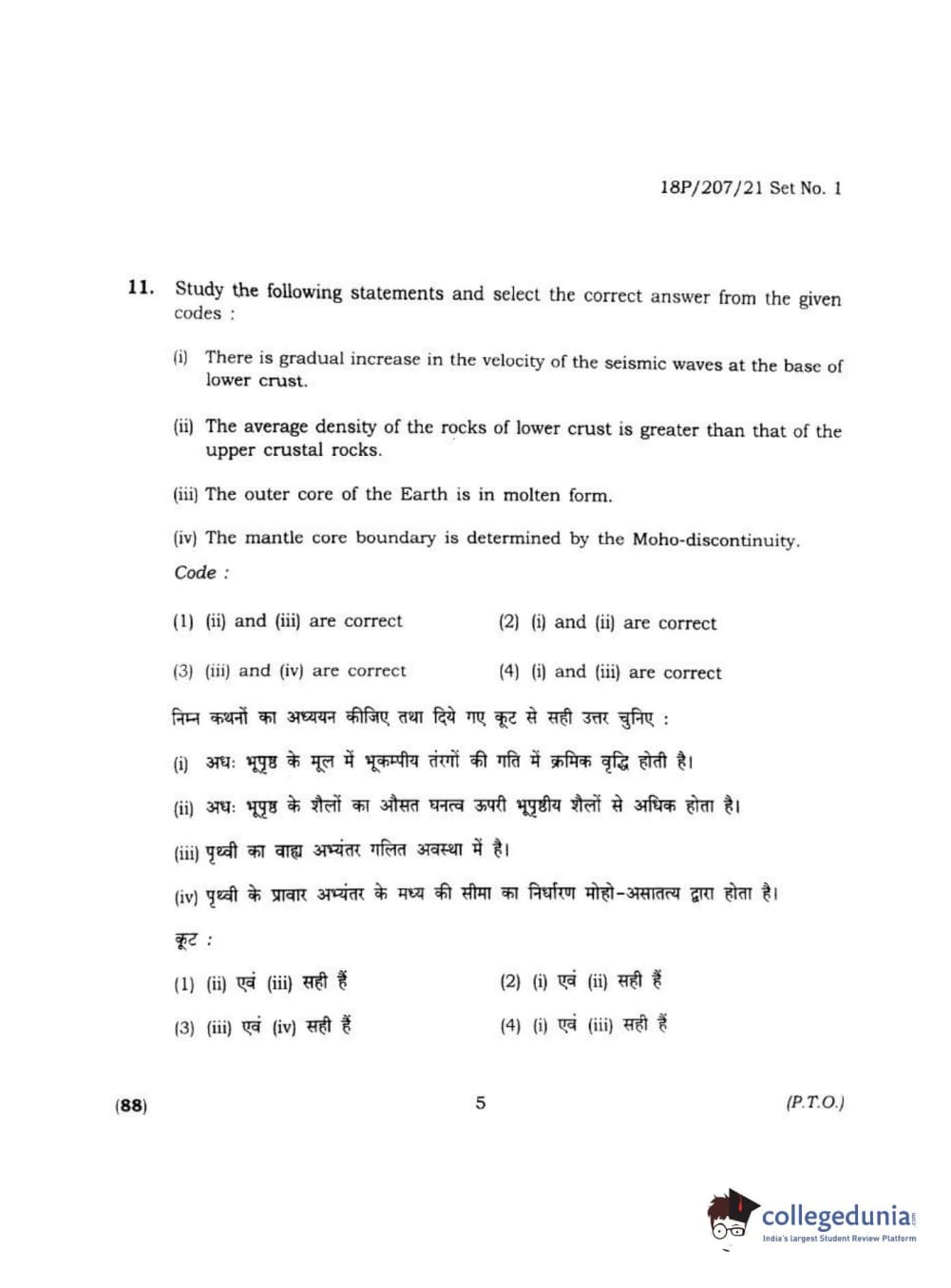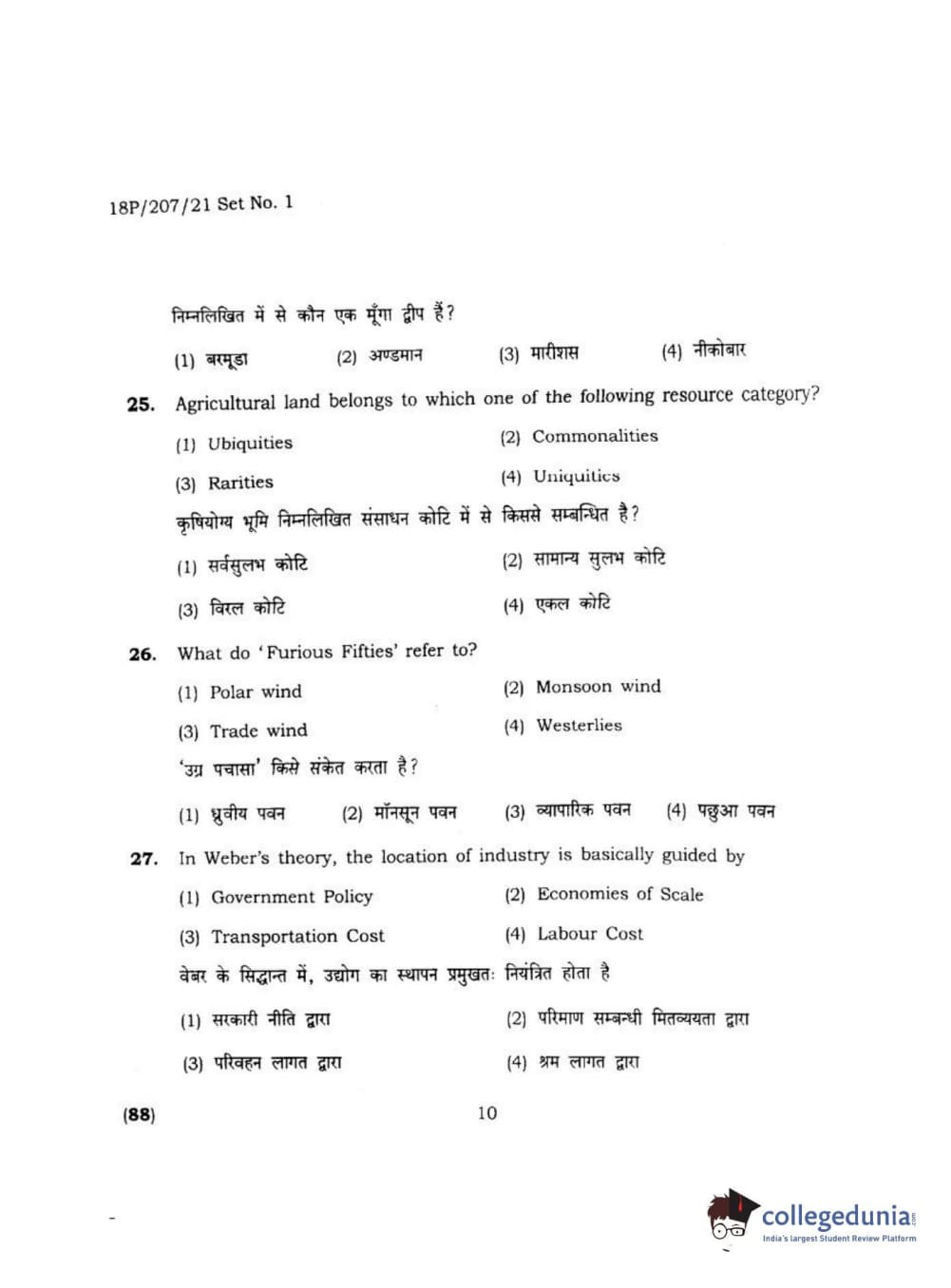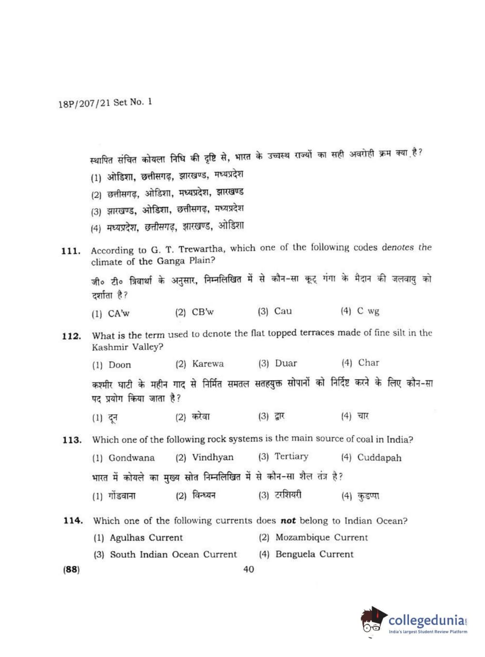 BHU PET 2018 MA M.SC IN GEOGRAPHY Question Paper with Answer Key PDF