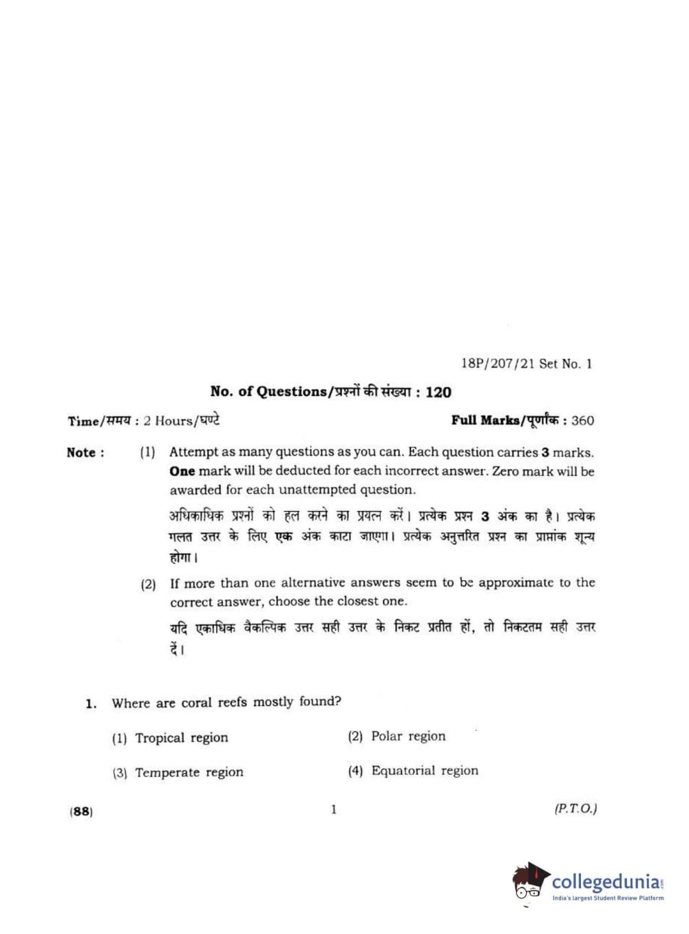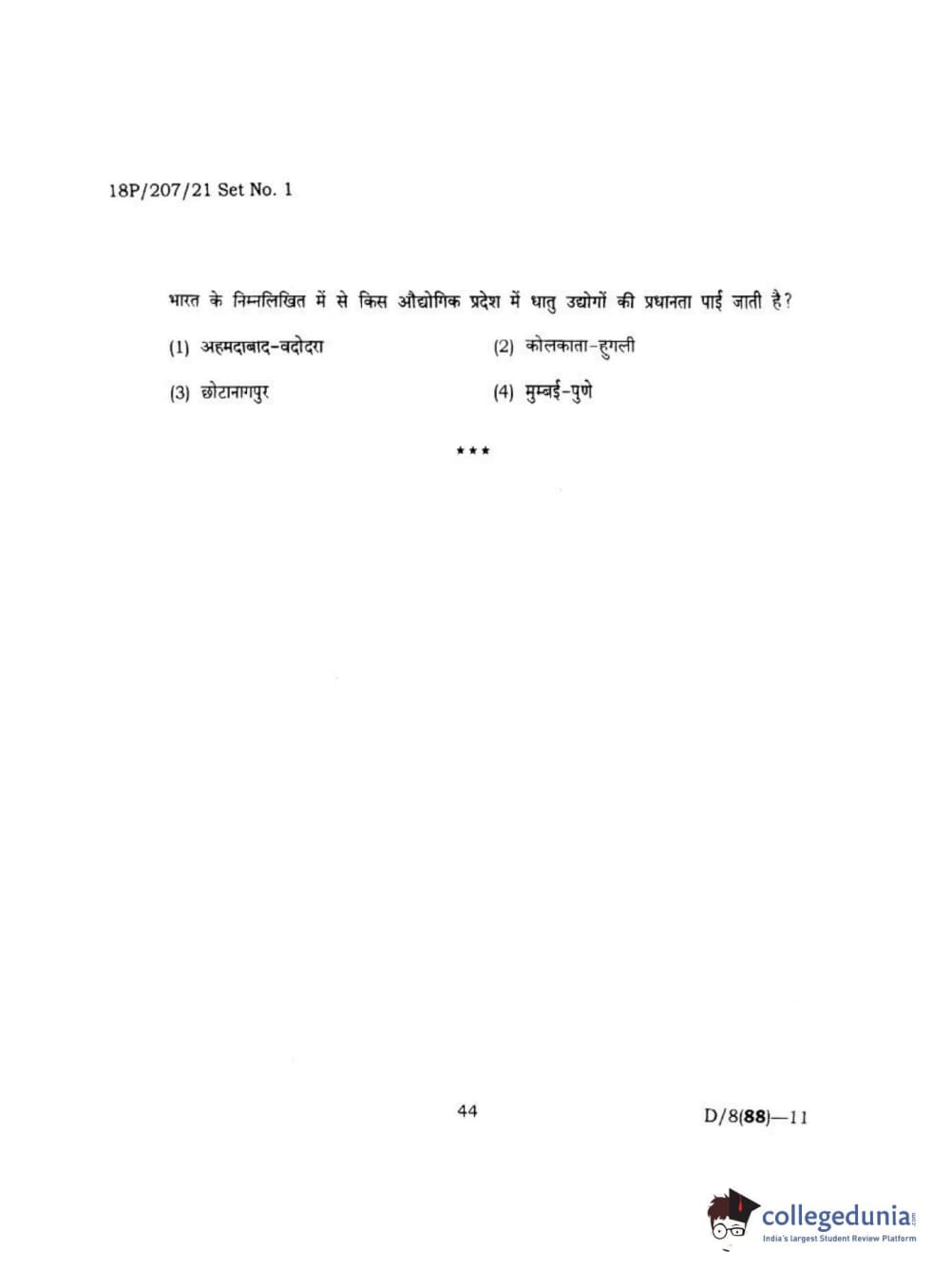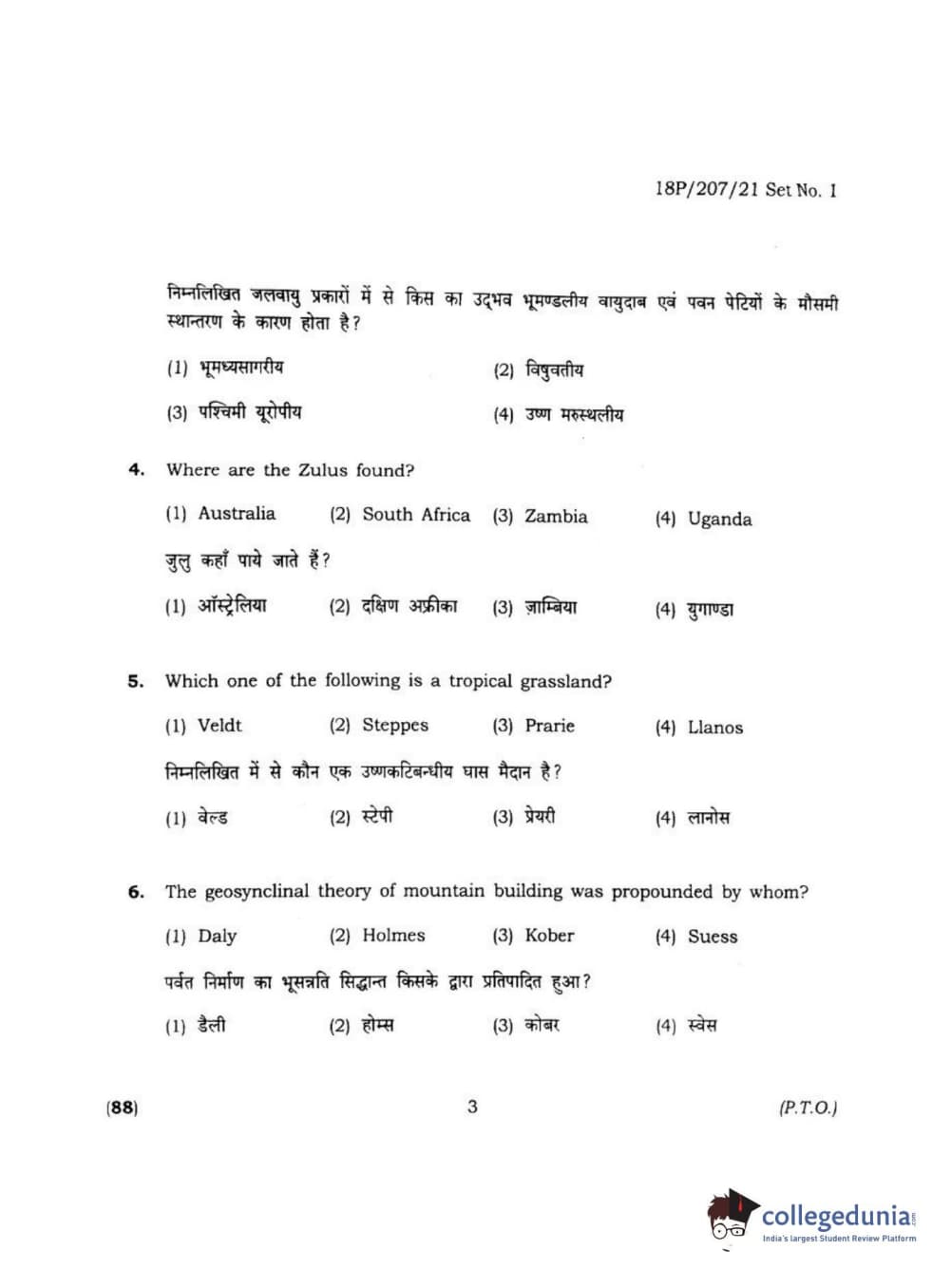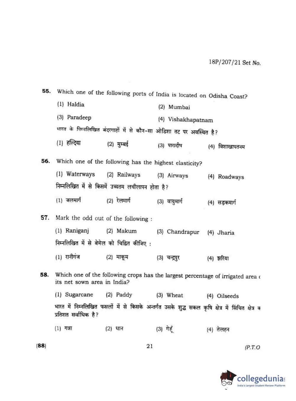 BHU PET 2018 MA M.SC IN GEOGRAPHY Question Paper with Answer Key PDF