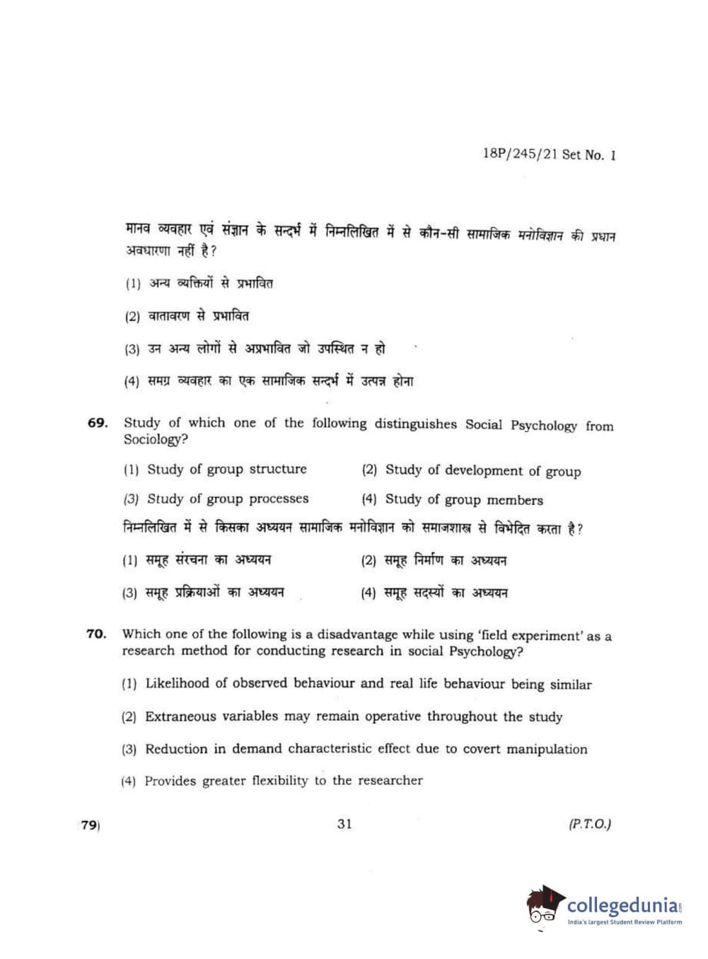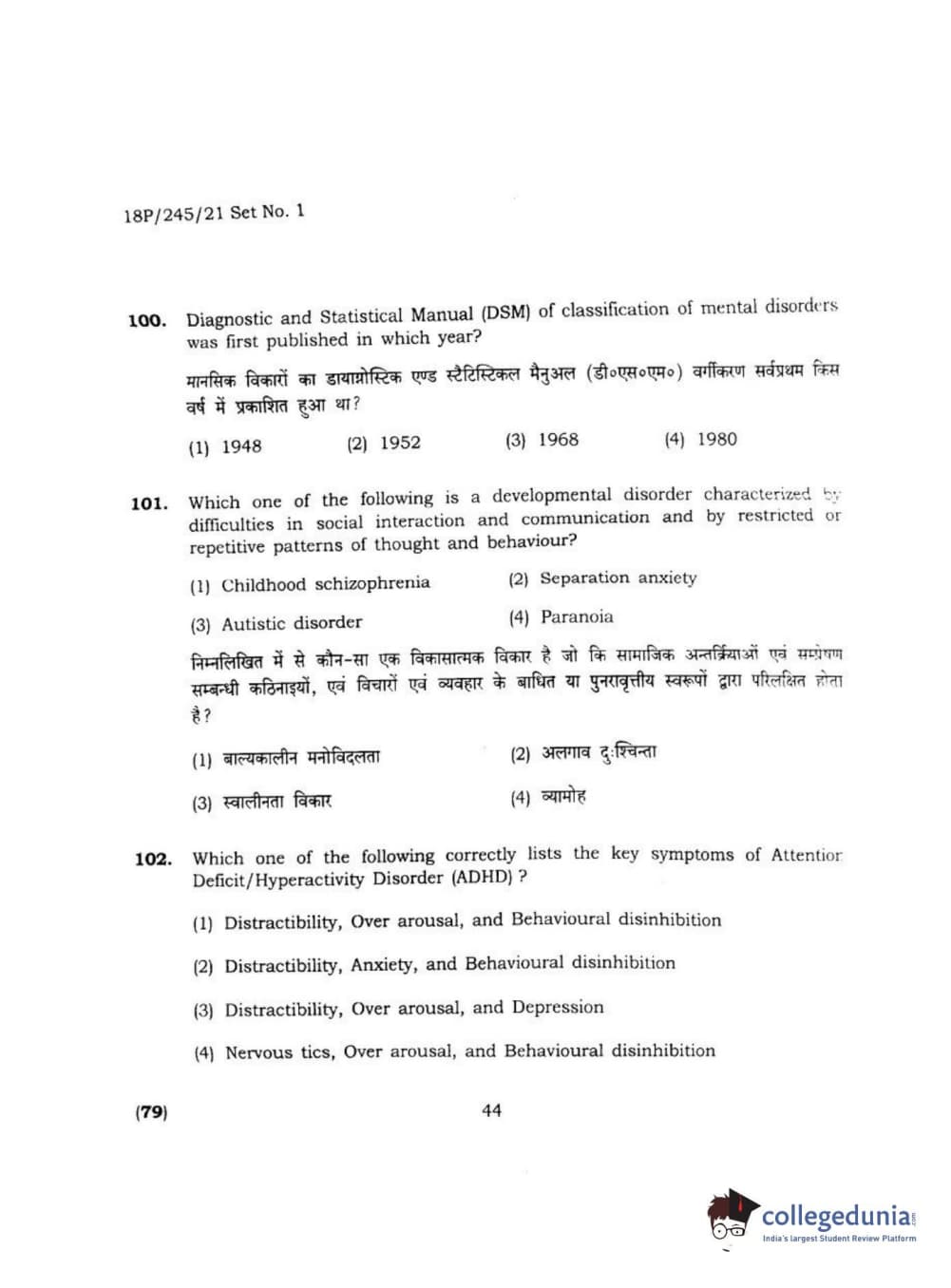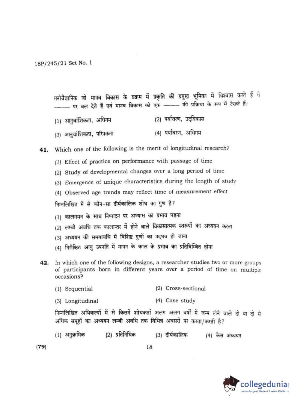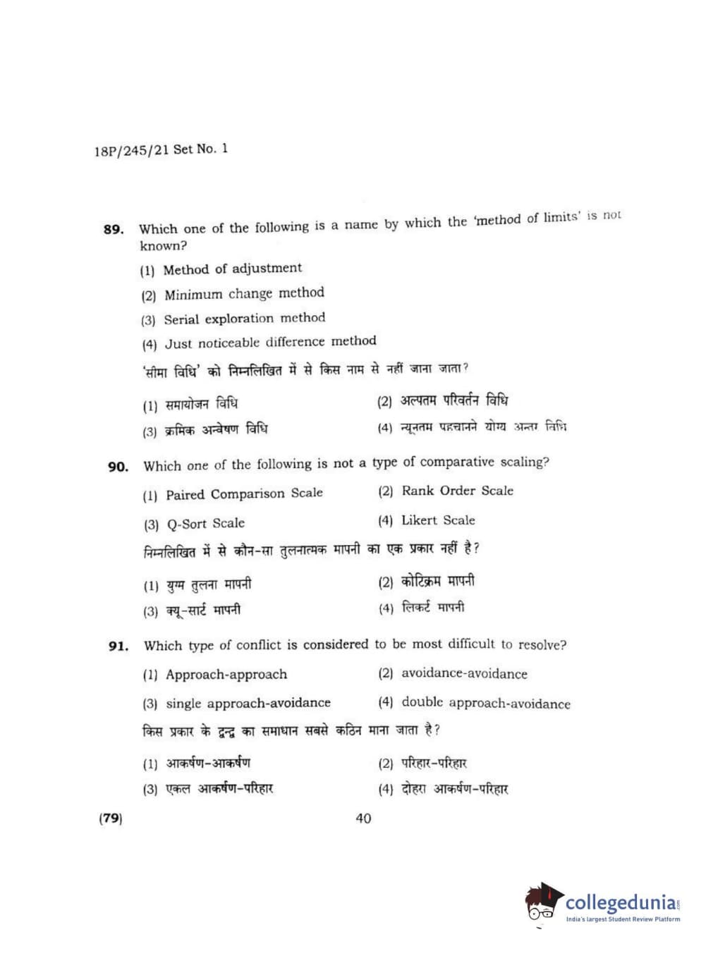 BHU PET 2018 MA M.SC. IN PSYCOLOGY Question Paper with Answer Key PDF