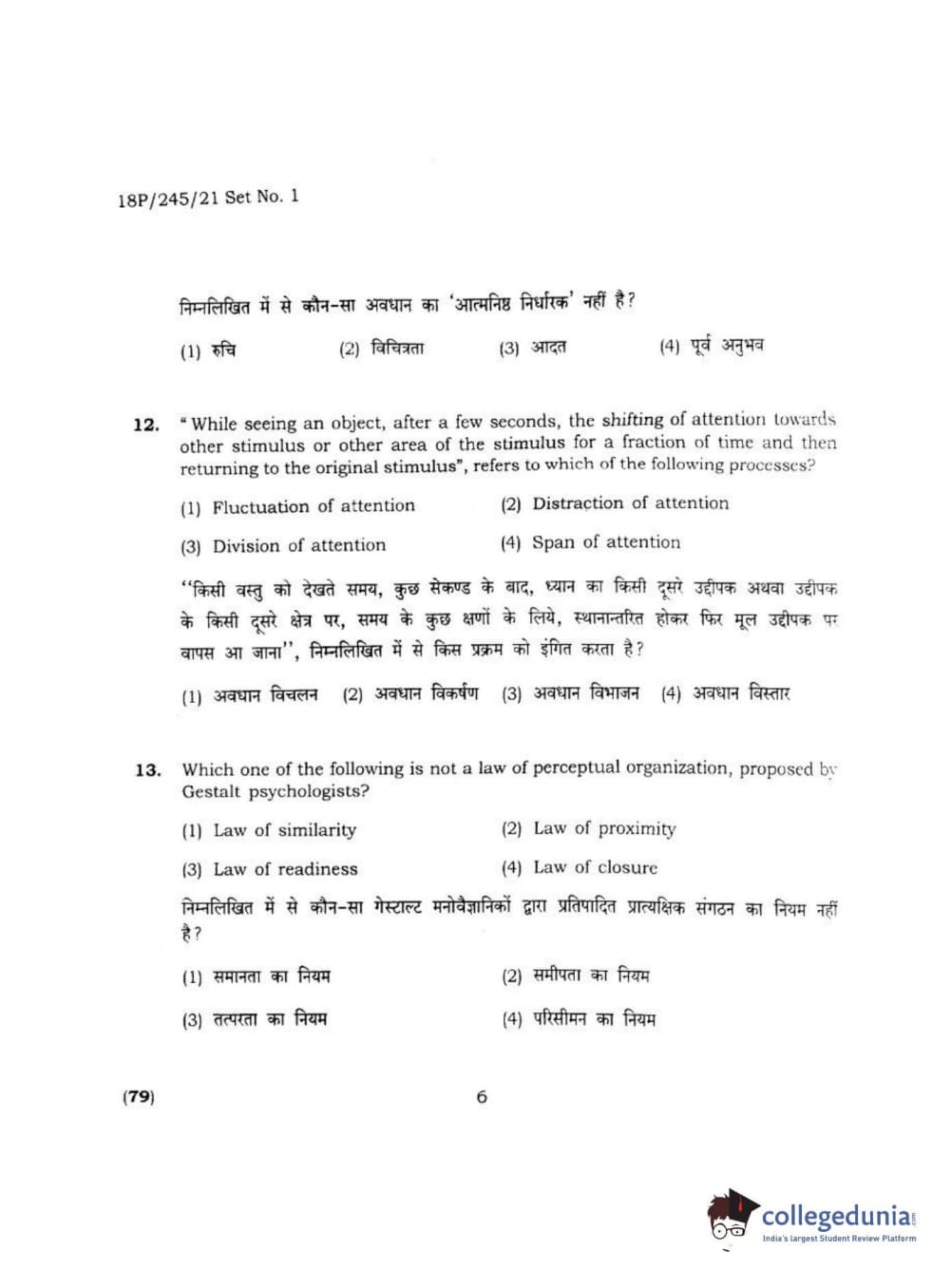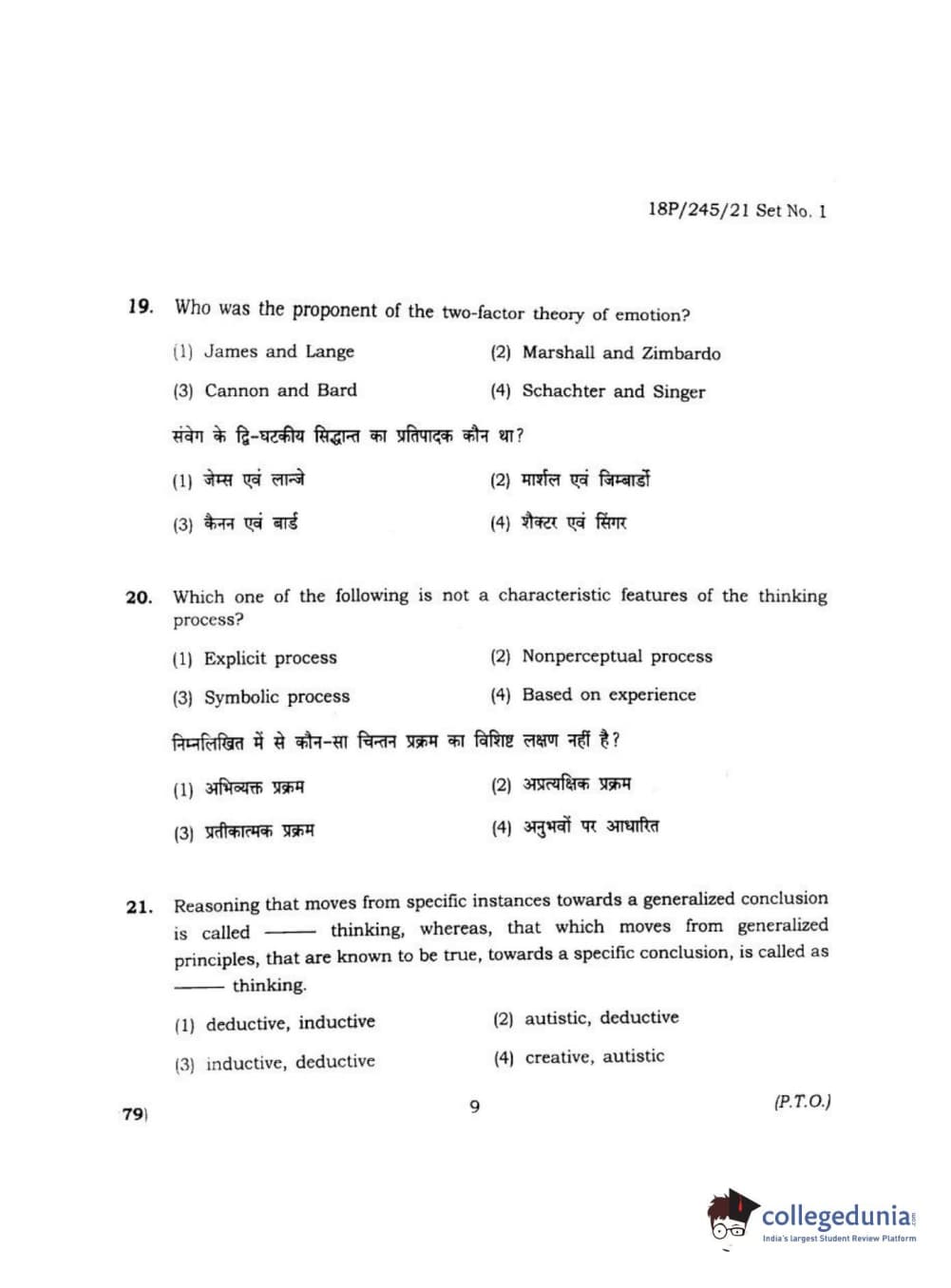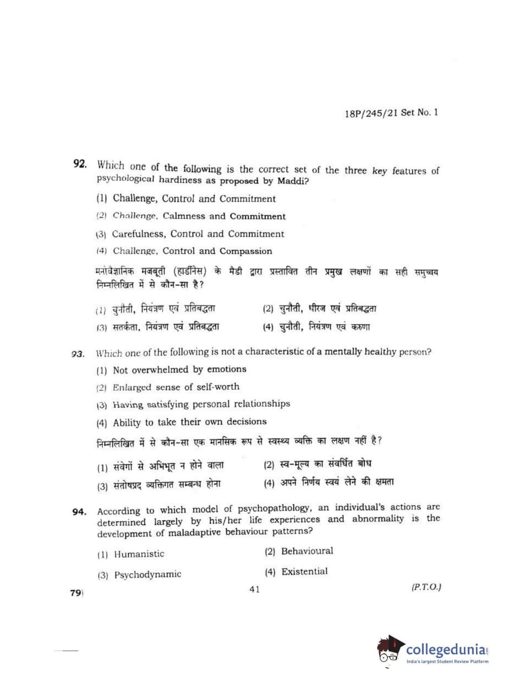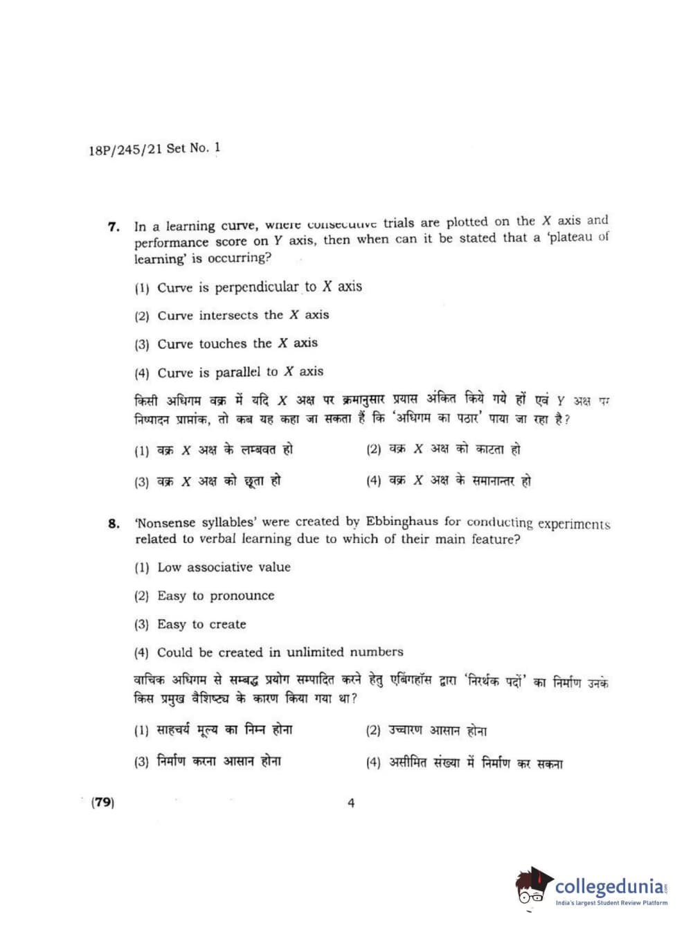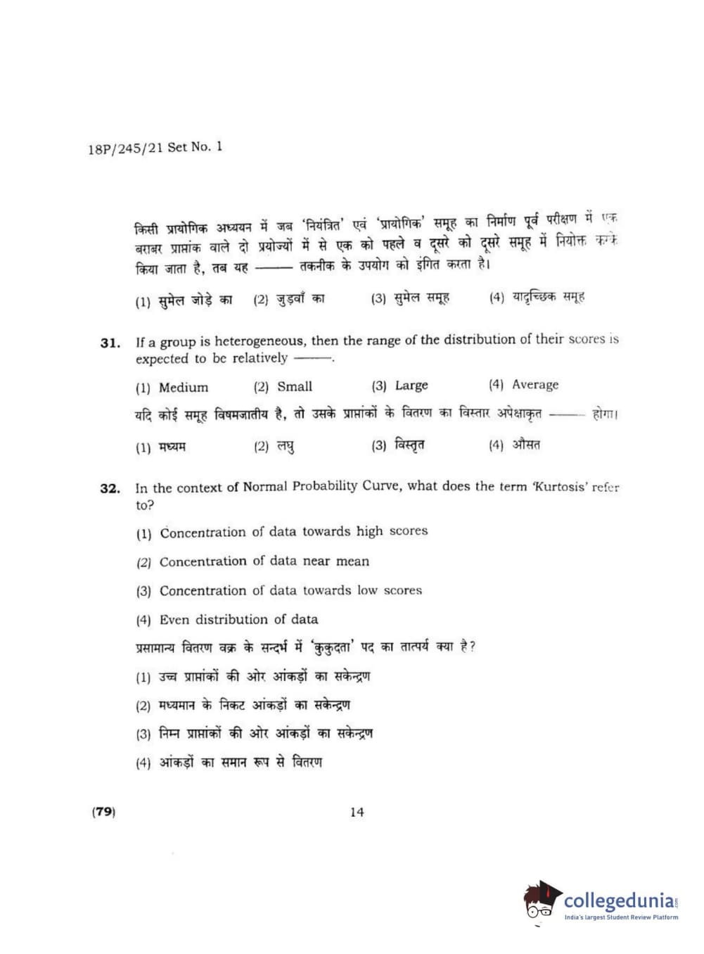 BHU PET 2018 MA M.SC. IN PSYCOLOGY Question Paper with Answer Key PDF