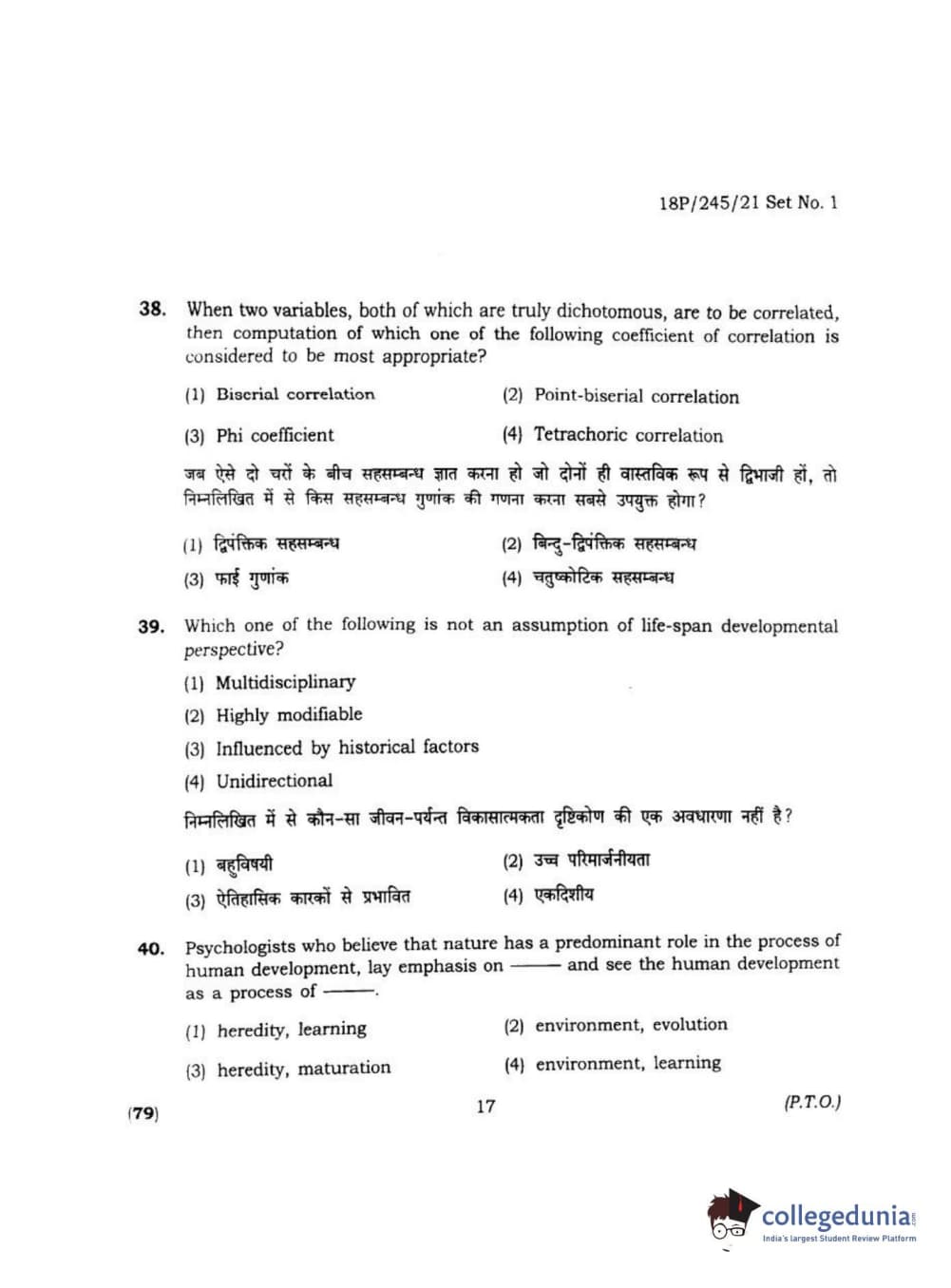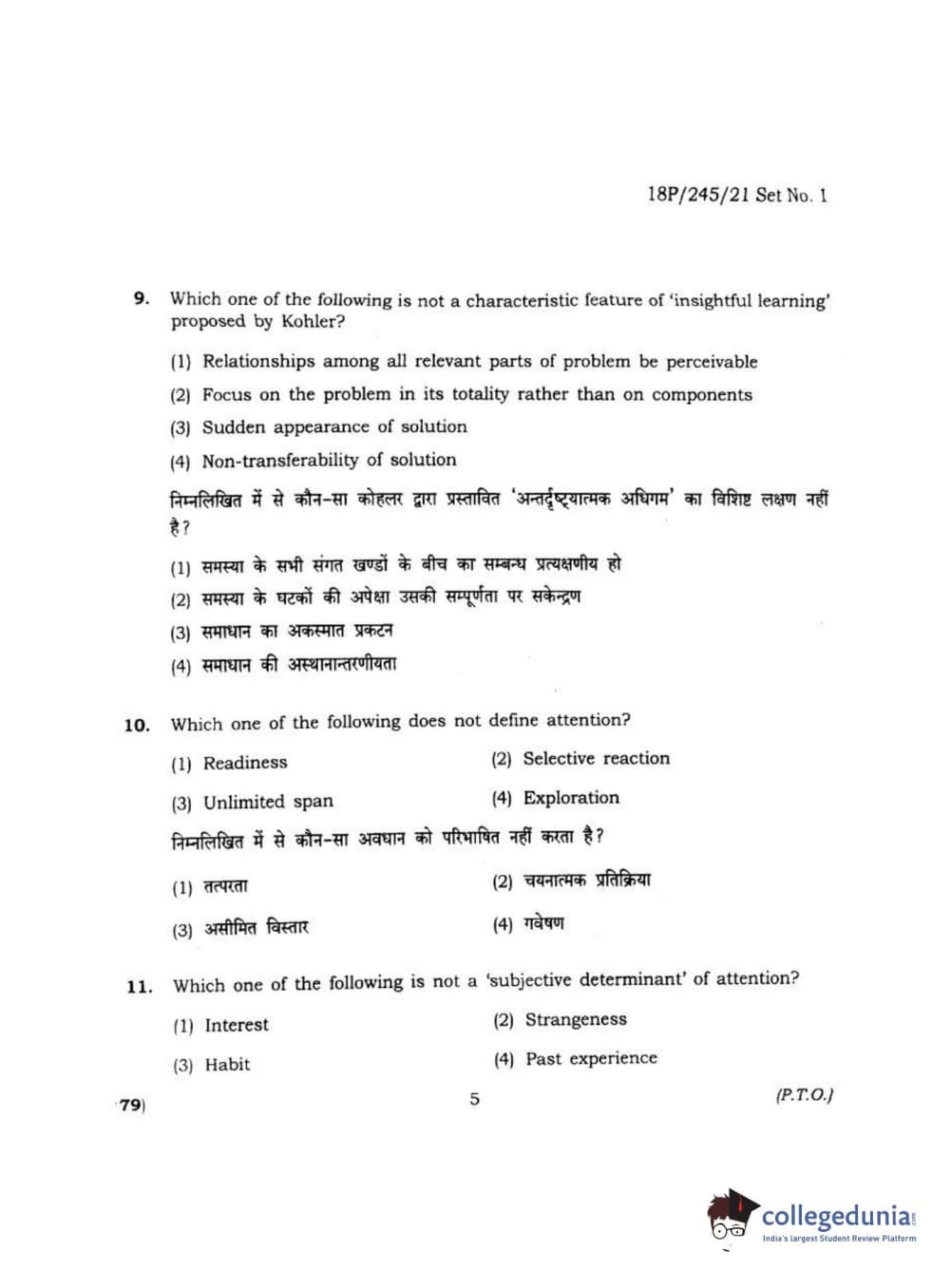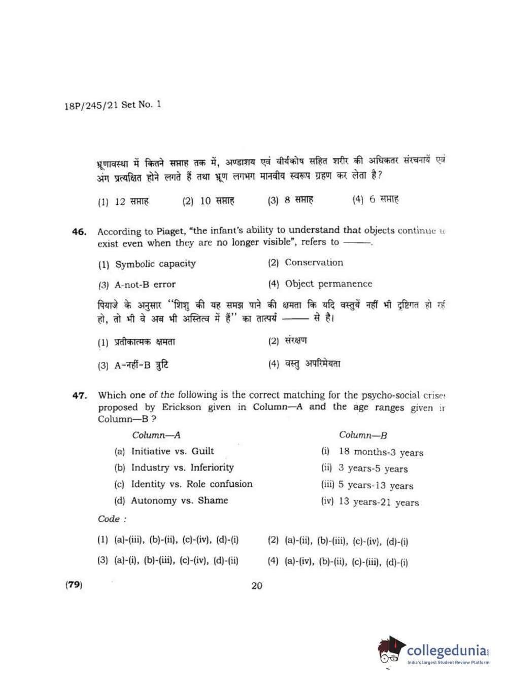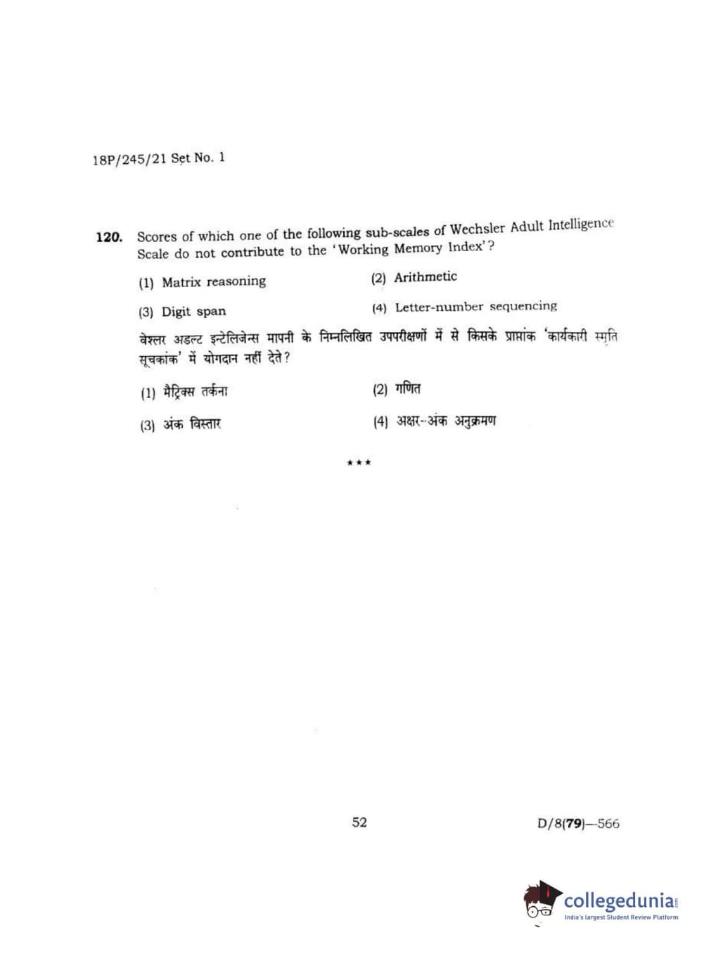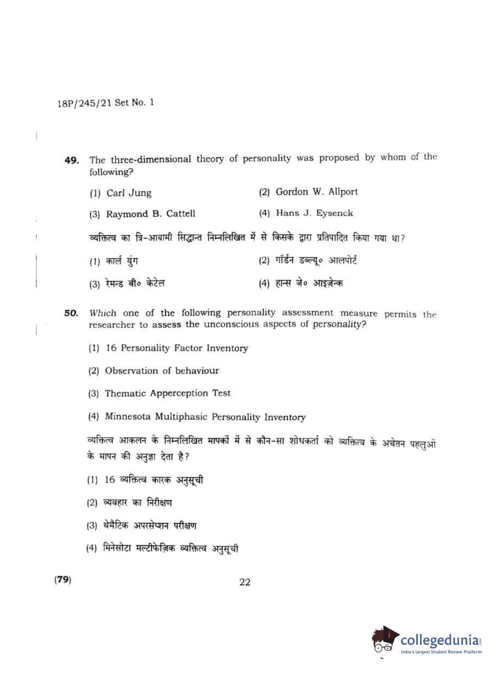 BHU PET 2018 MA M.SC. IN PSYCOLOGY Question Paper with Answer Key PDF