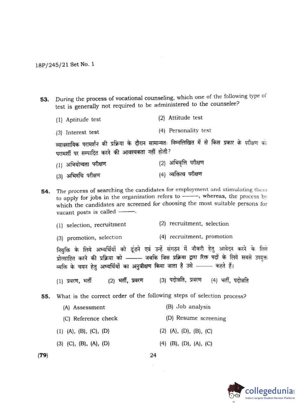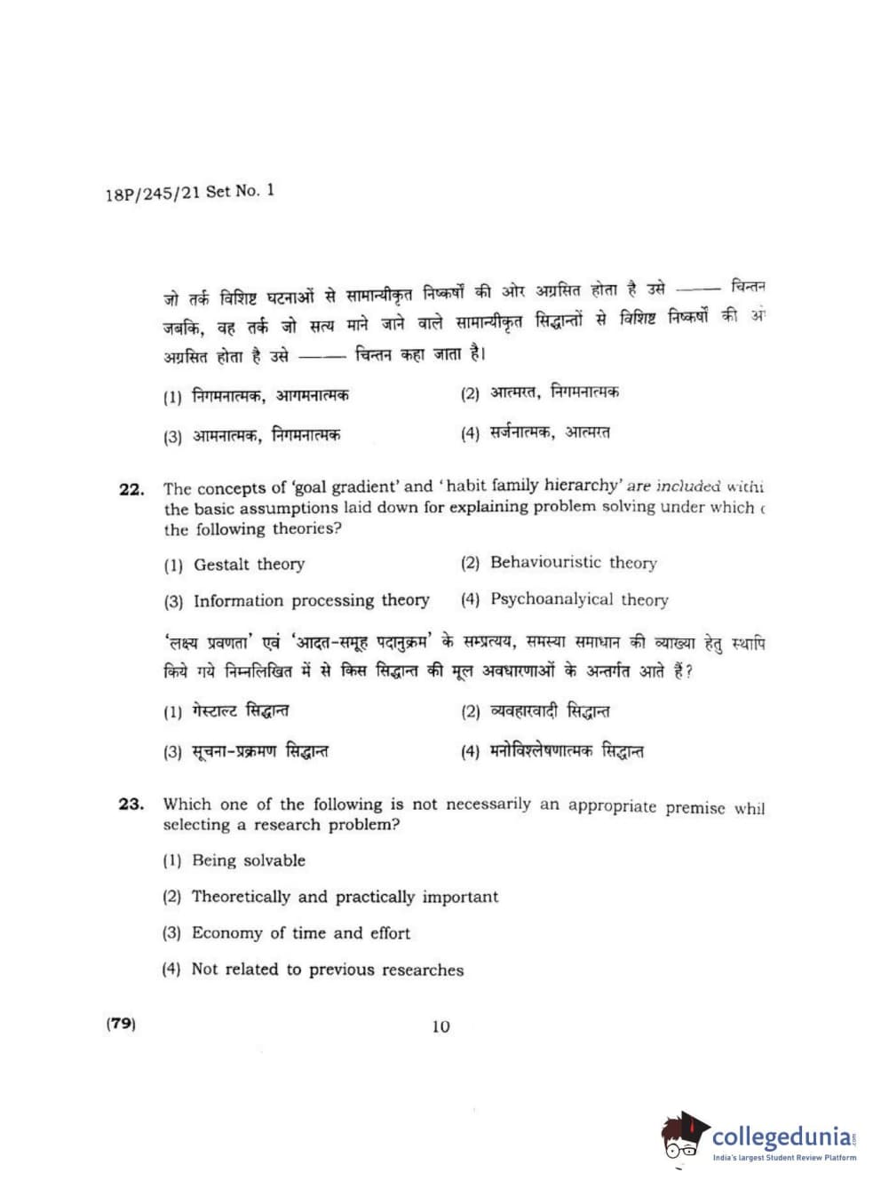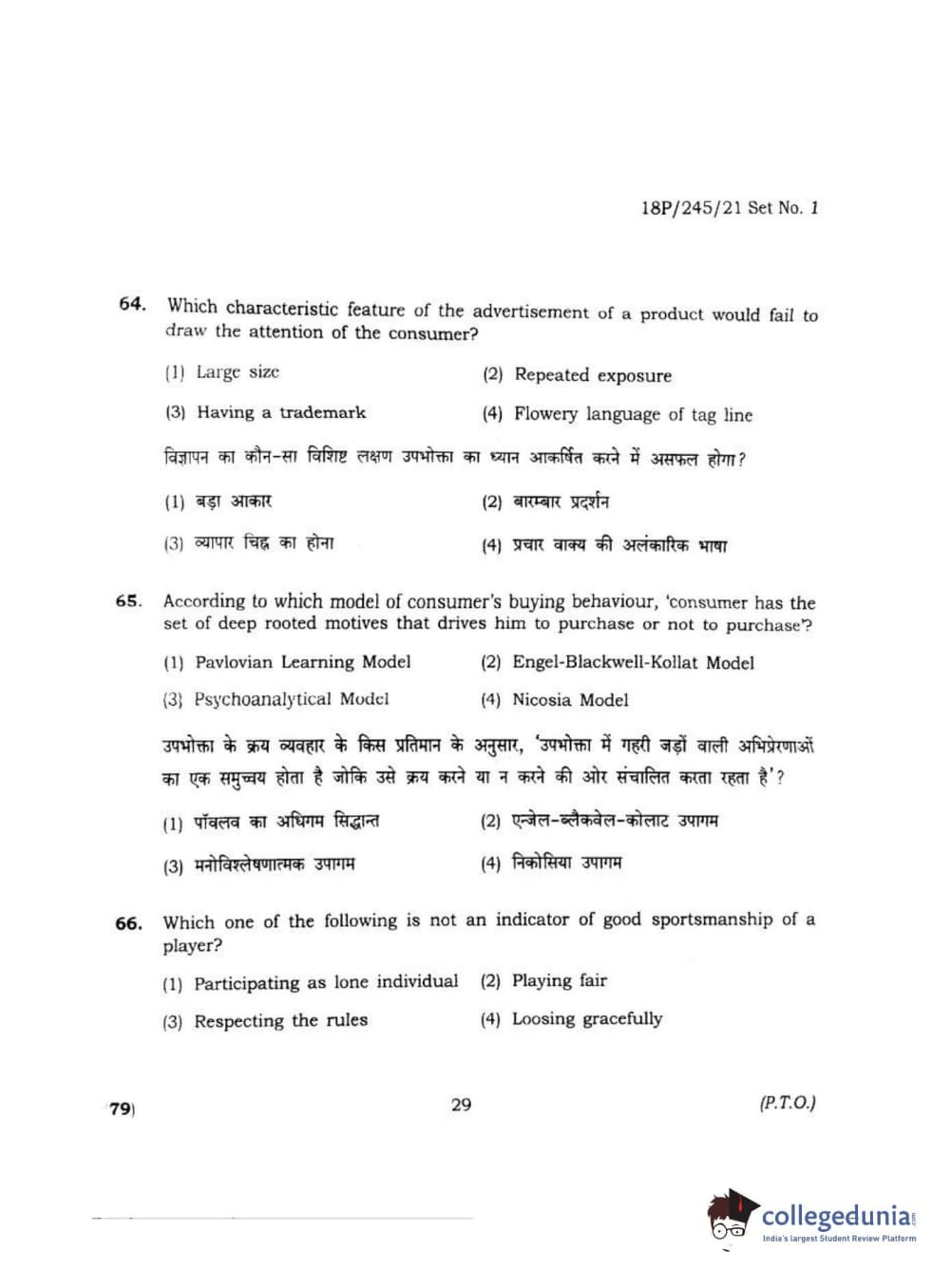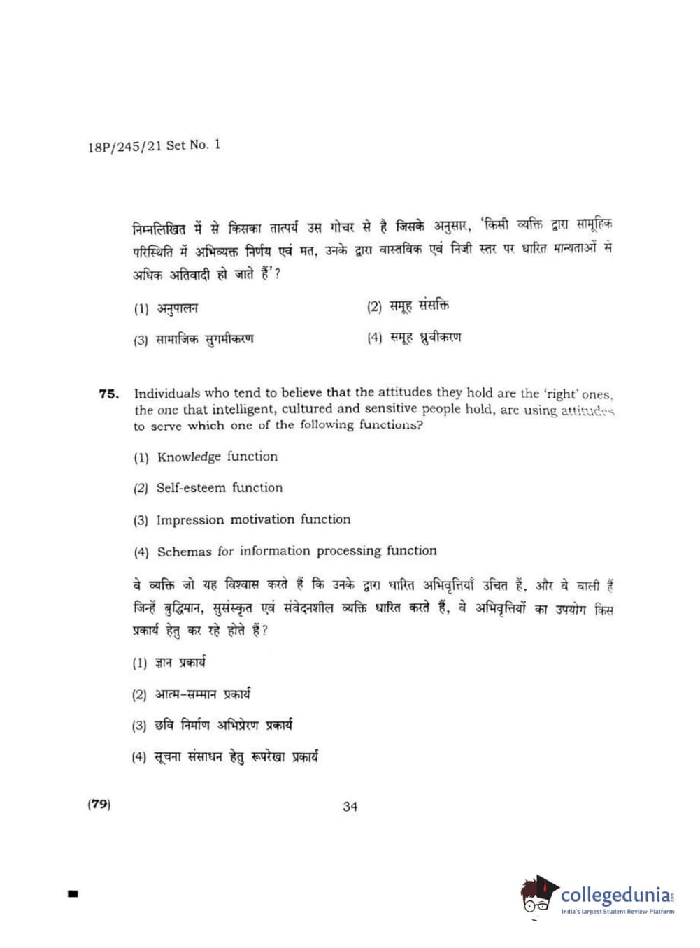 BHU PET 2018 MA M.SC. IN PSYCOLOGY Question Paper with Answer Key PDF