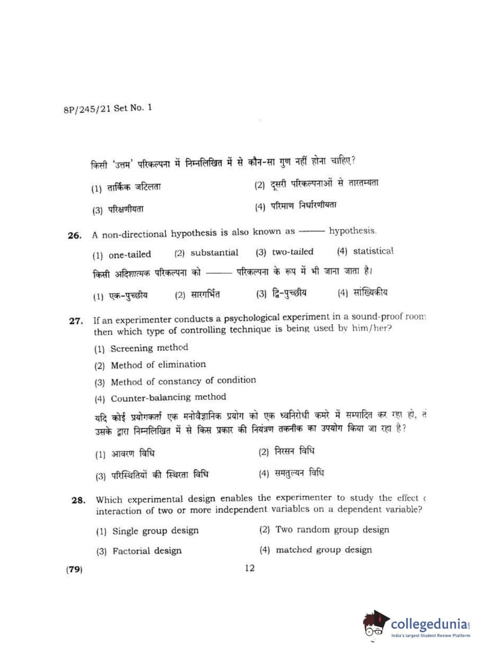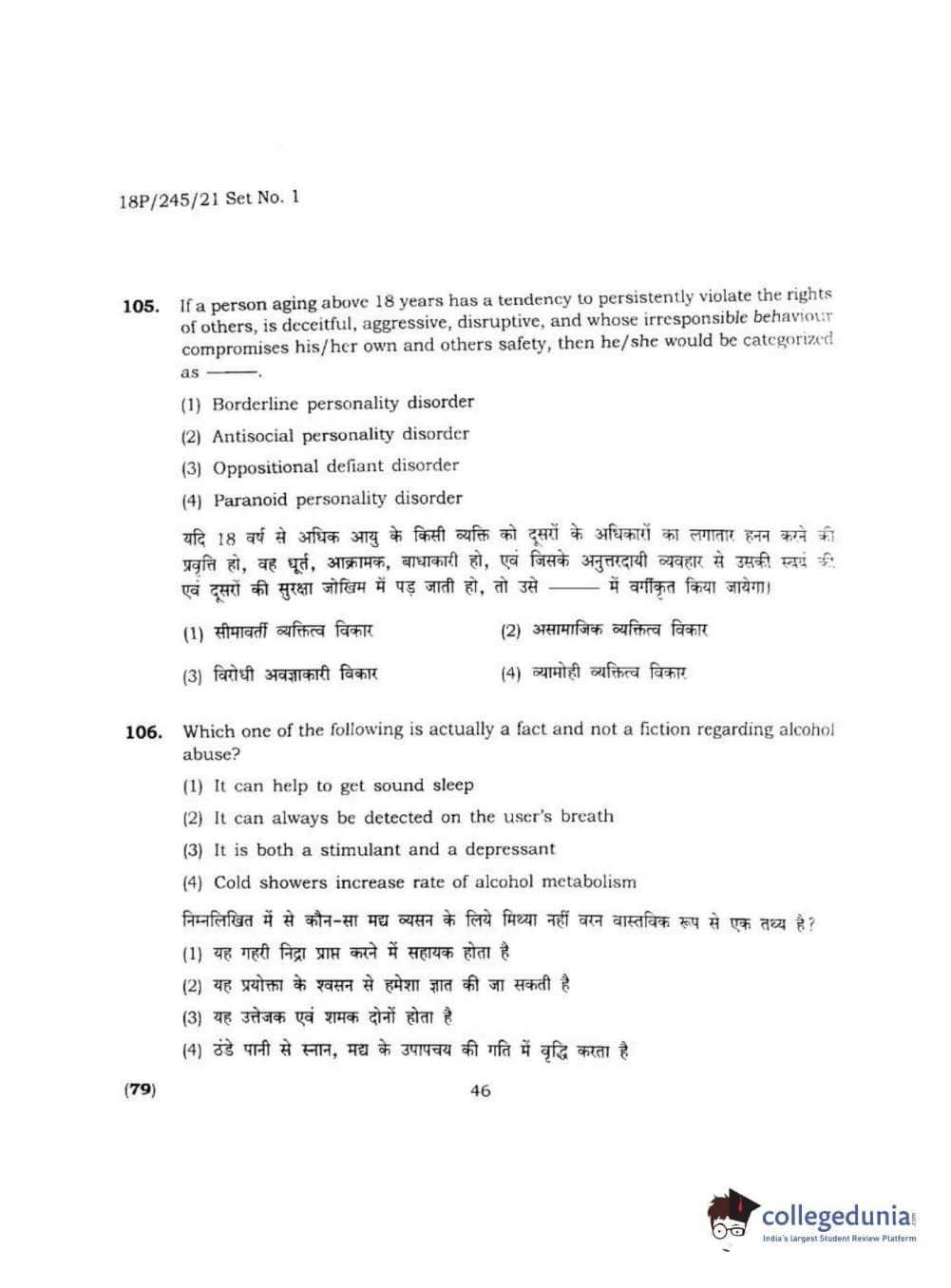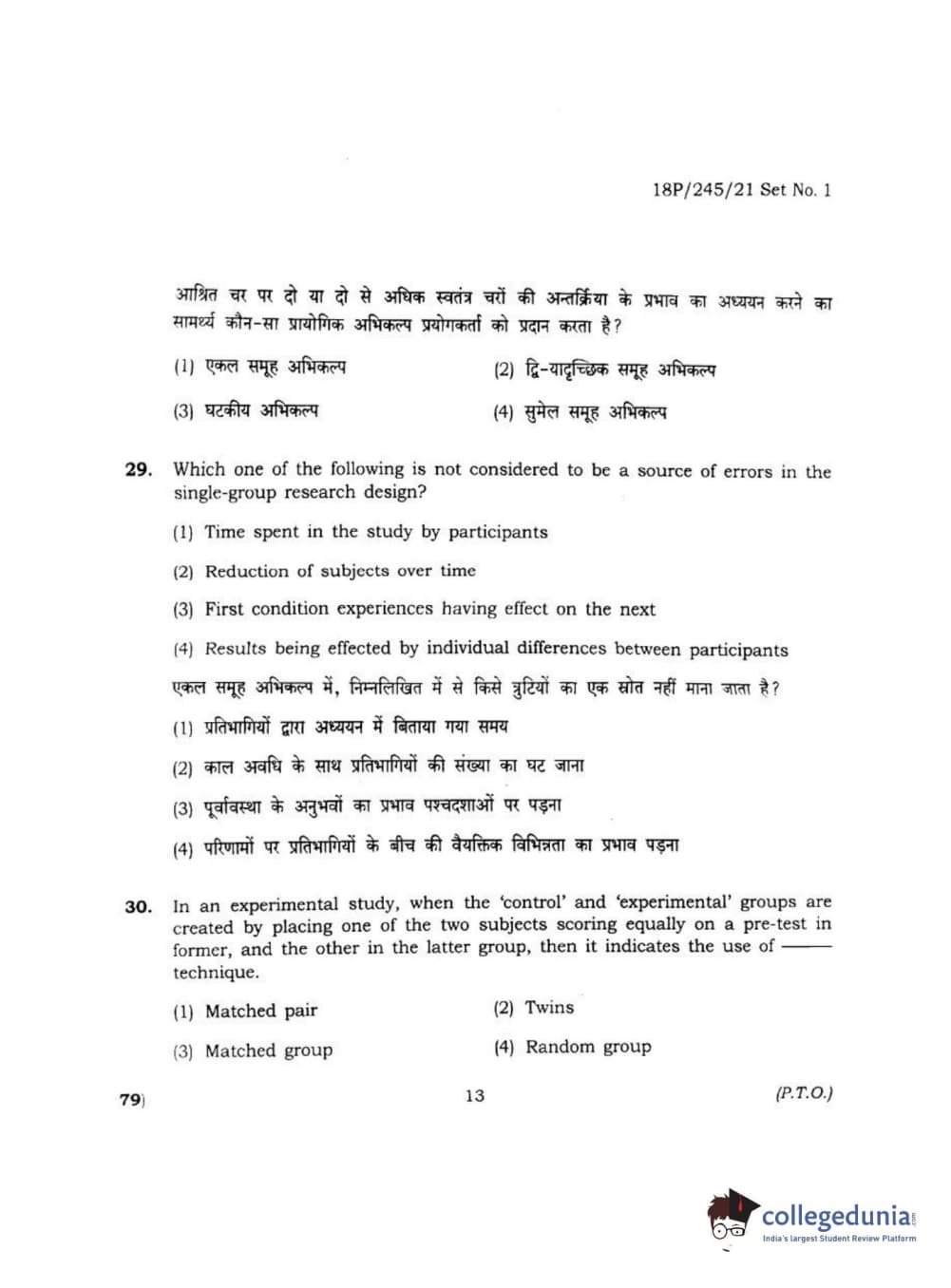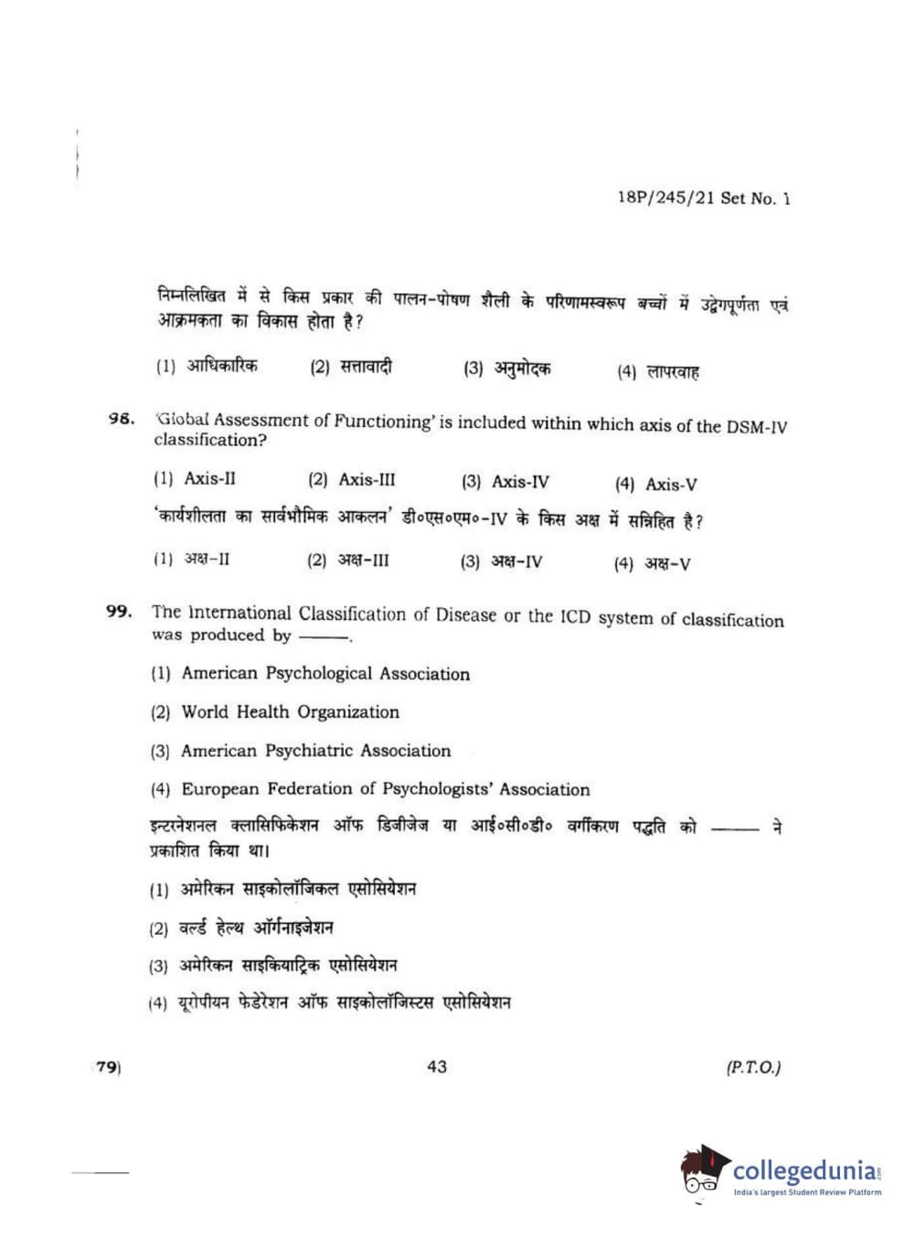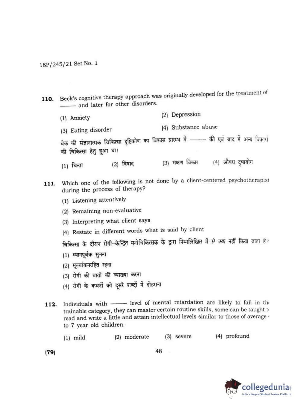 BHU PET 2018 MA M.SC. IN PSYCOLOGY Question Paper with Answer Key PDF
