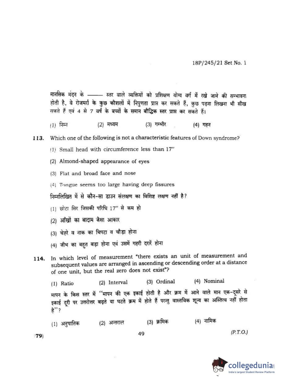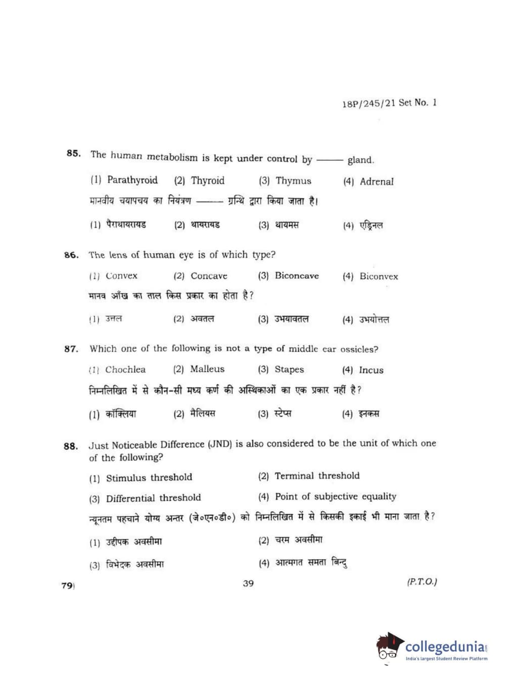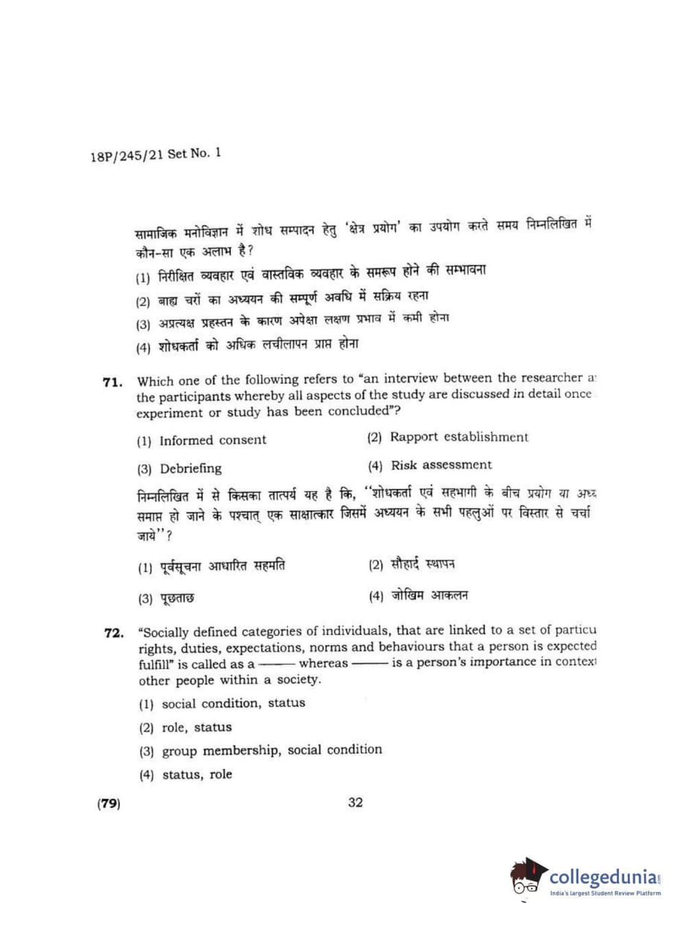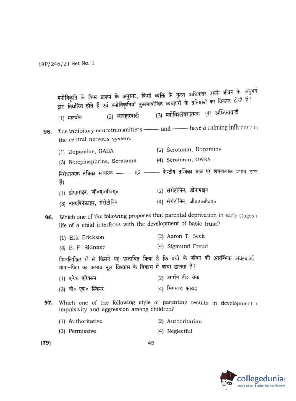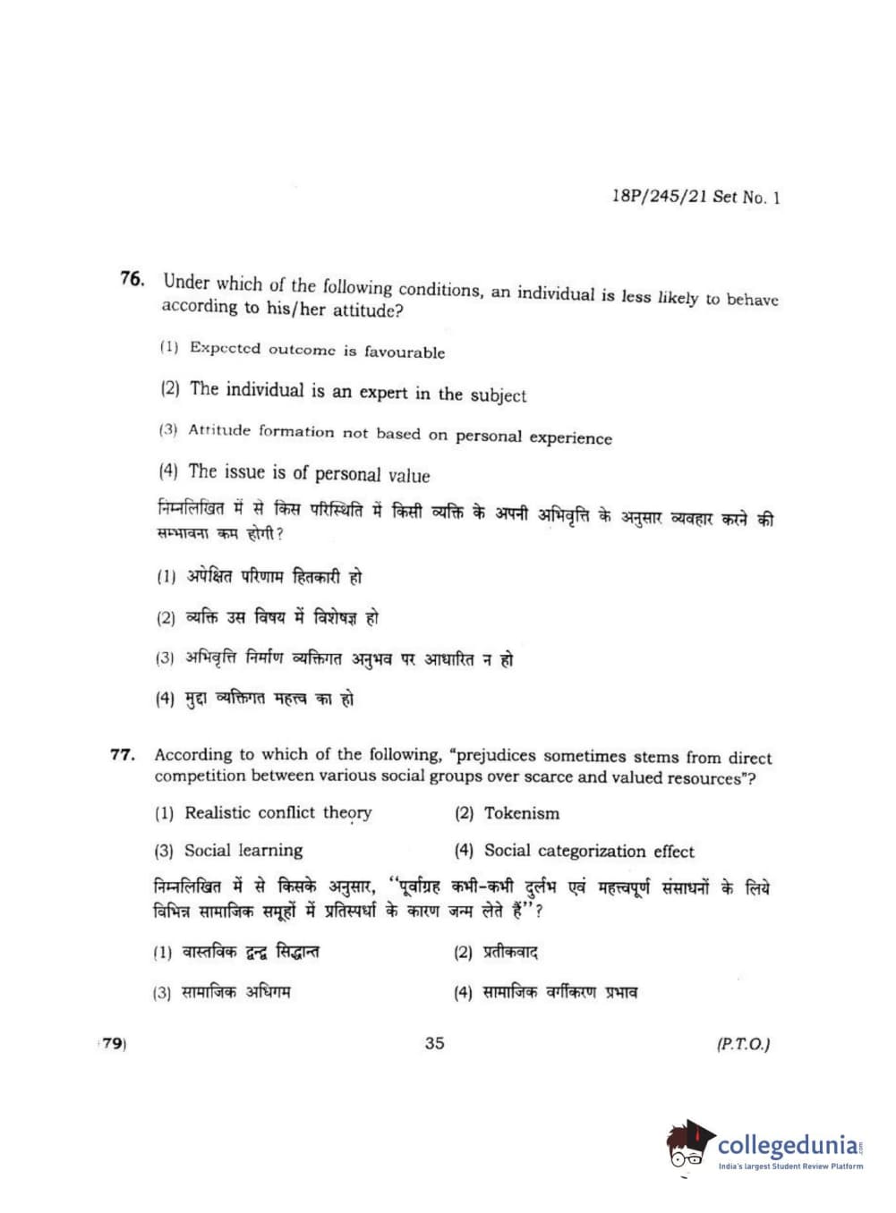 BHU PET 2018 MA M.SC. IN PSYCOLOGY Question Paper with Answer Key PDF
