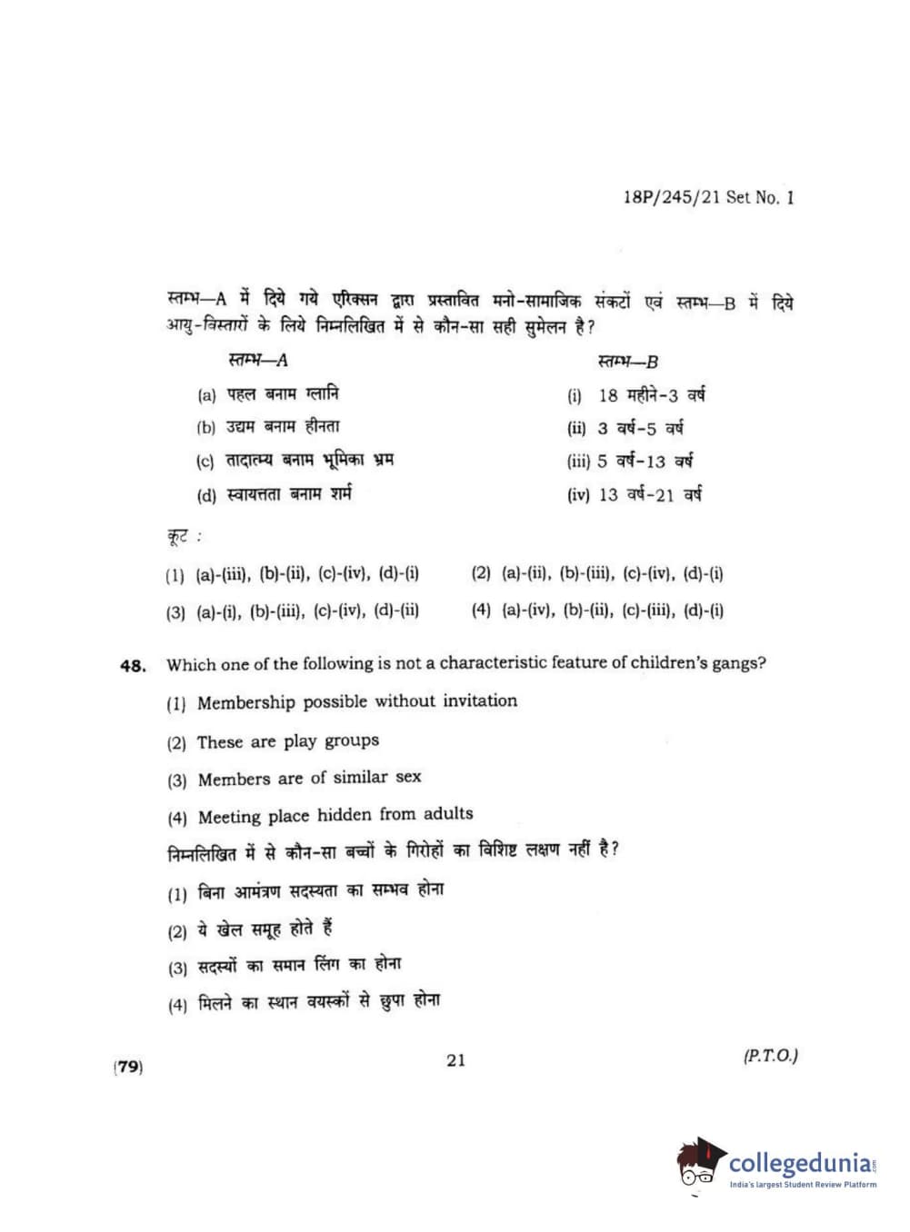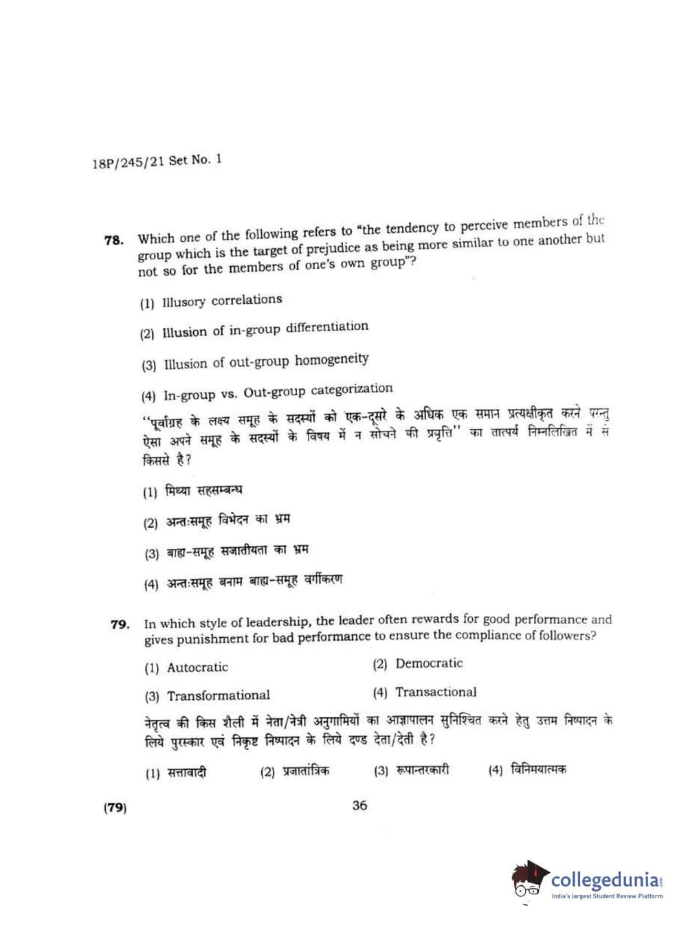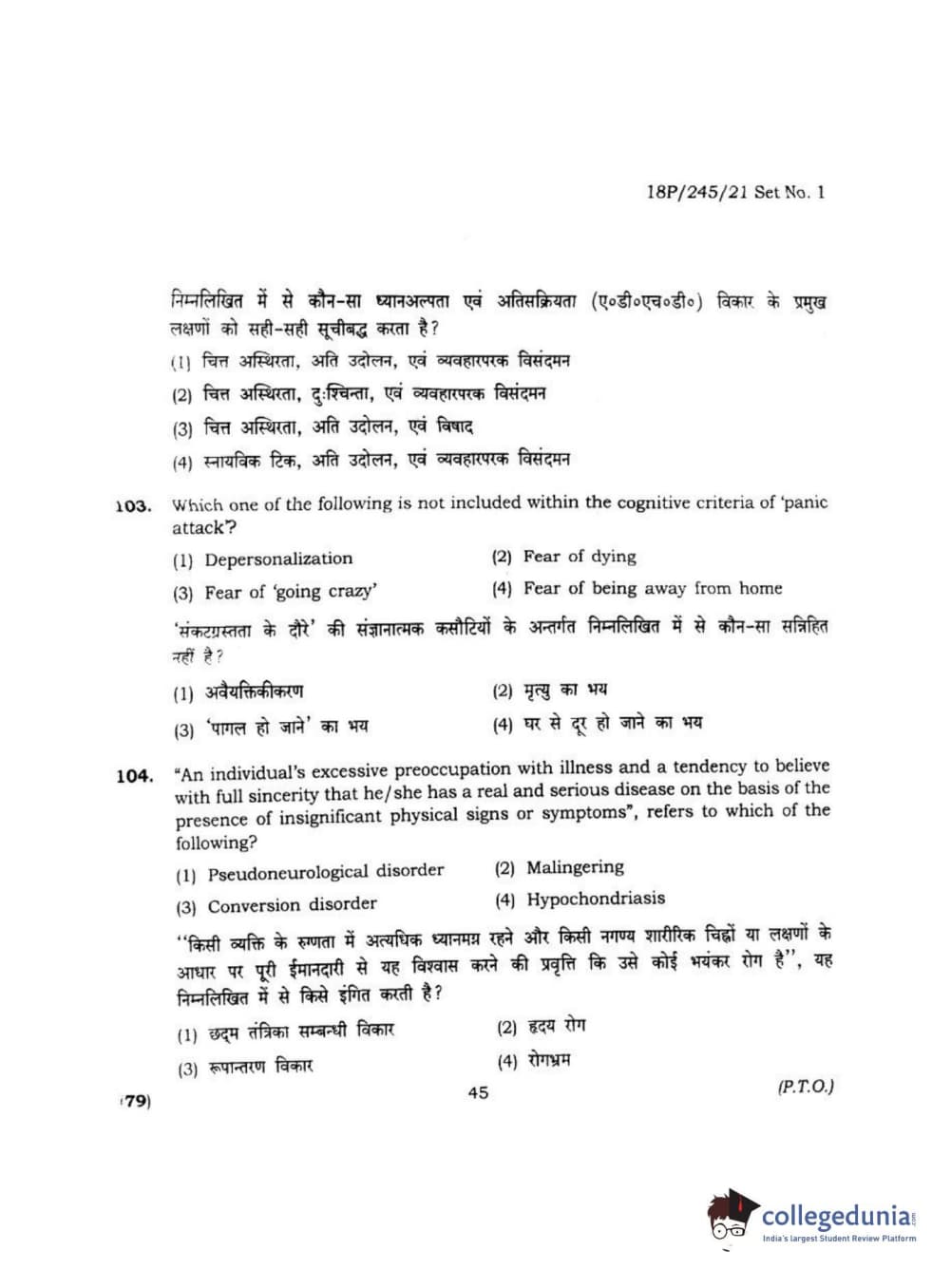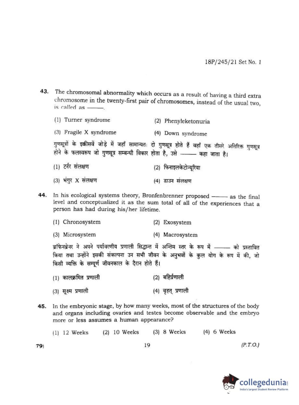 BHU PET 2018 MA M.SC. IN PSYCOLOGY Question Paper with Answer Key PDF