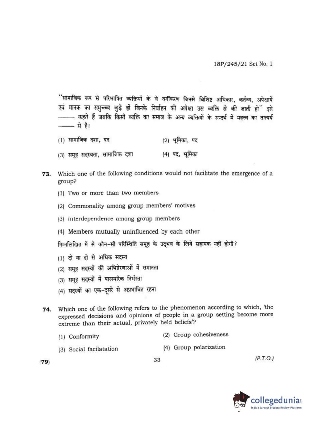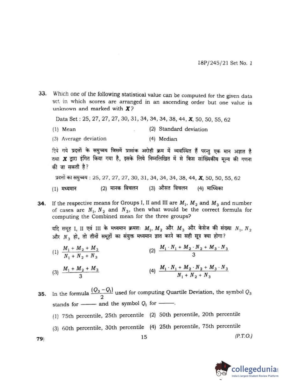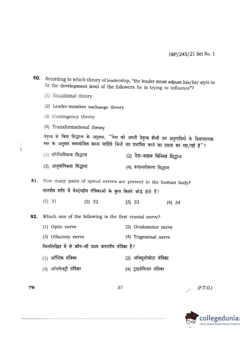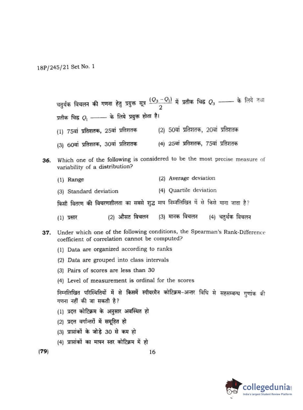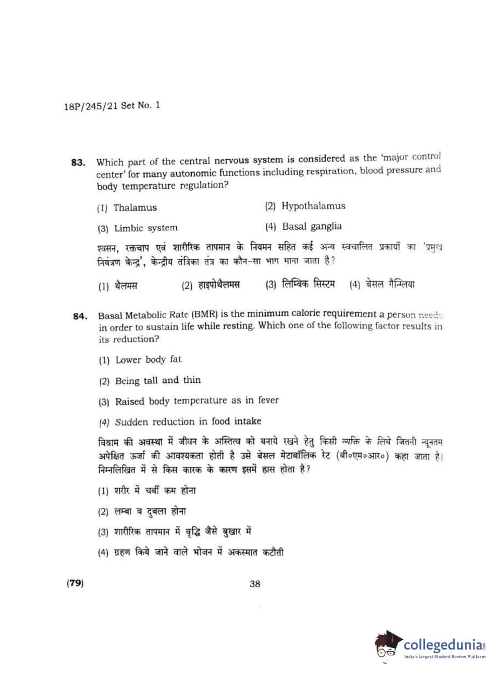 BHU PET 2018 MA M.SC. IN PSYCOLOGY Question Paper with Answer Key PDF