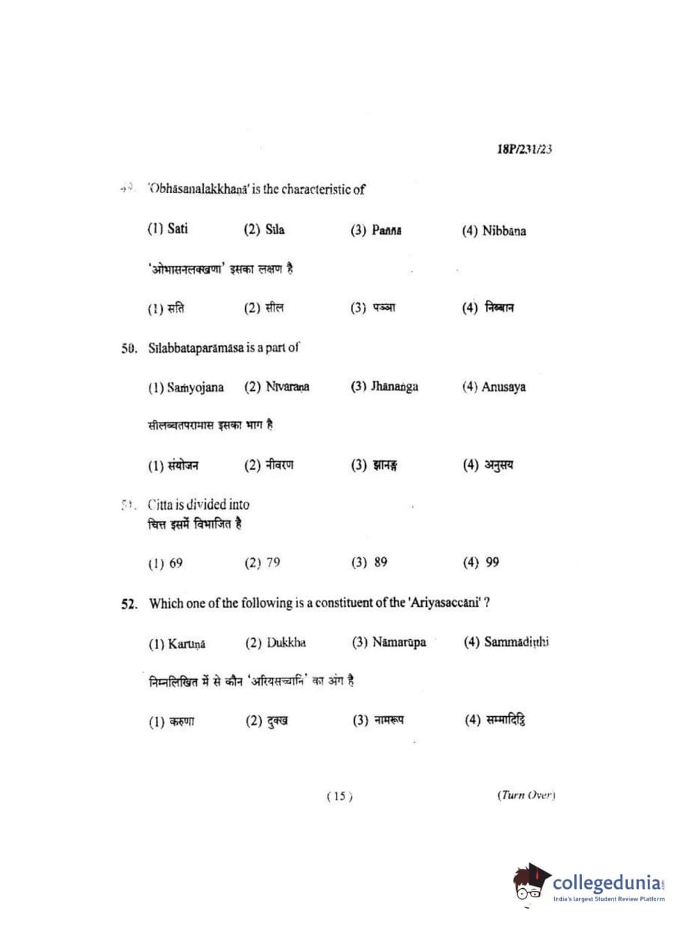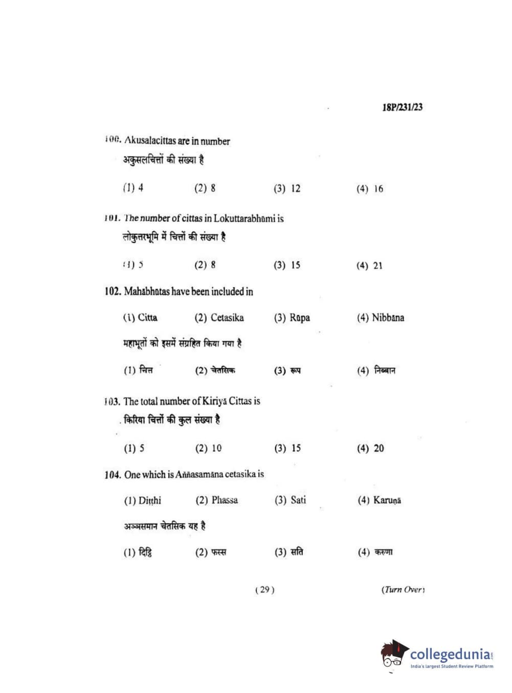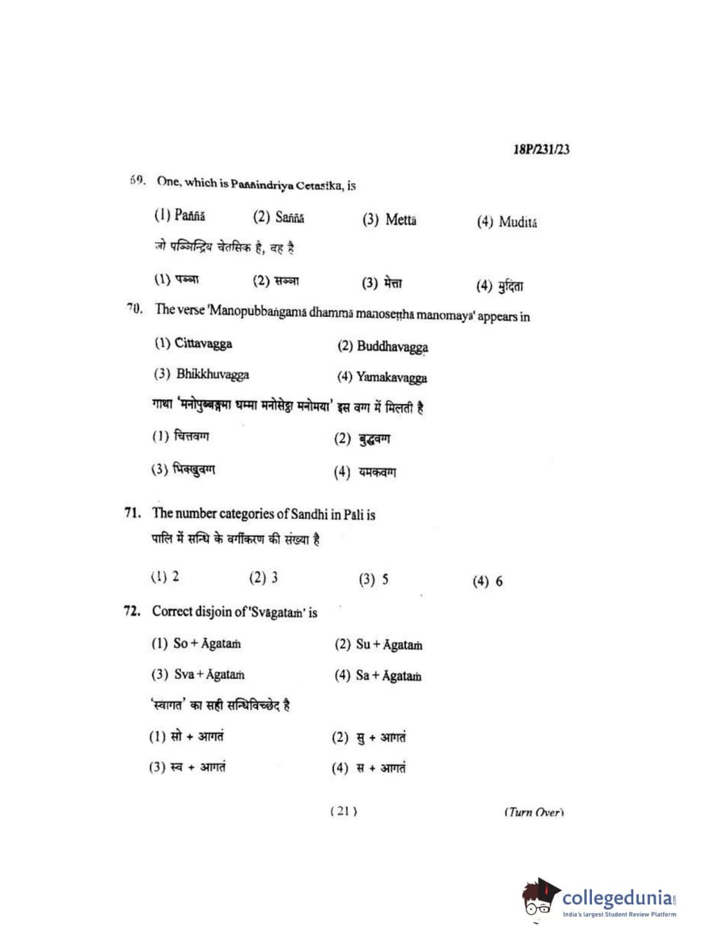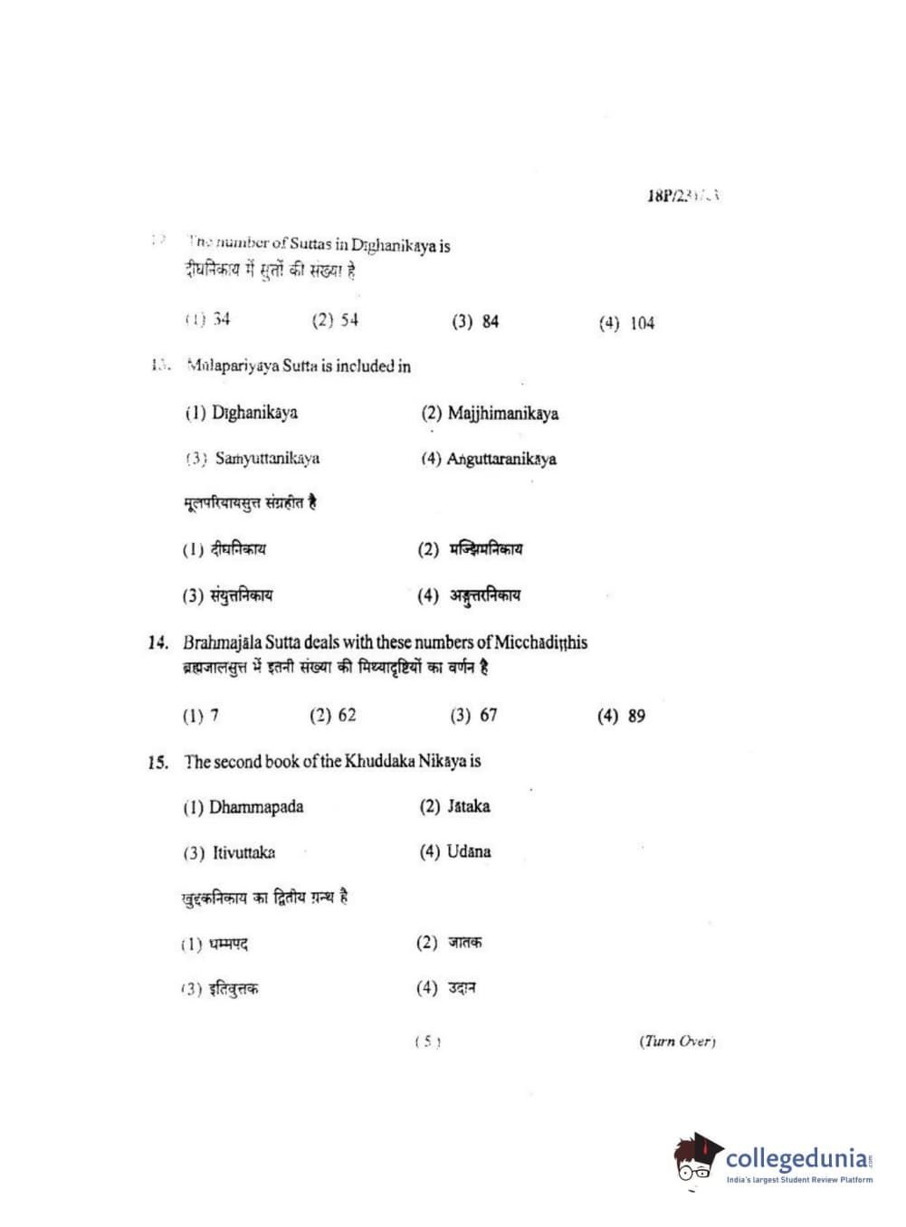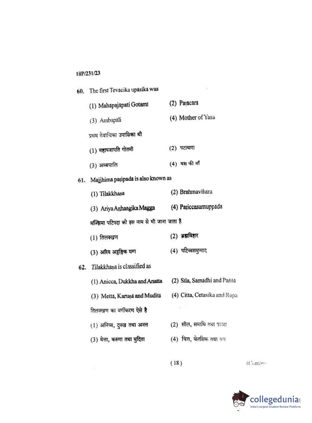 BHU PET 2018 MA PALI Question Paper with Answer Key PDF