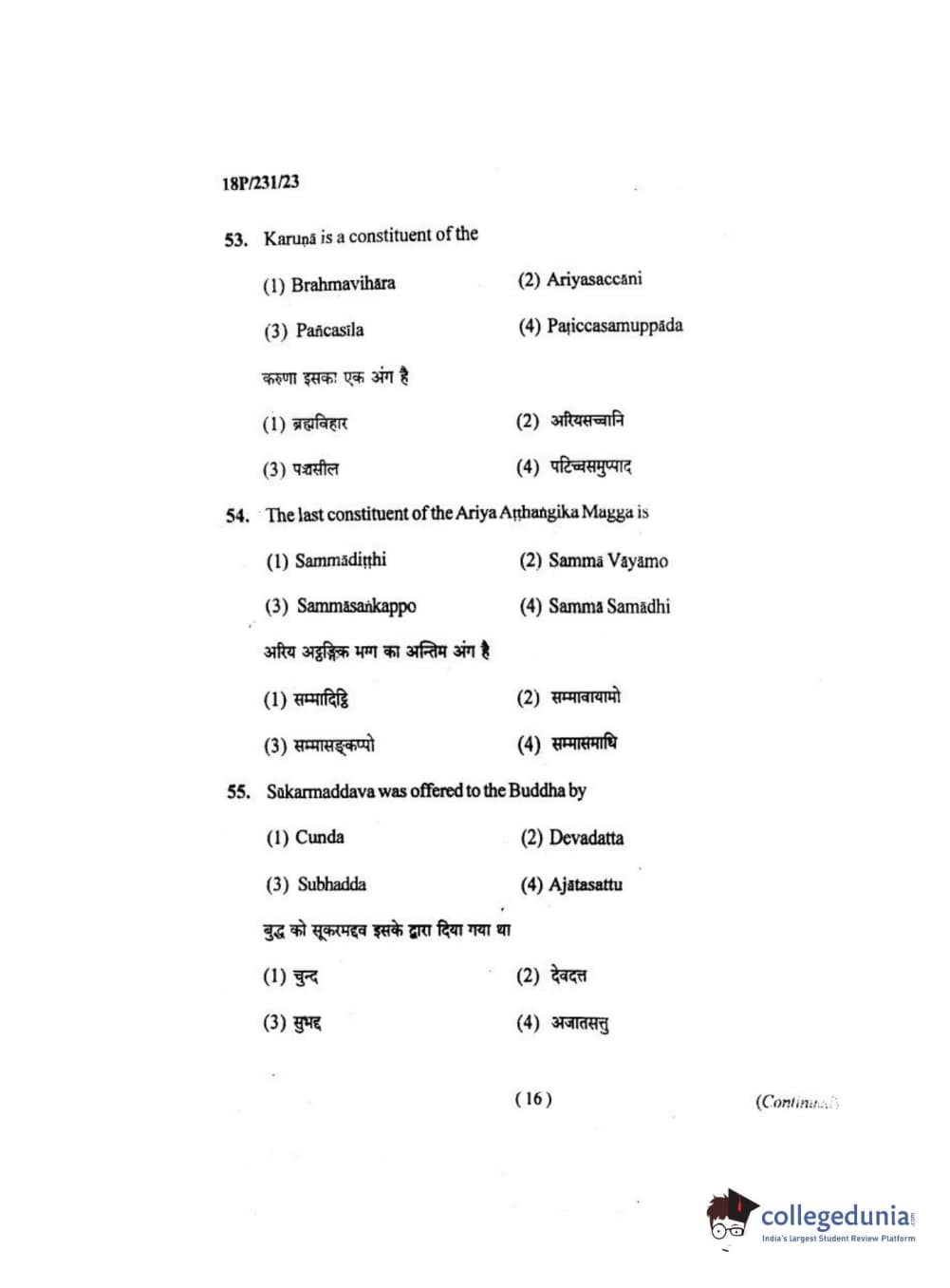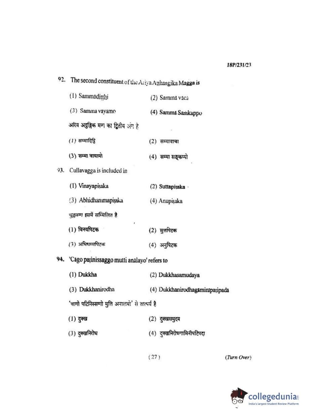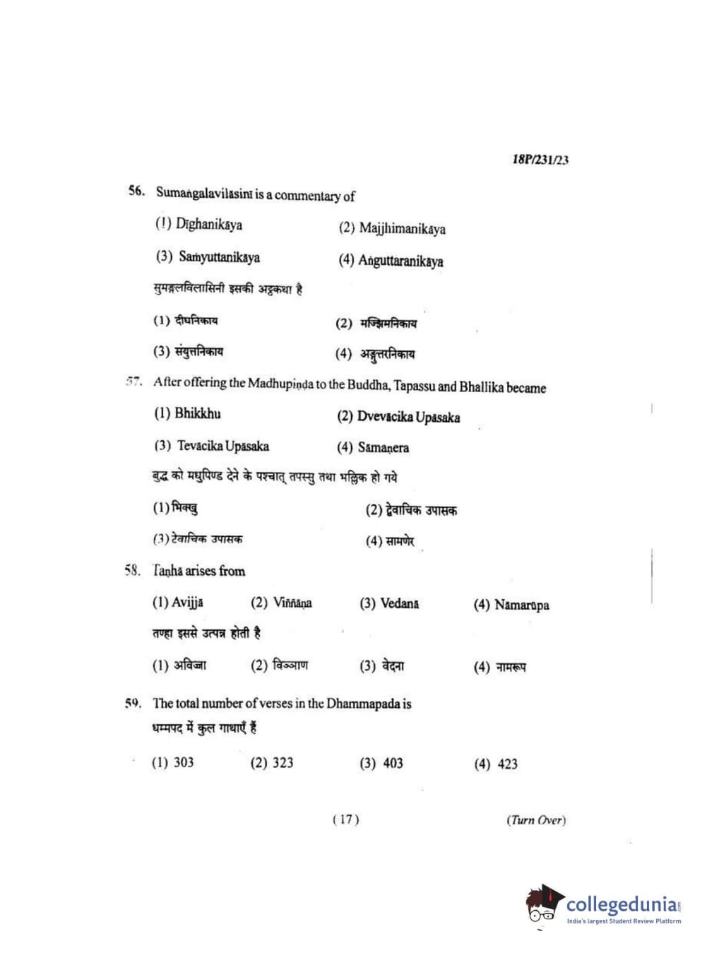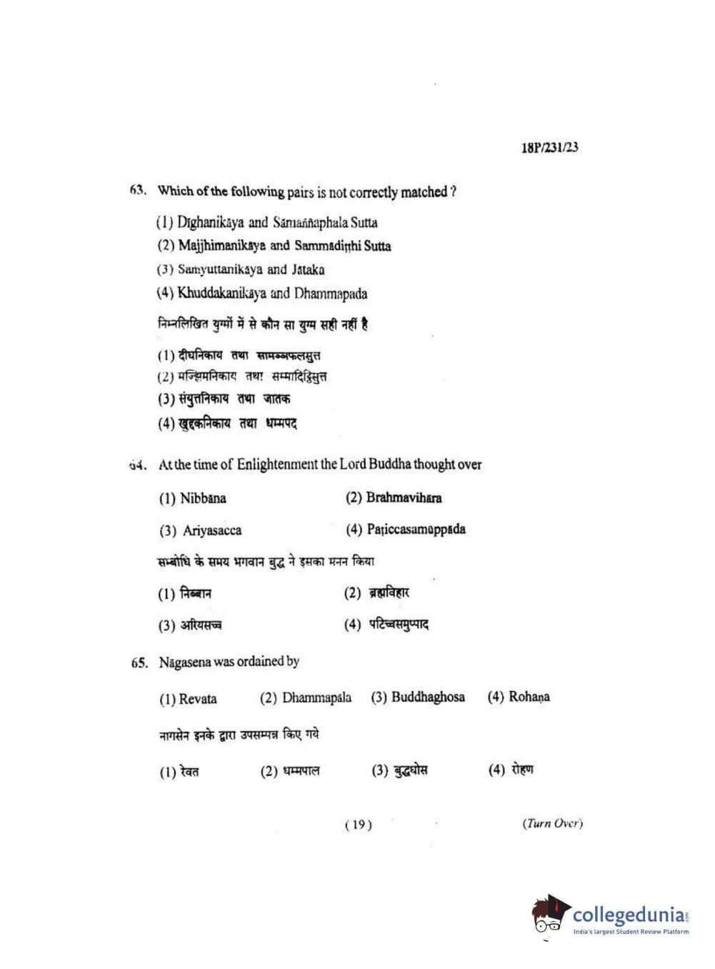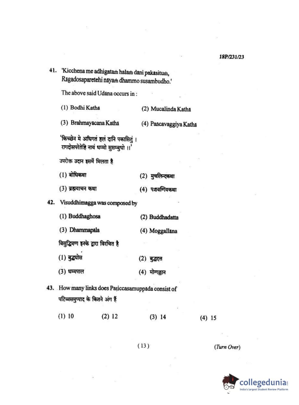 BHU PET 2018 MA PALI Question Paper with Answer Key PDF