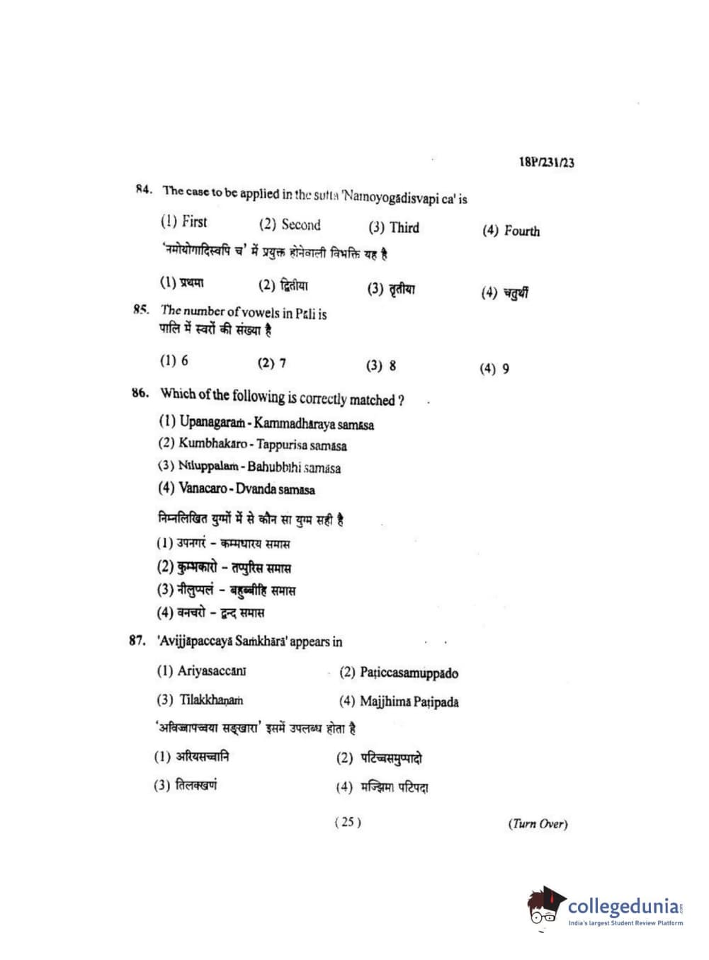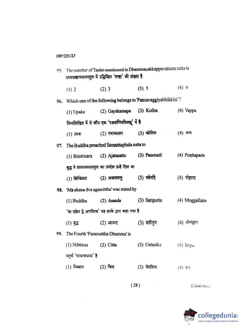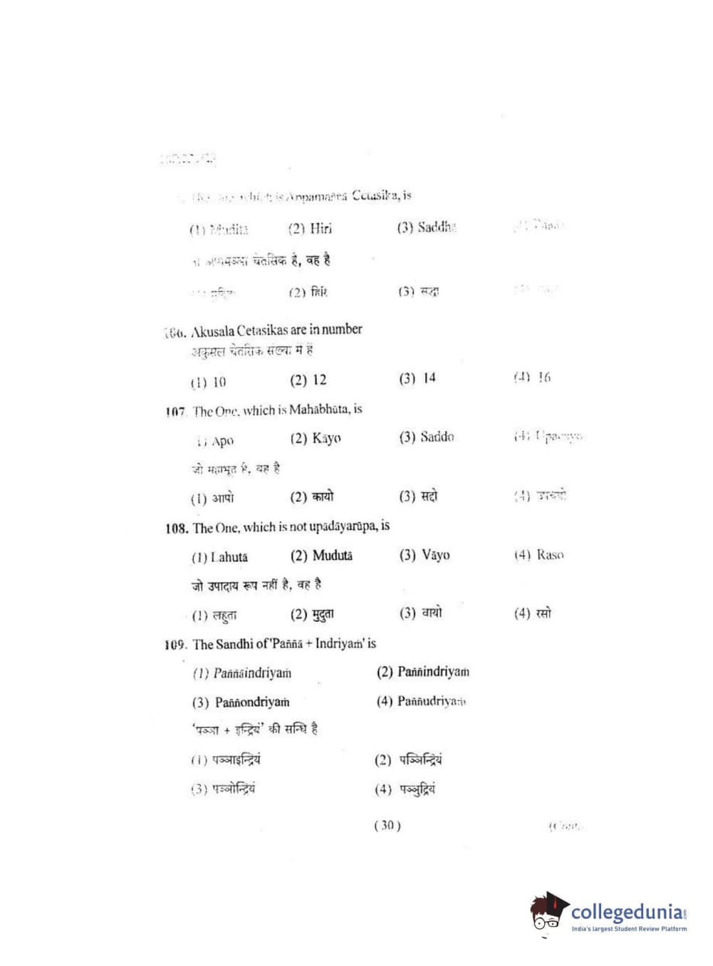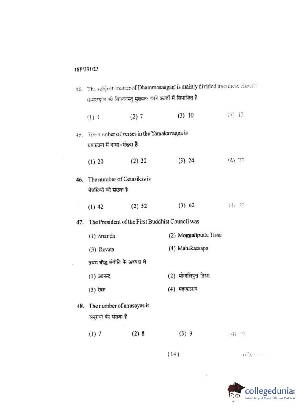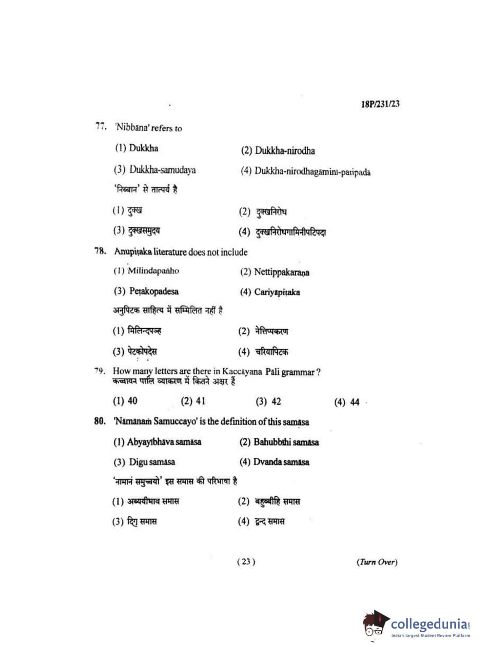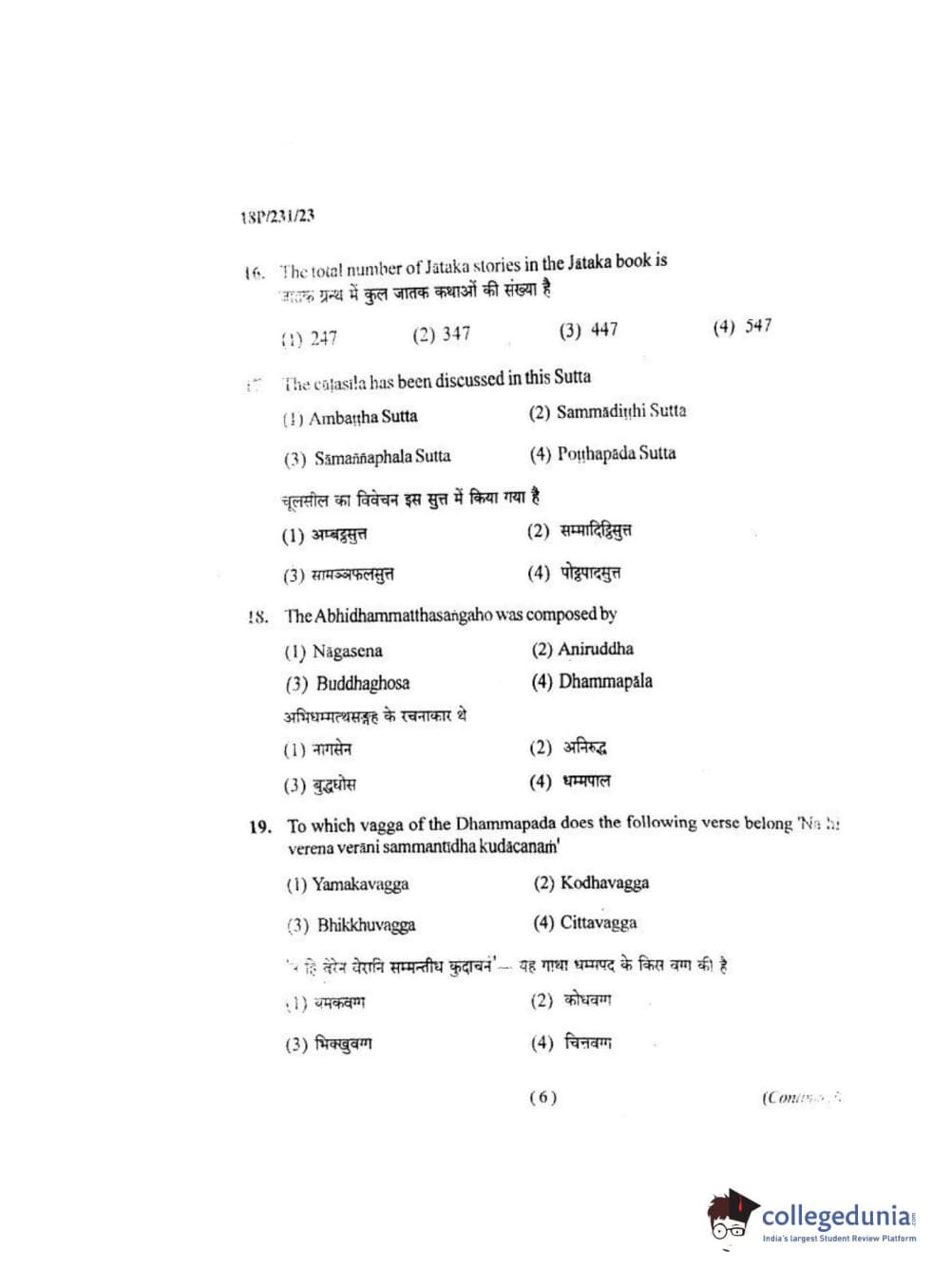 BHU PET 2018 MA PALI Question Paper with Answer Key PDF