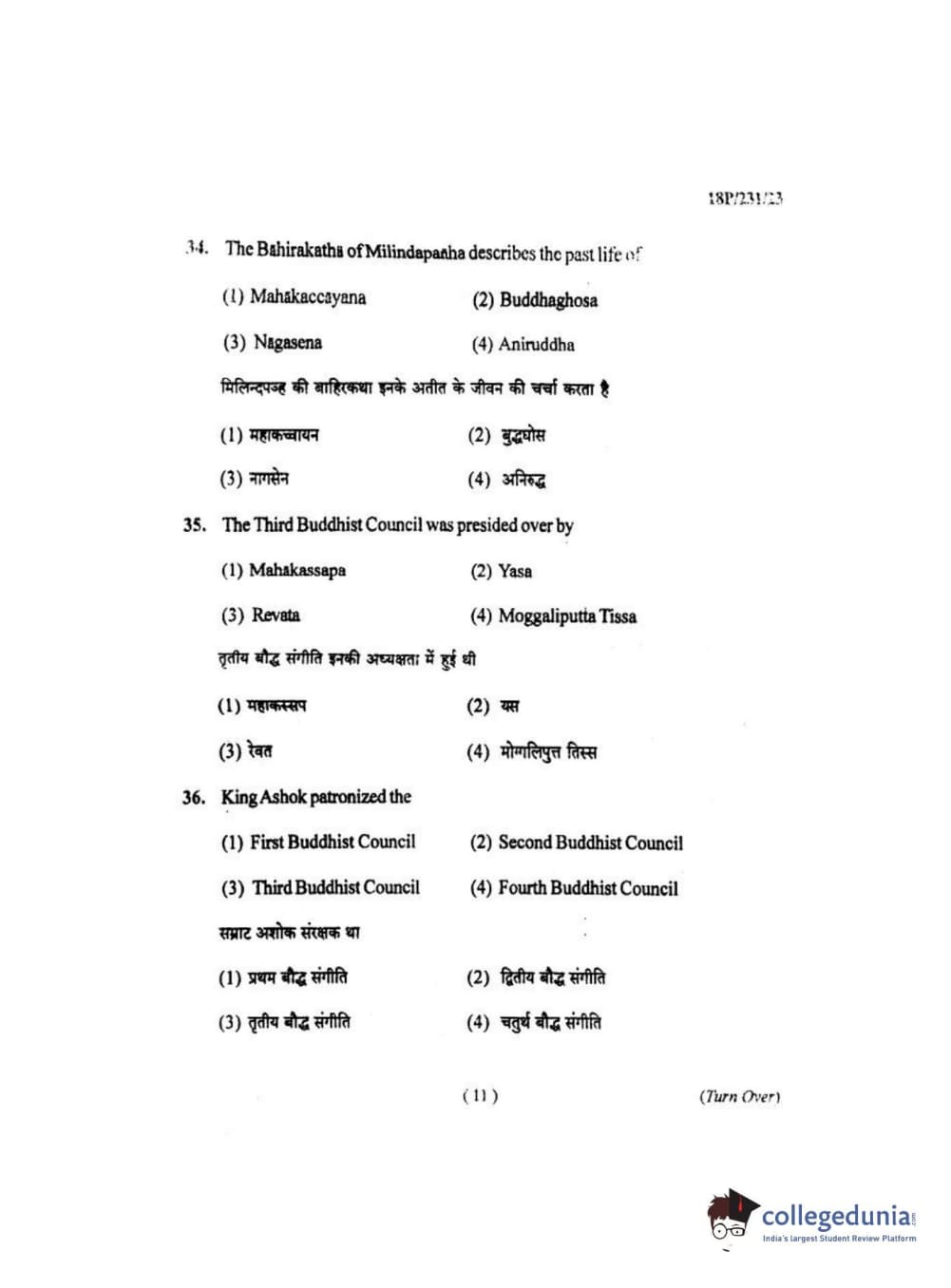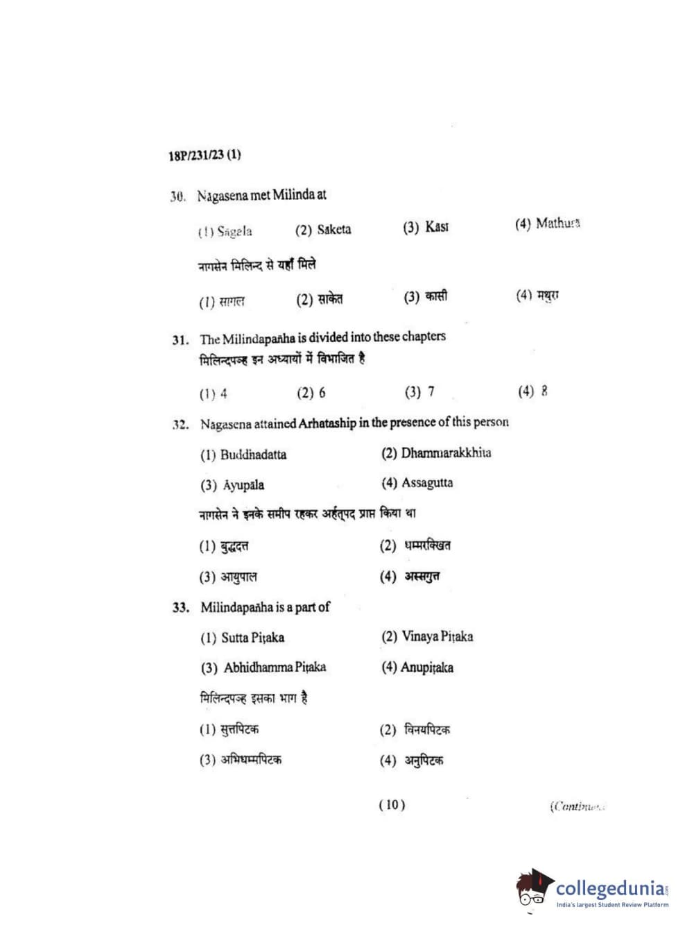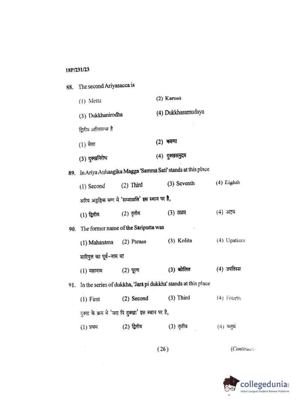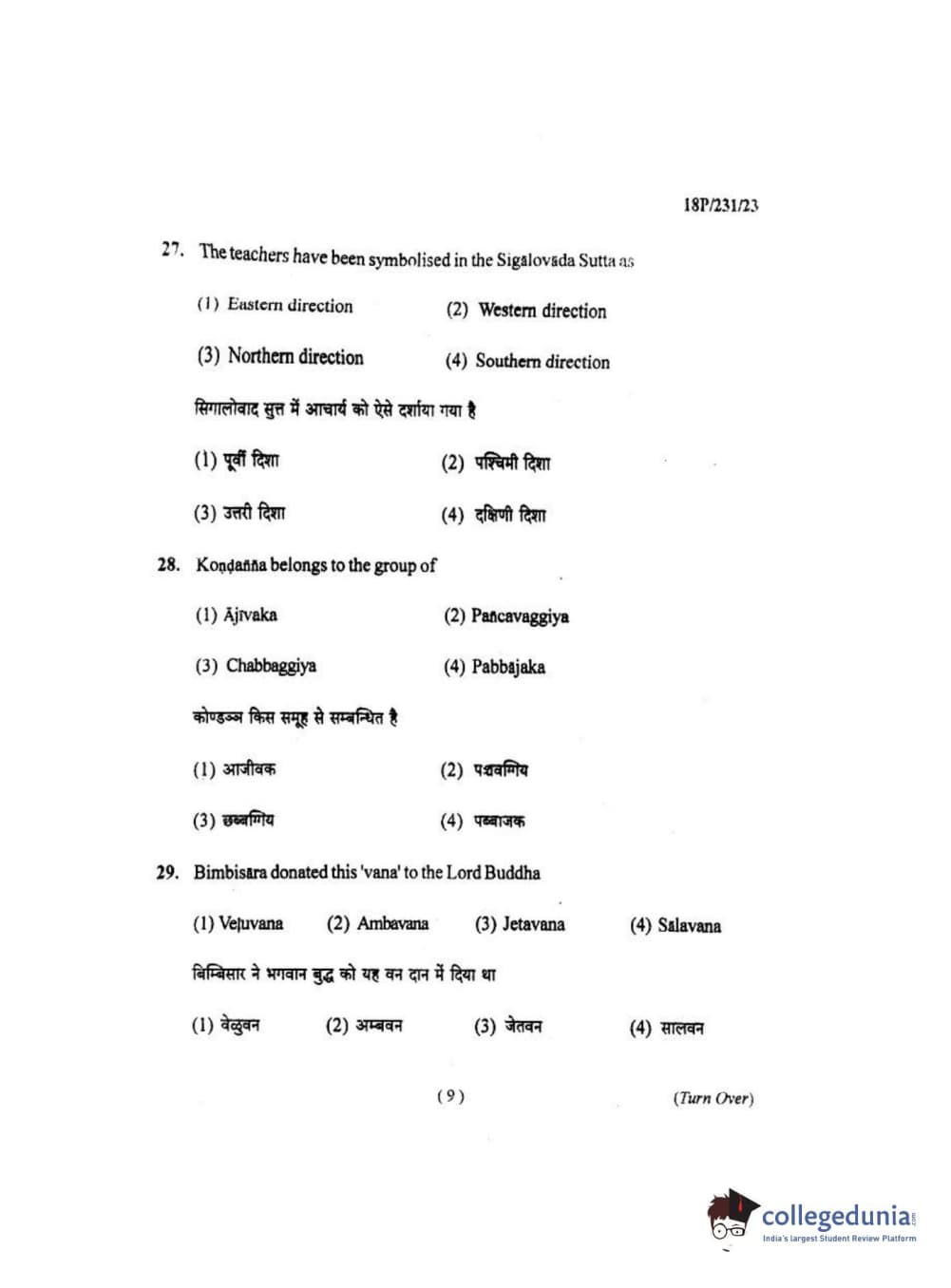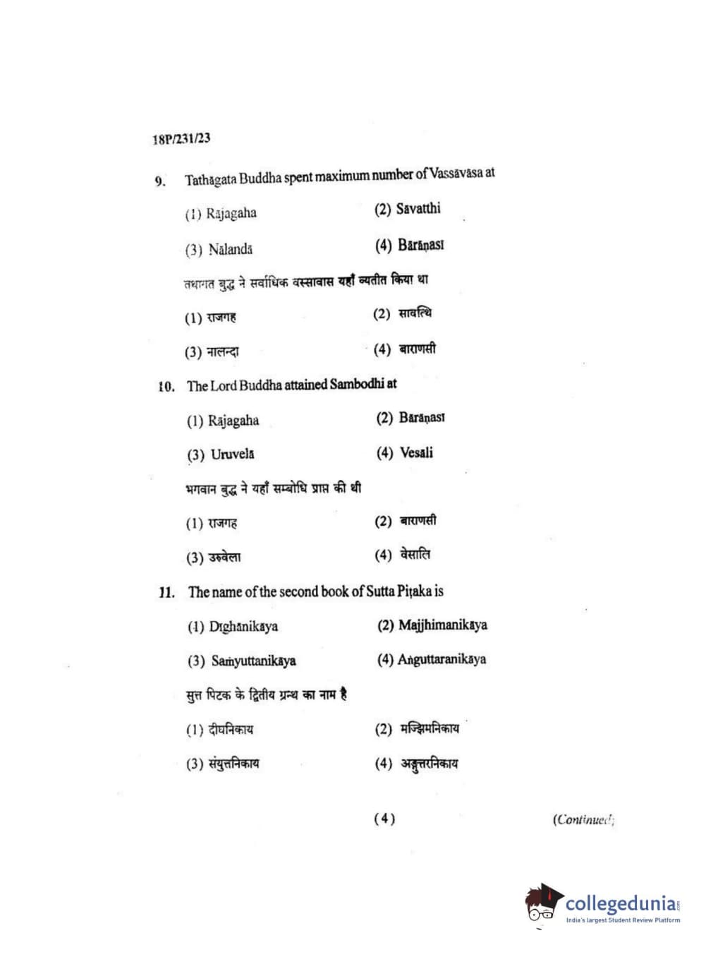 BHU PET 2018 MA PALI Question Paper with Answer Key PDF