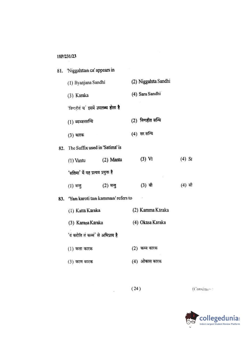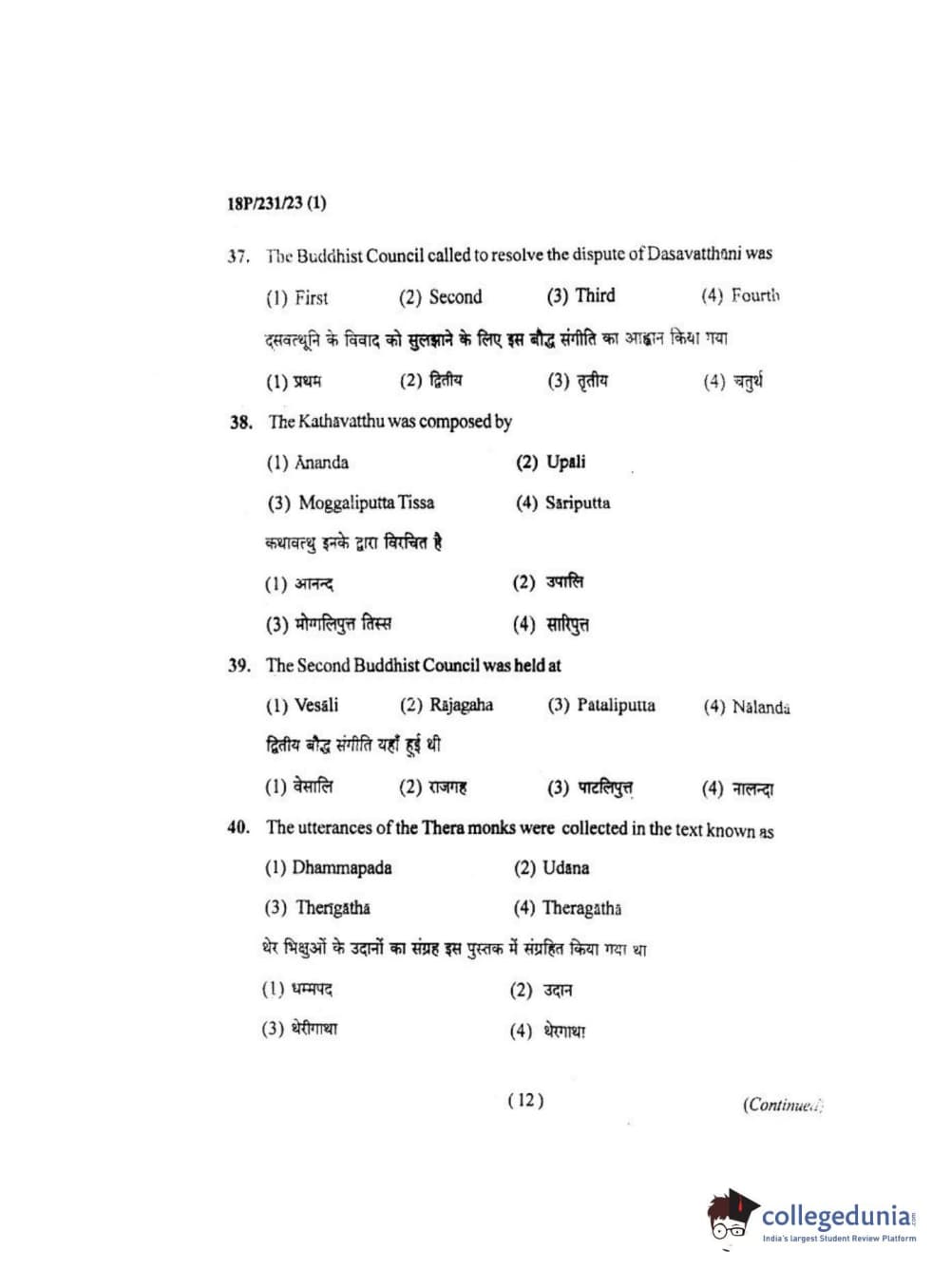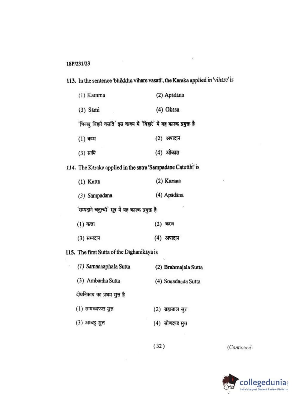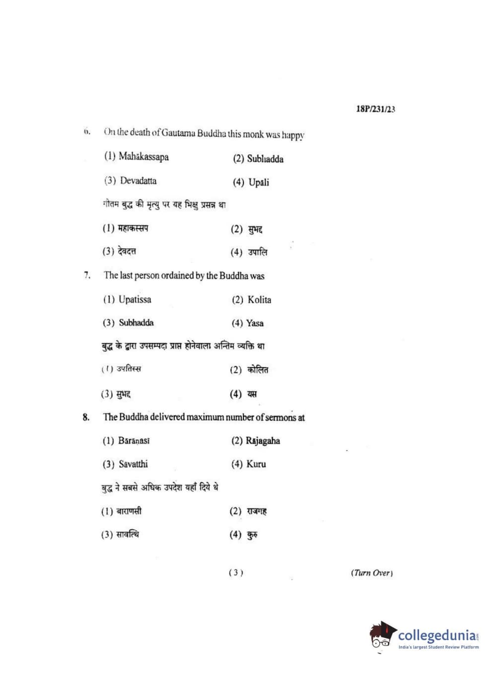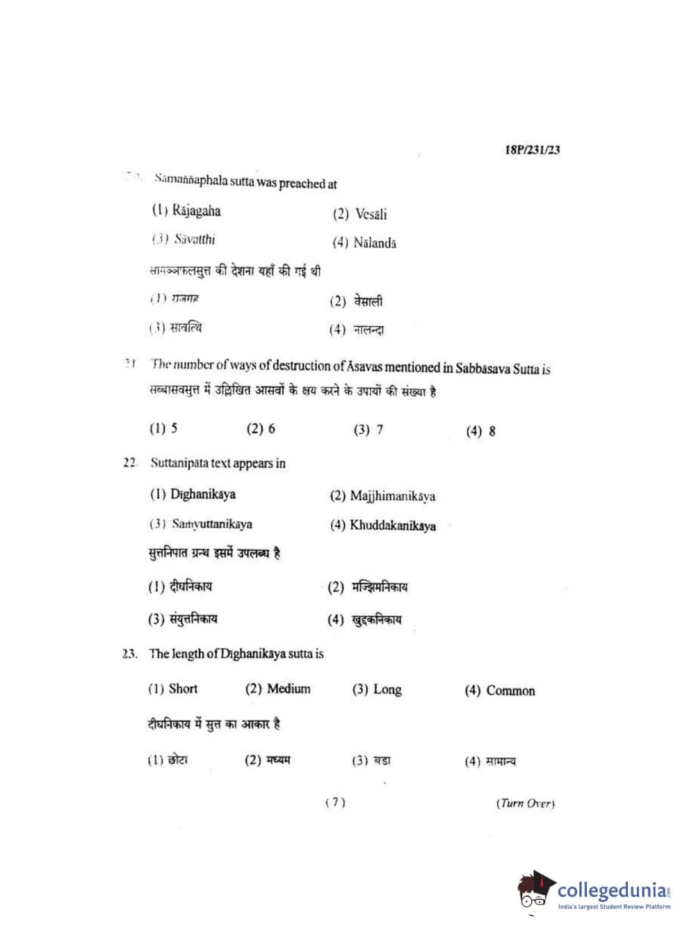 BHU PET 2018 MA PALI Question Paper with Answer Key PDF
