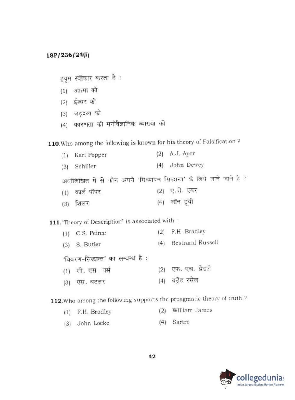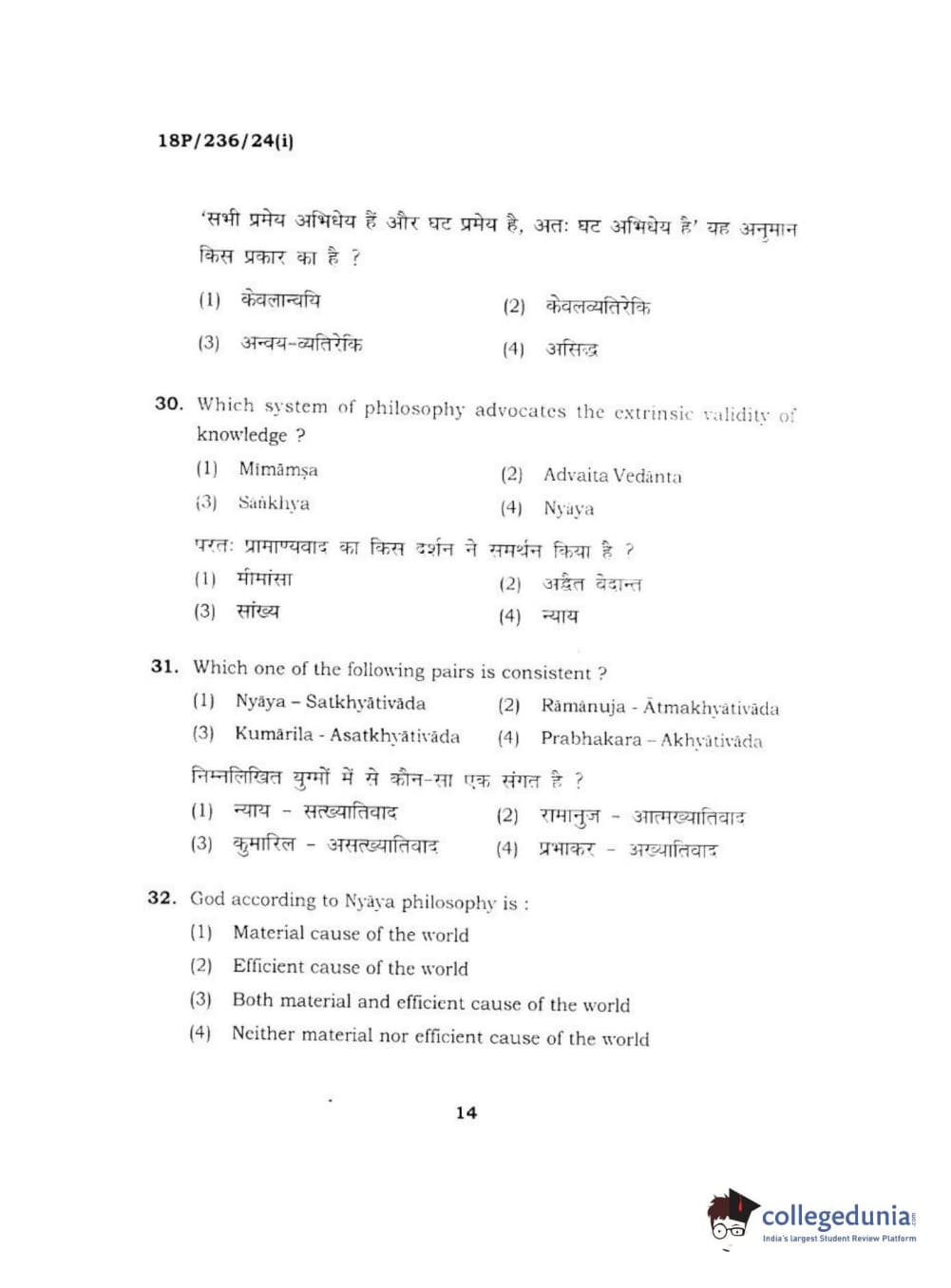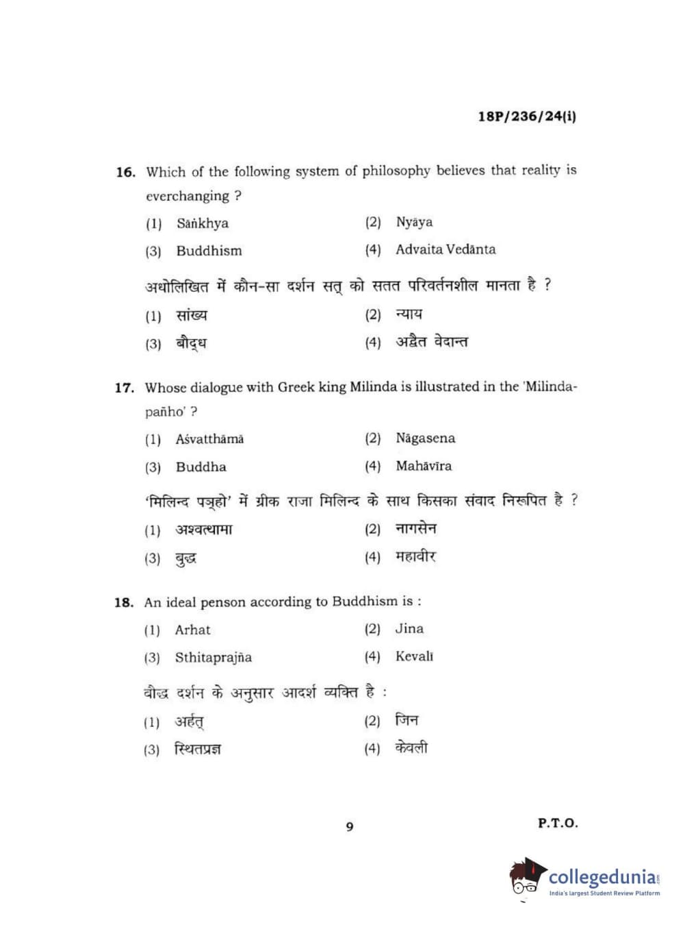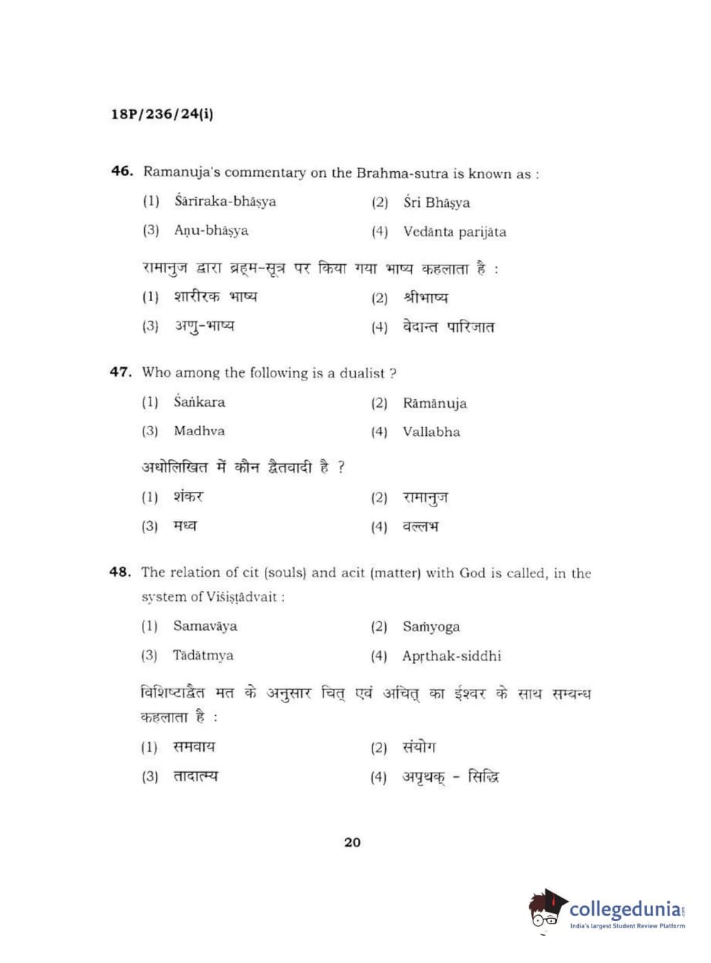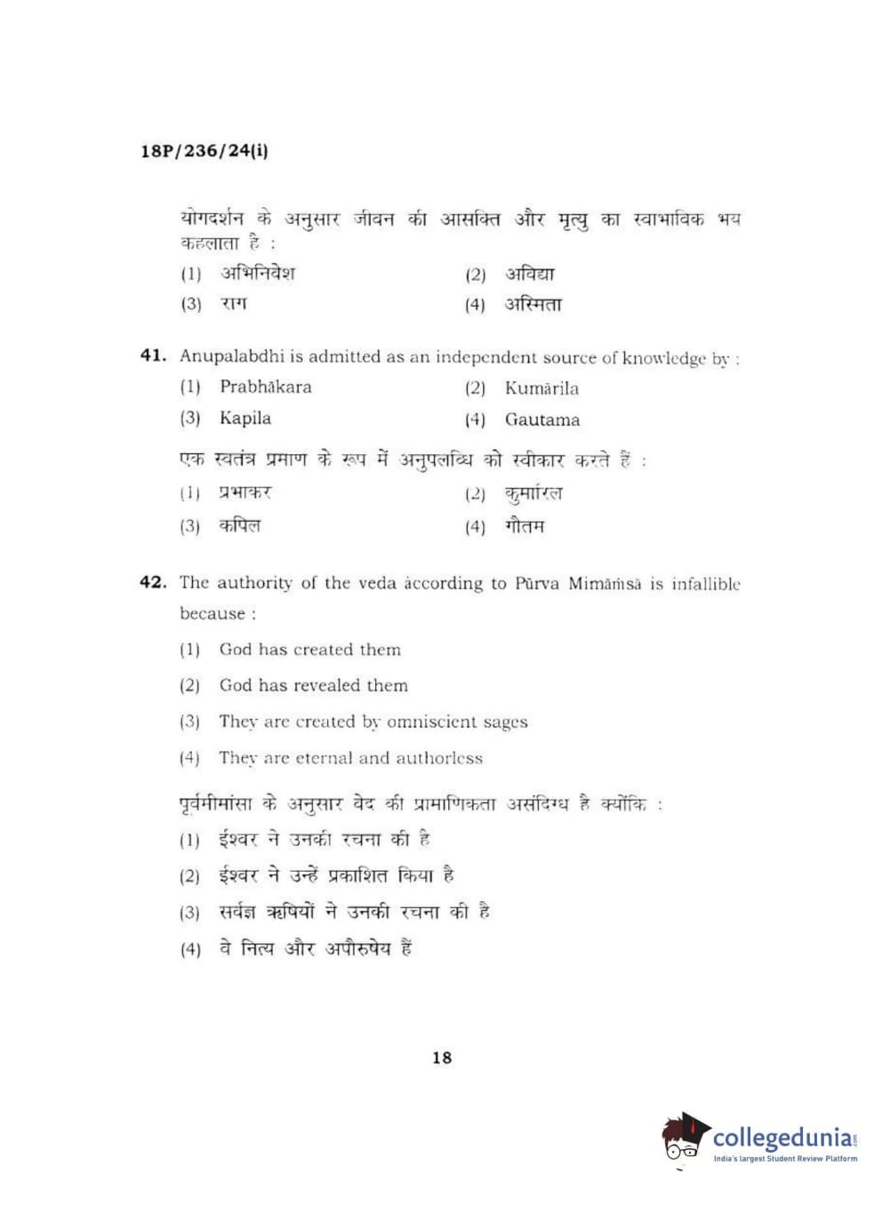 BHU PET 2018 MA PHILOSOPHY Question Paper with Answer Key PDF