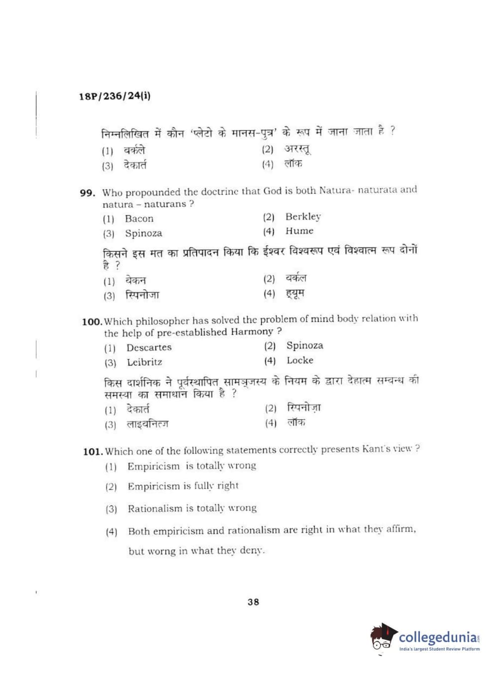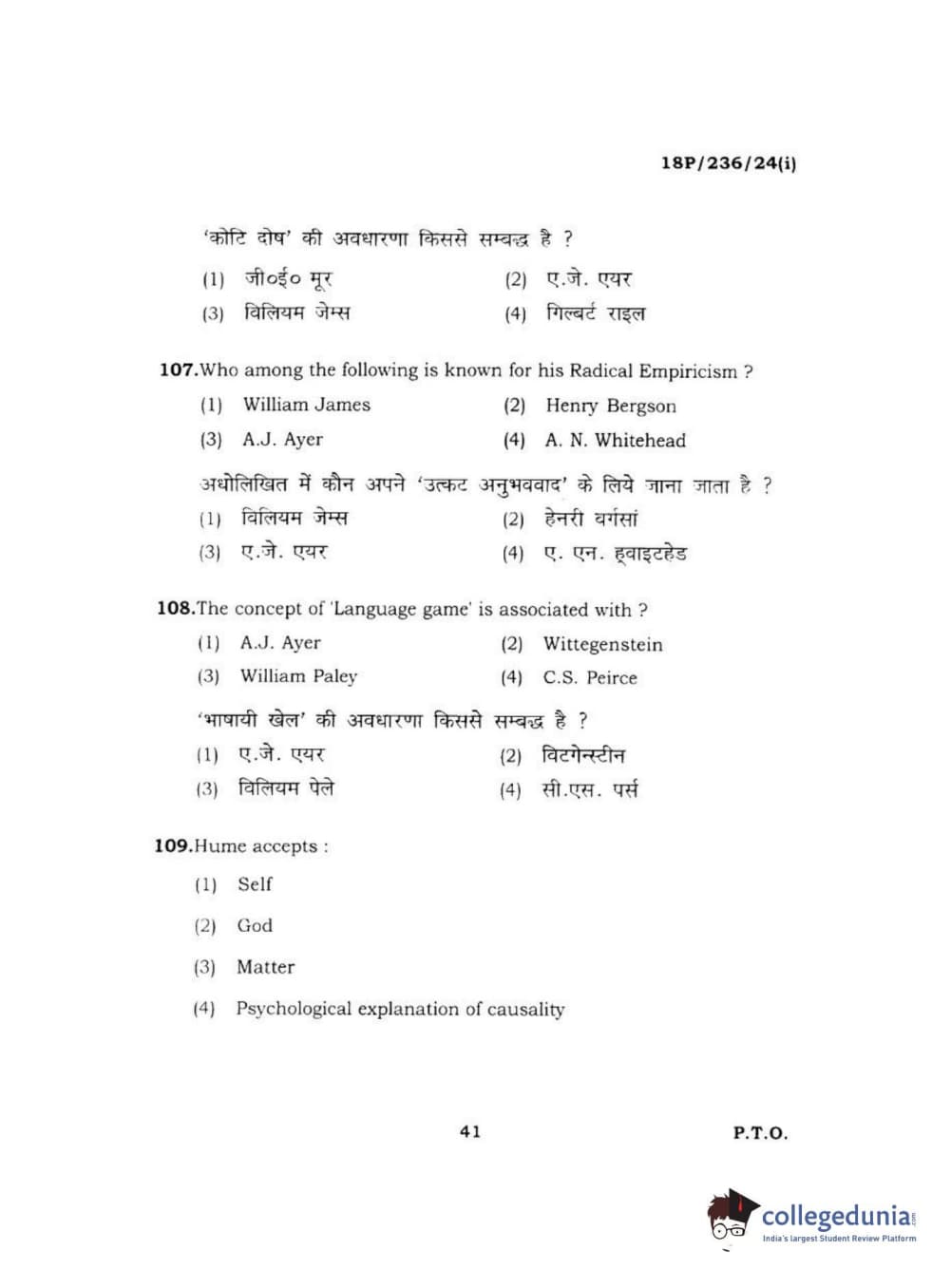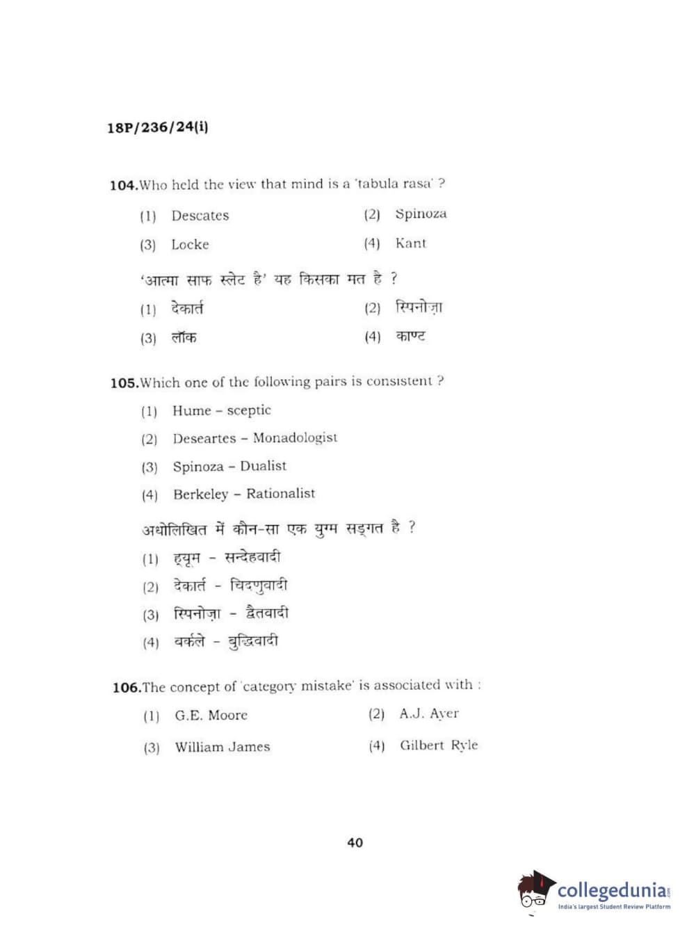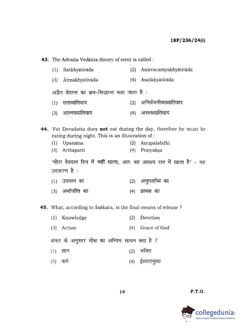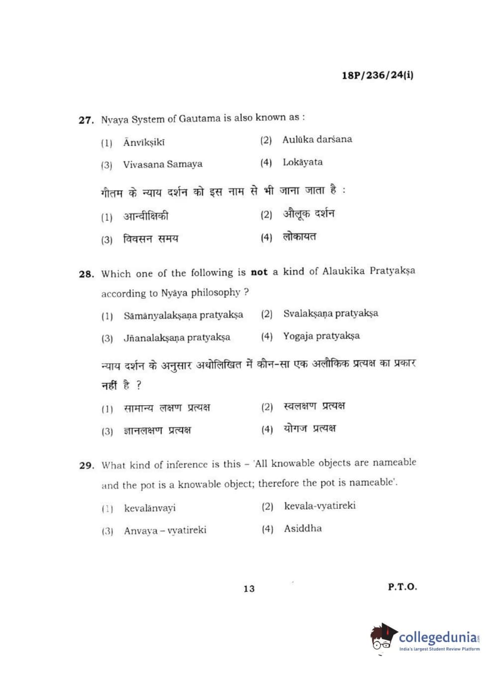 BHU PET 2018 MA PHILOSOPHY Question Paper with Answer Key PDF
